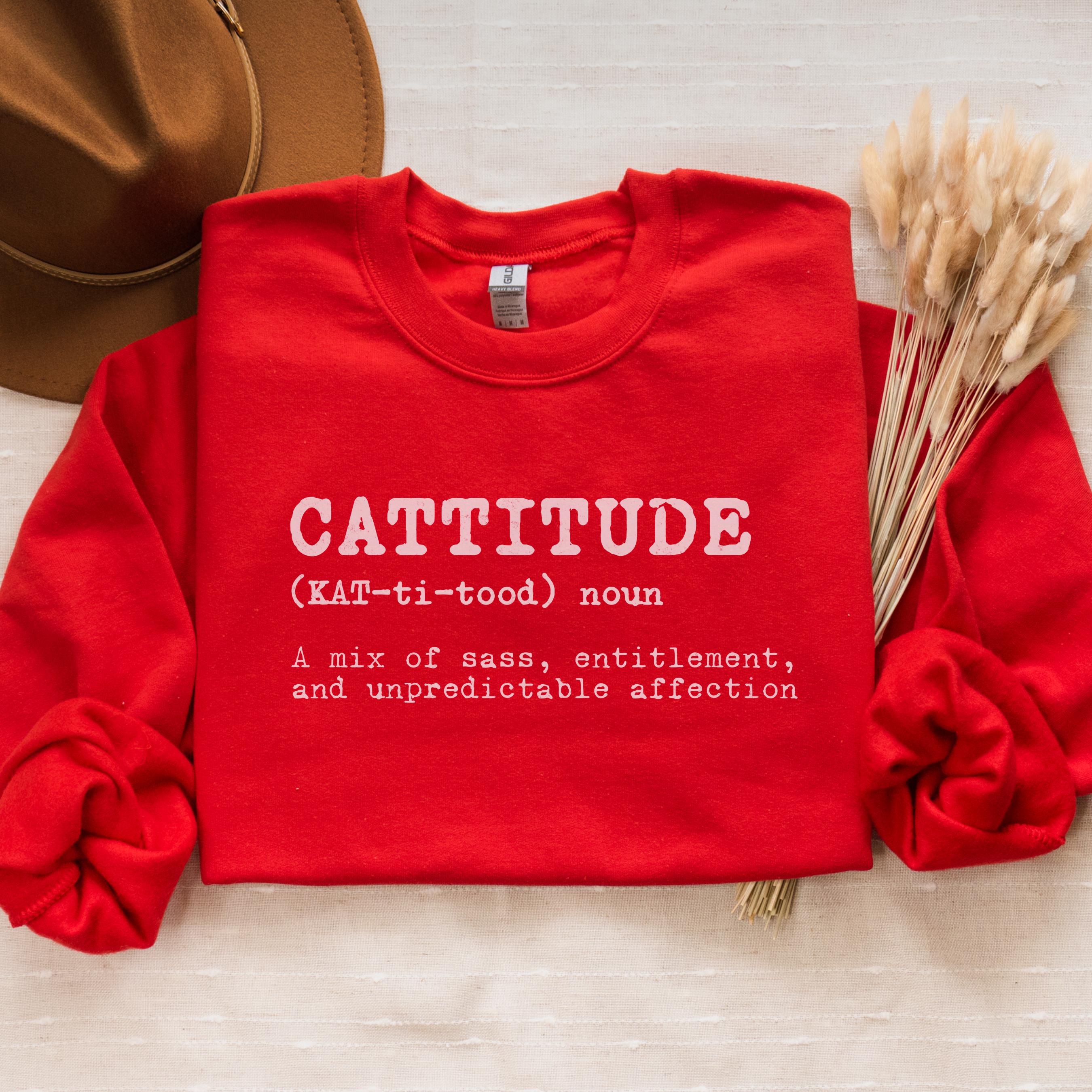 Funny Cat Lover Sweatshirt: Minimalist Cattitude Definition Crewneck