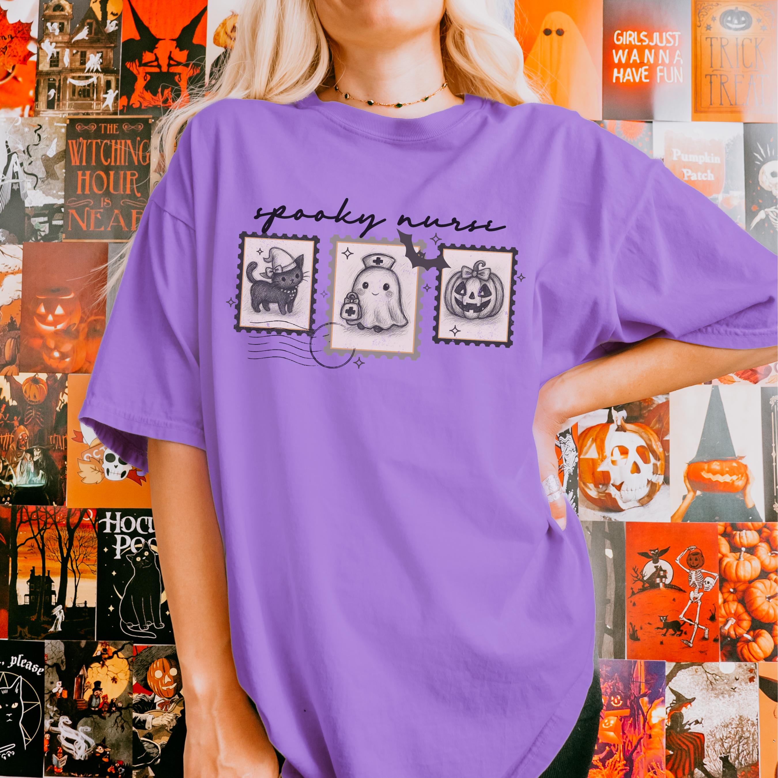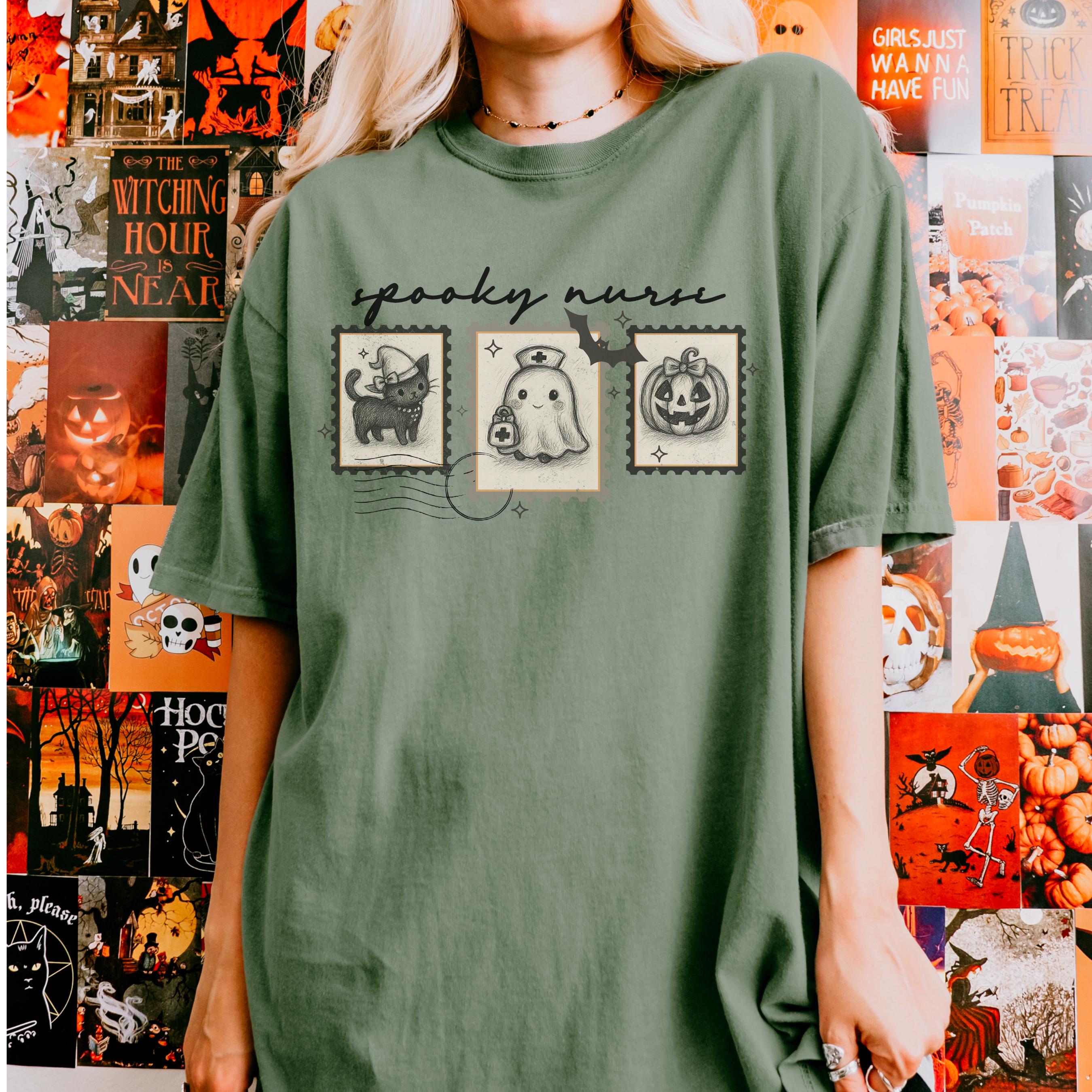 Spooky Nurse Comfort Colors Shirt: Retro Halloween RN Tee