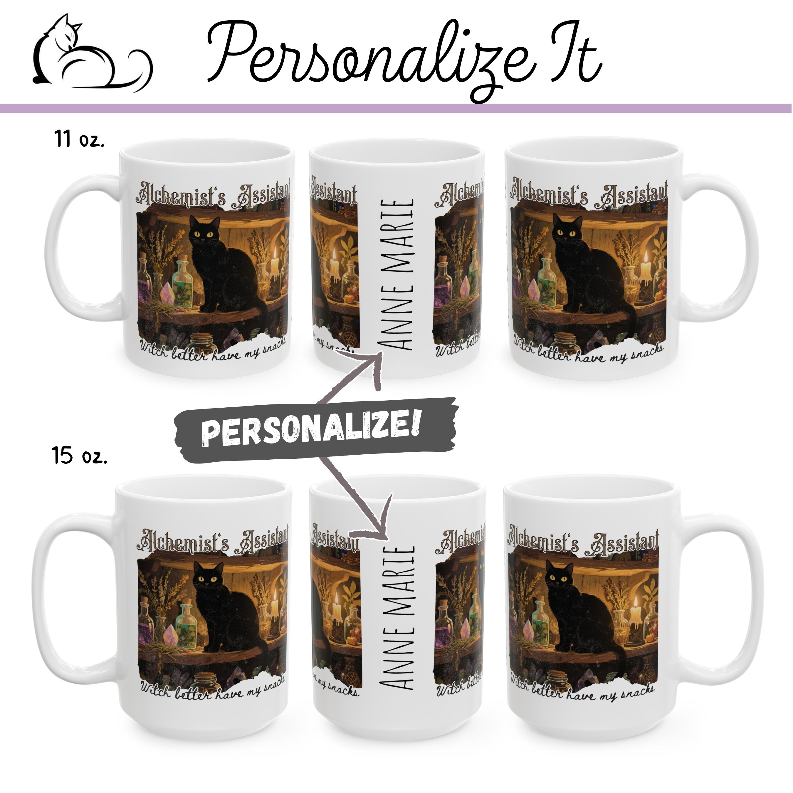 Personalized Witchy Cat Coffee Mug, Mystical Magical Black Cat Cup, Halloween Wiccan Mug, Perfect Gothic Gift for Witches, Cat Lovers