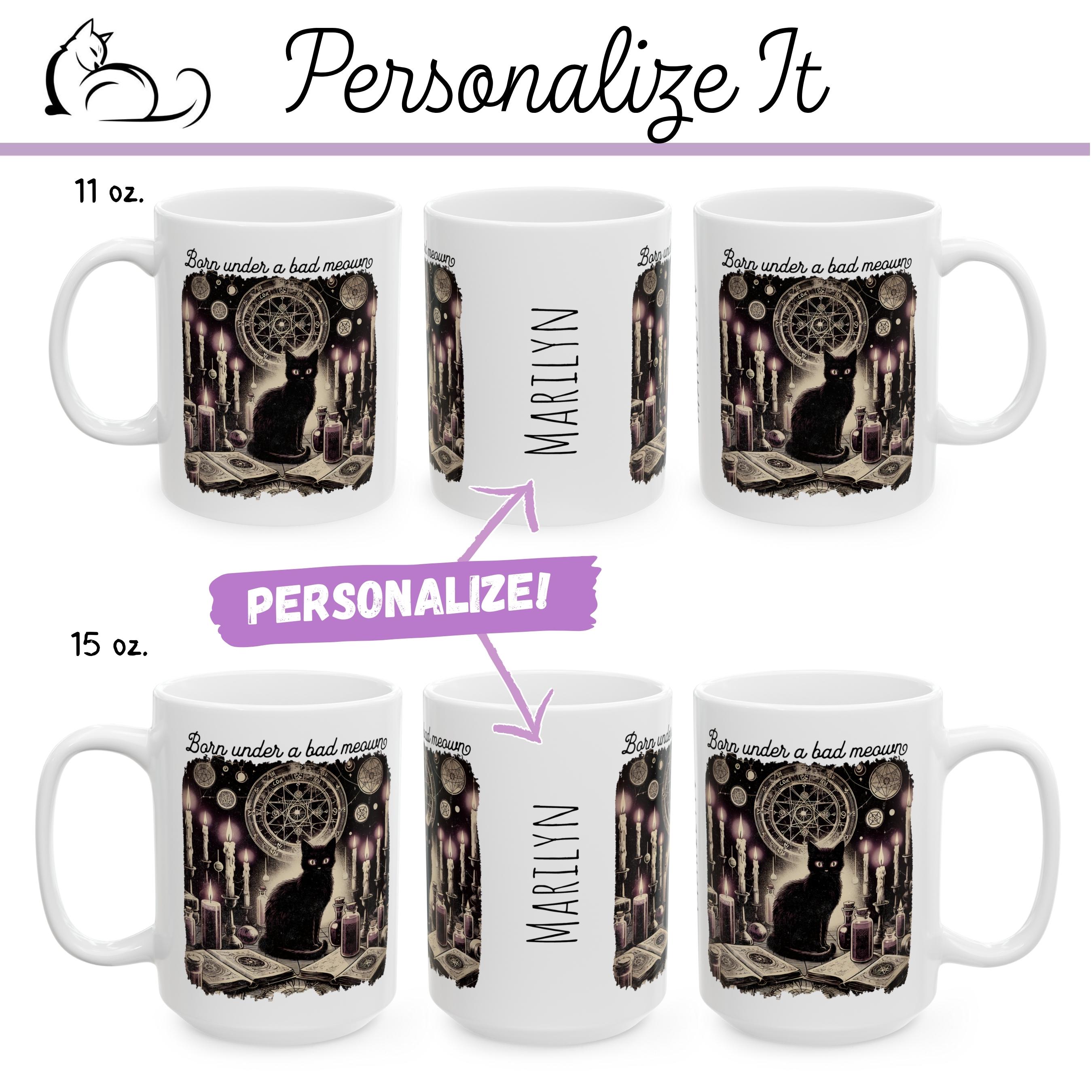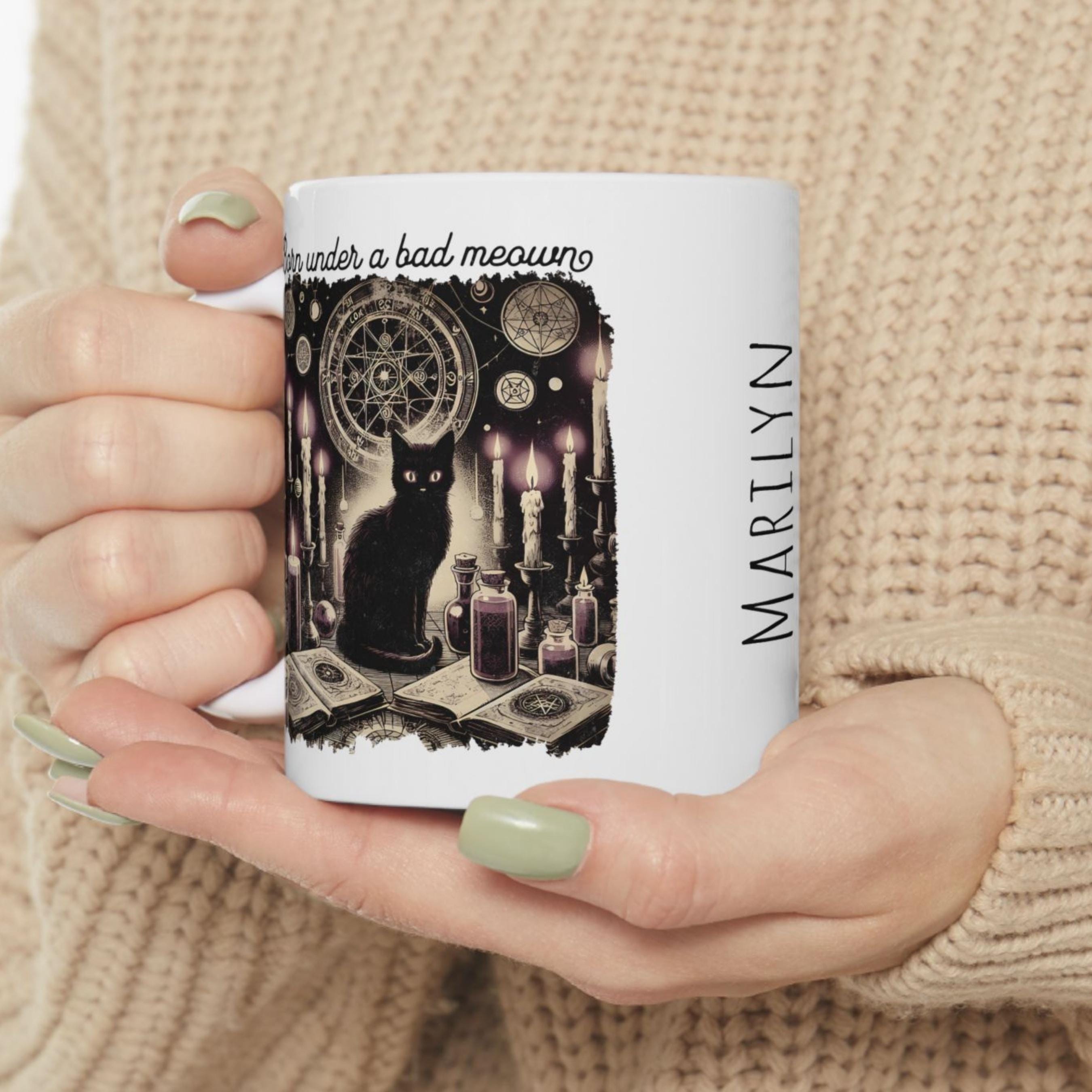Personalized Witchy Cat Coffee Mug, Halloween Wiccan Mug, Mystical Magical Black Cat Cup, Perfect Gothic Gift for Witches, Cat Lovers