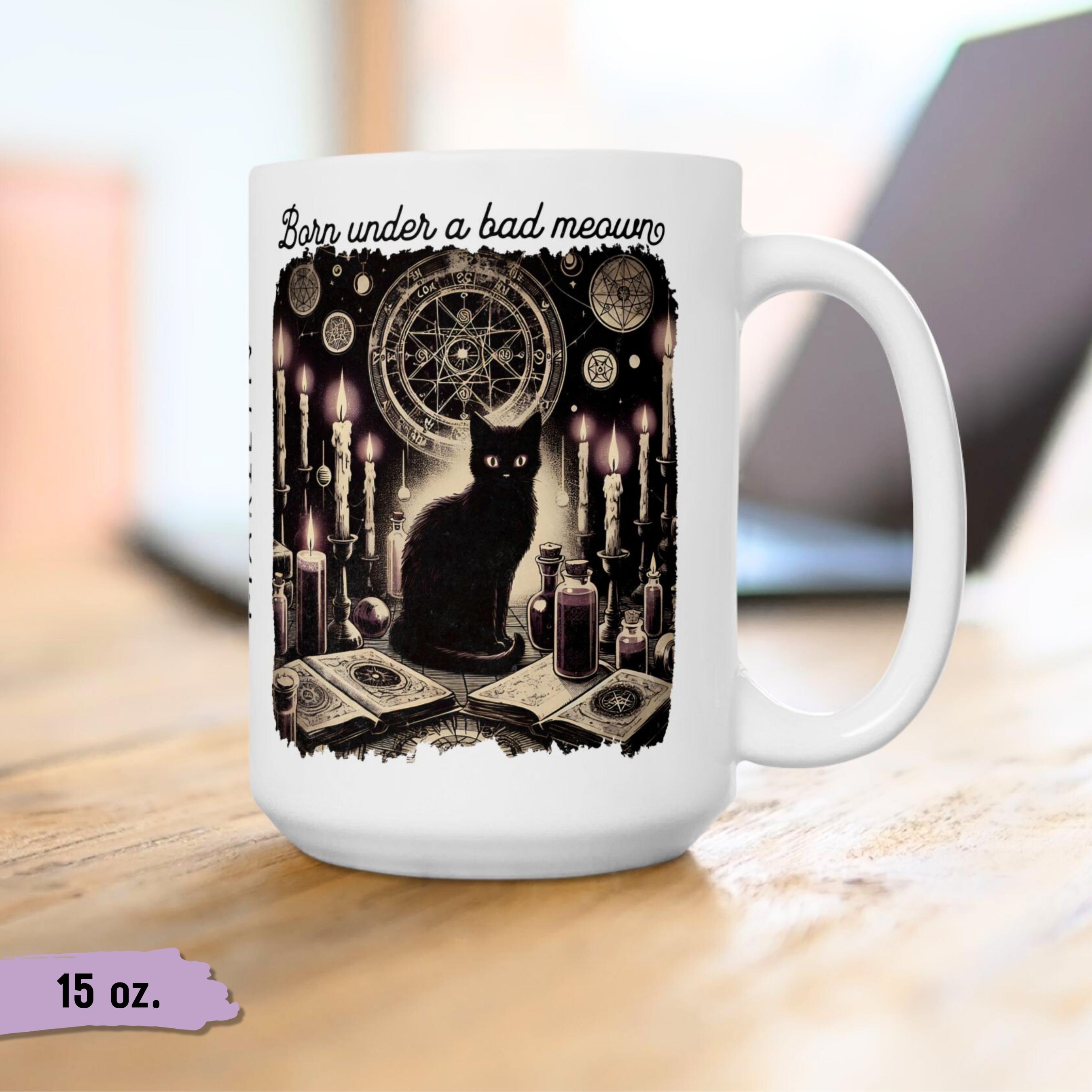 ✨ Born Under a Bad Meown – Witchy Black Cat Mug ✨