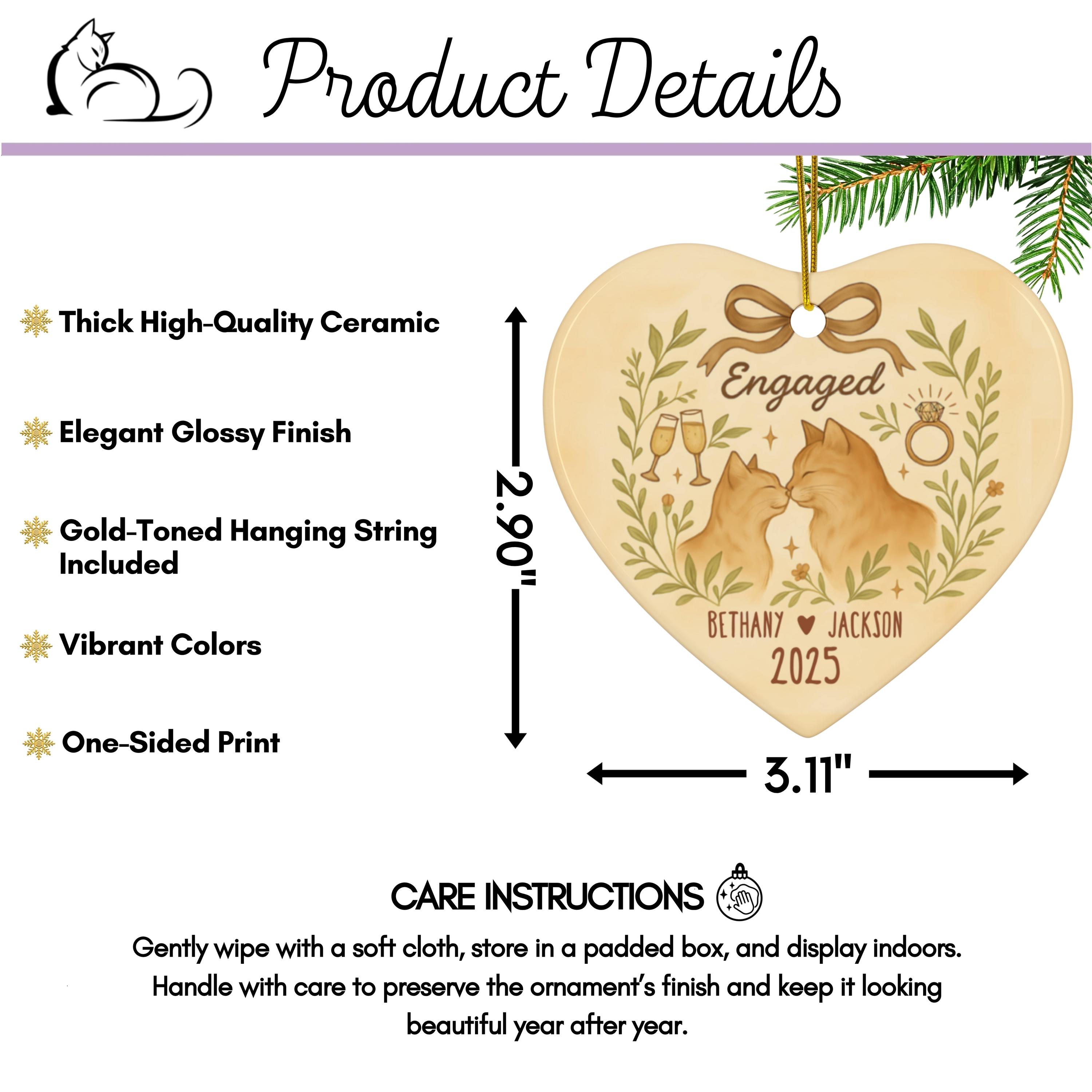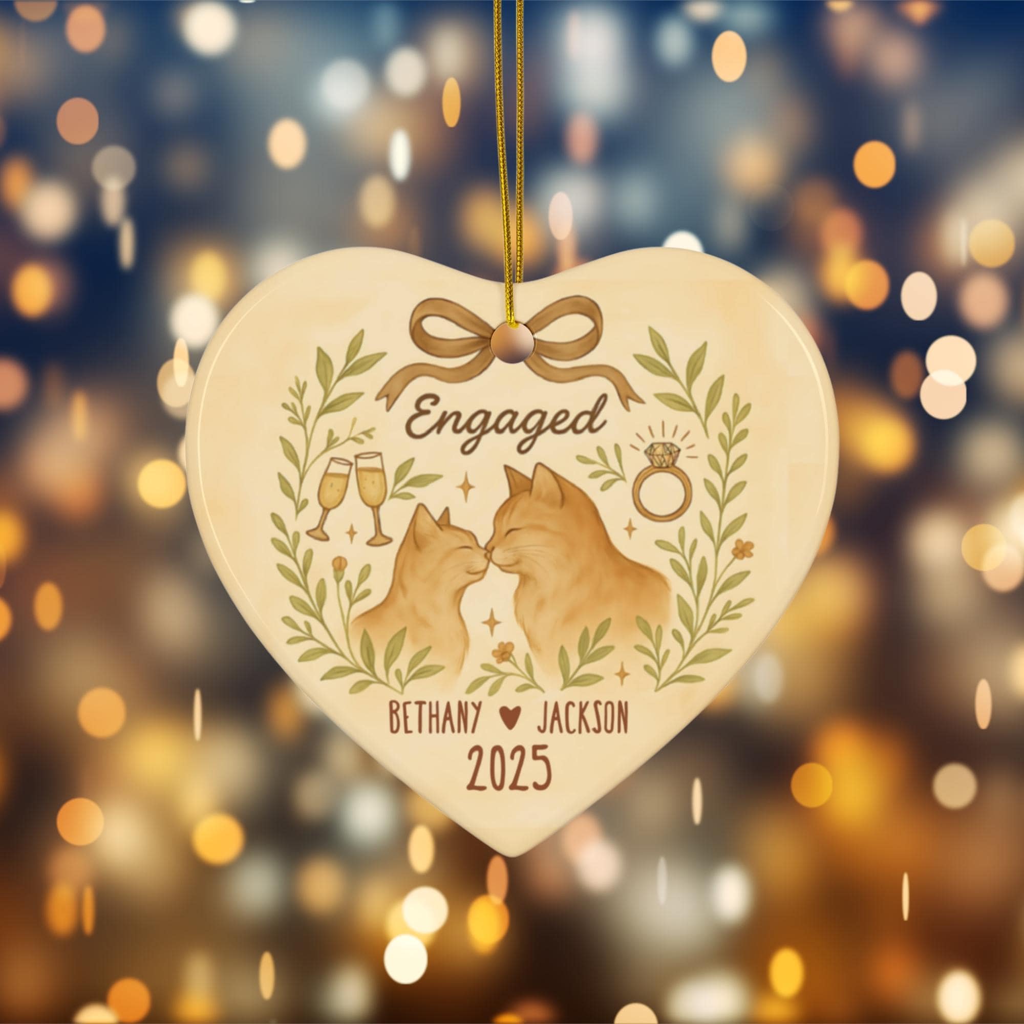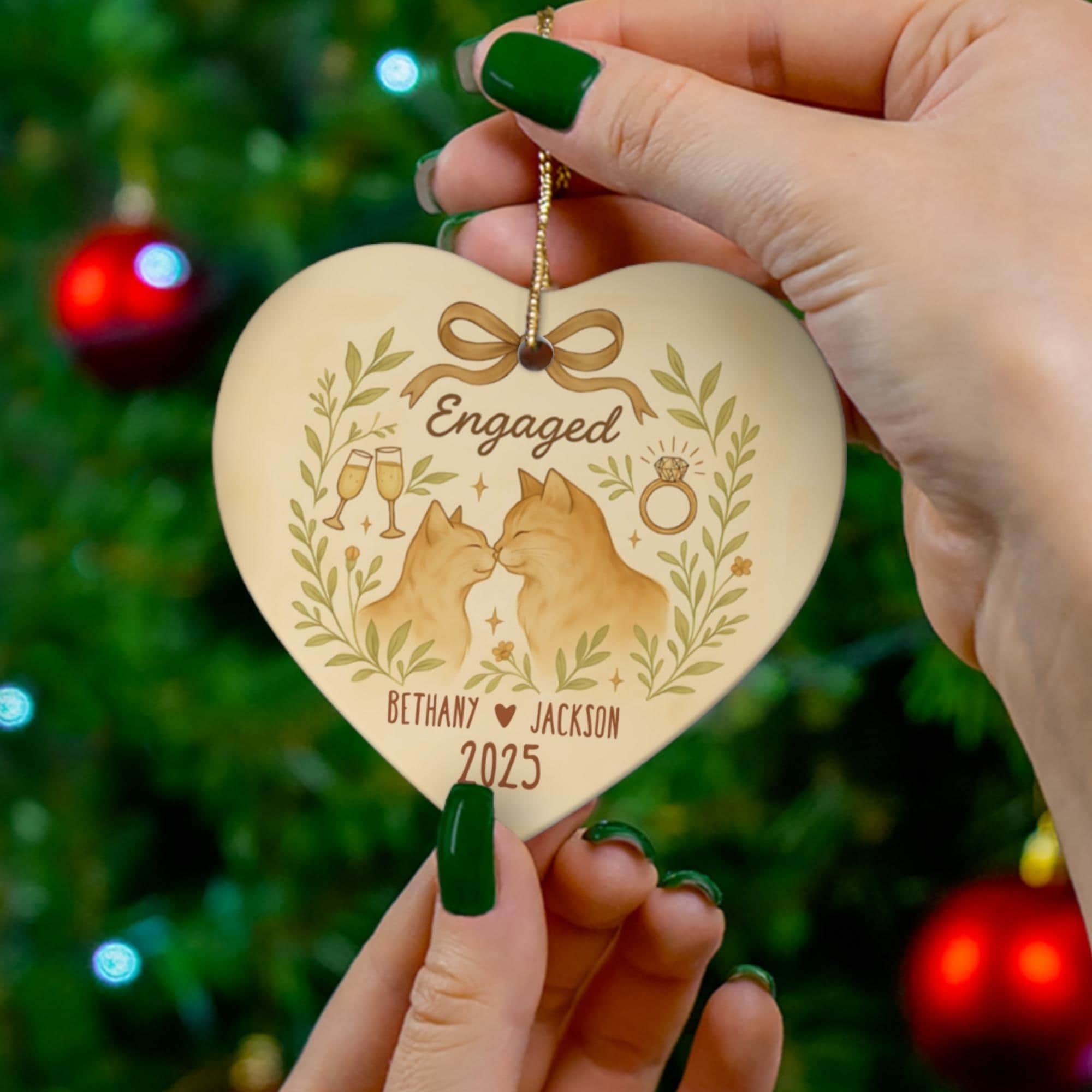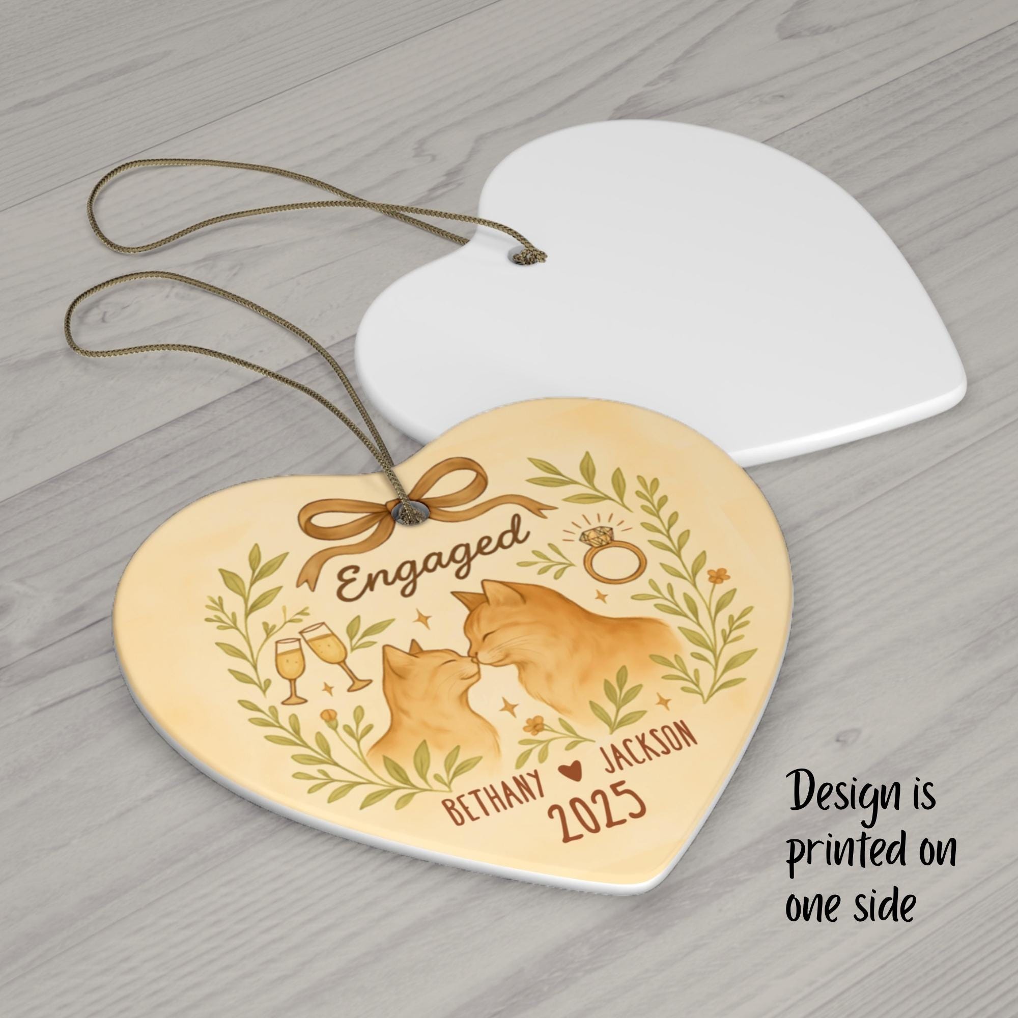 Personalized Engagement Ornament 2025, heart shaped ceramic keepsake for newly engaged couple