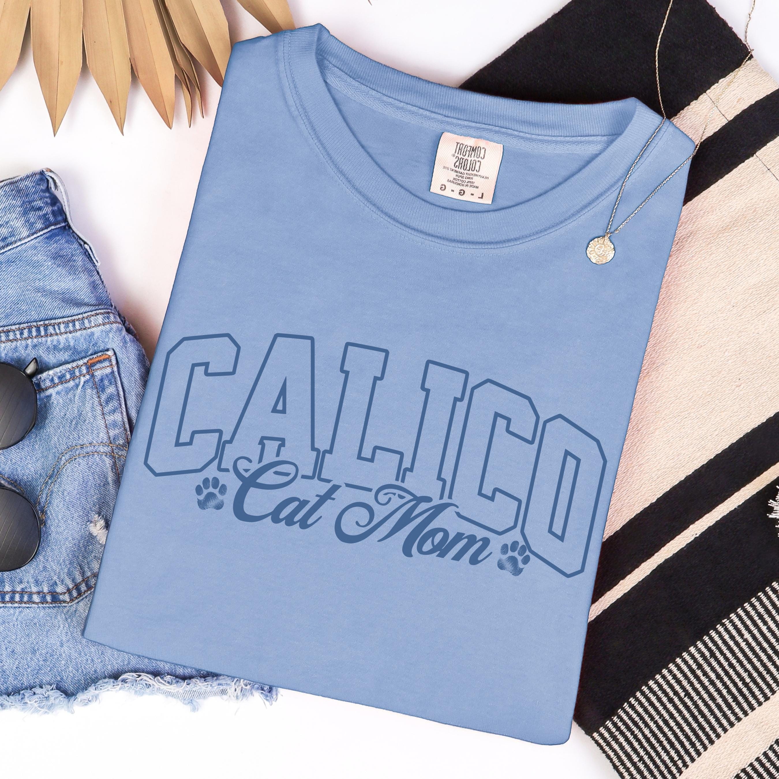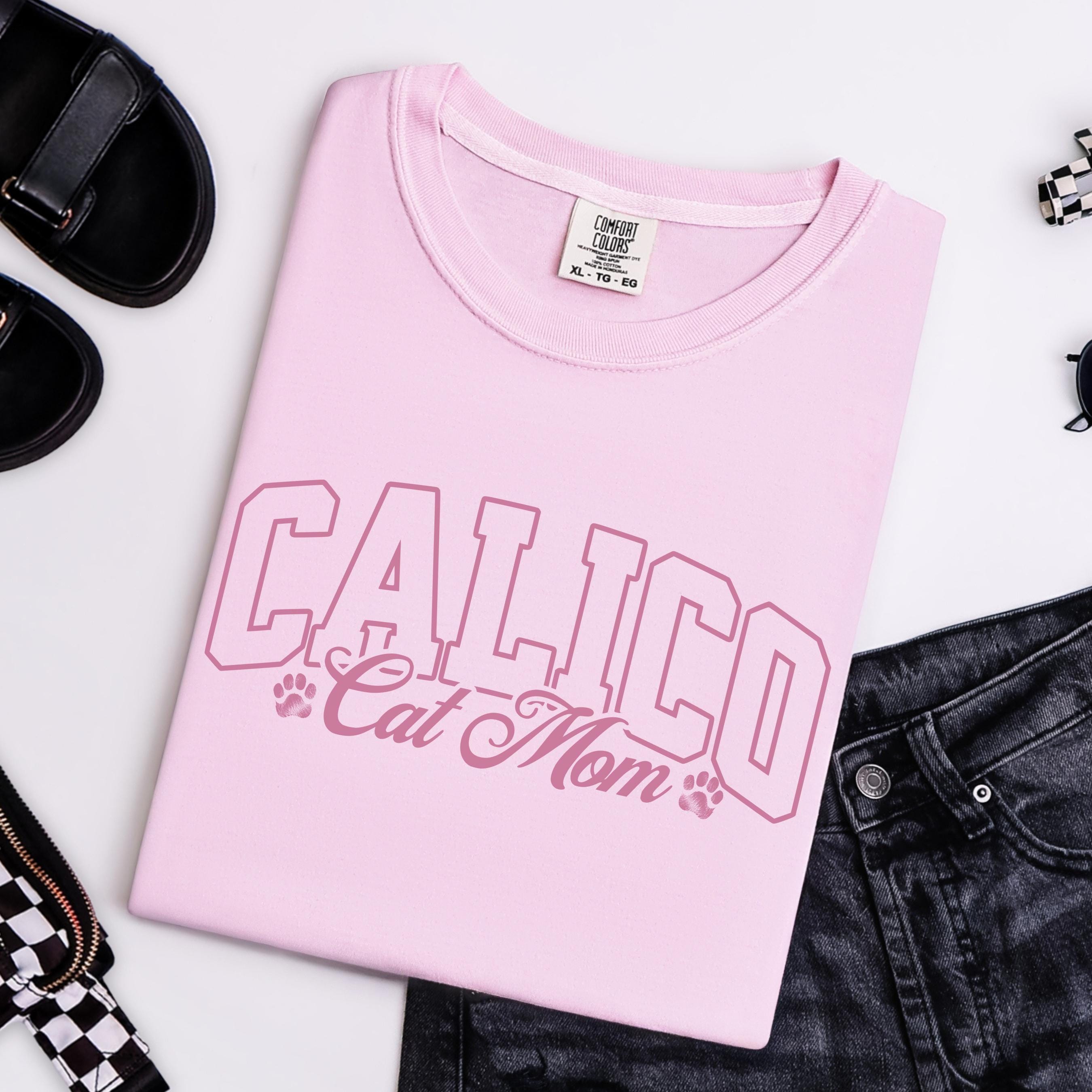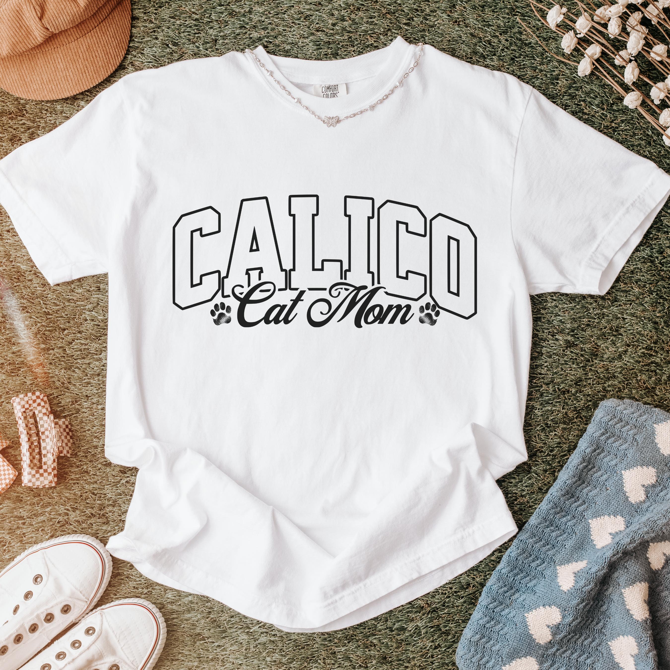 Show off your cat mom pride with this Calico Cat Mom shirt featuring playful paw icons and bold monochrome text. Perfect for lounging with your fur baby, running errands, or gifting to the ultimate cat lover in your life. Printed on the beloved Comfort Colors 1717 tee, this shirt delivers that relaxed, lived-in feel from day one.