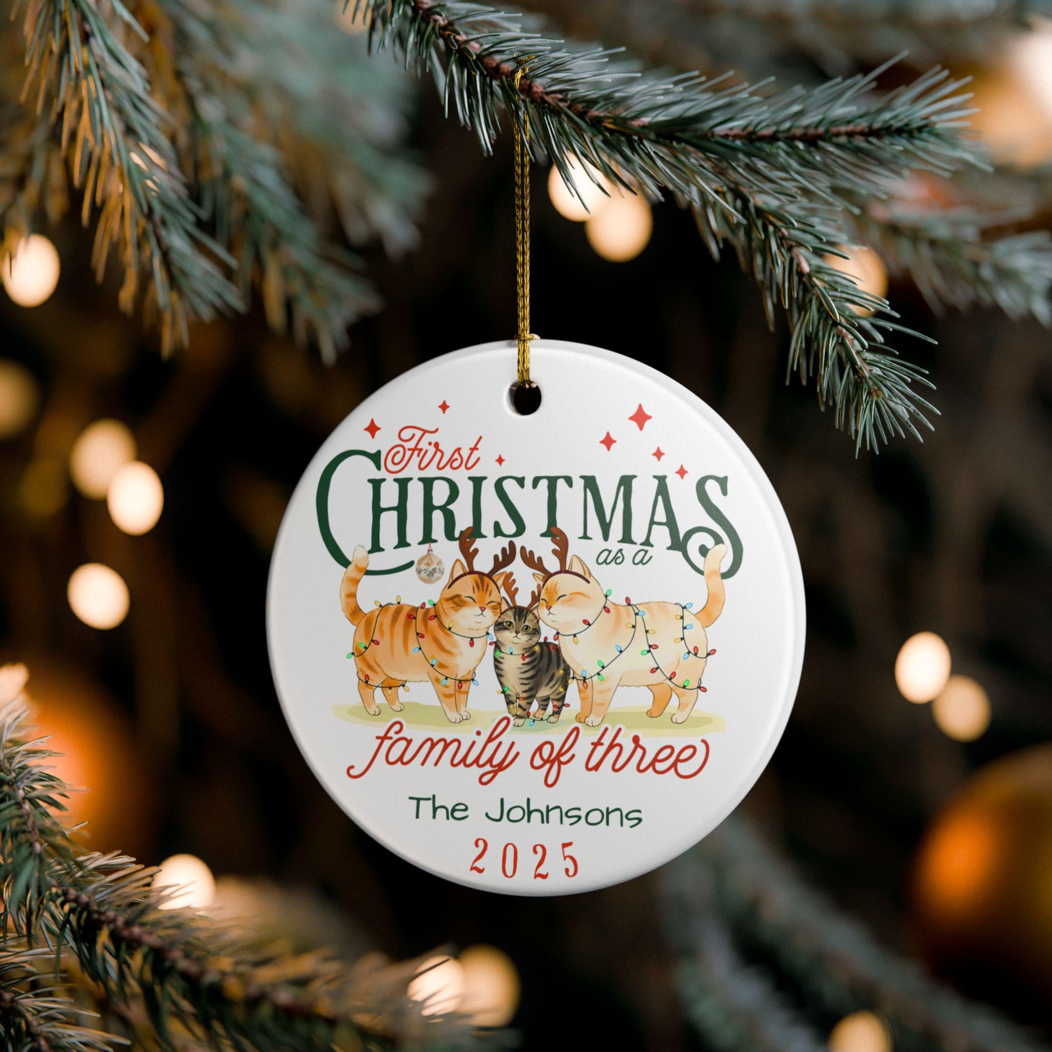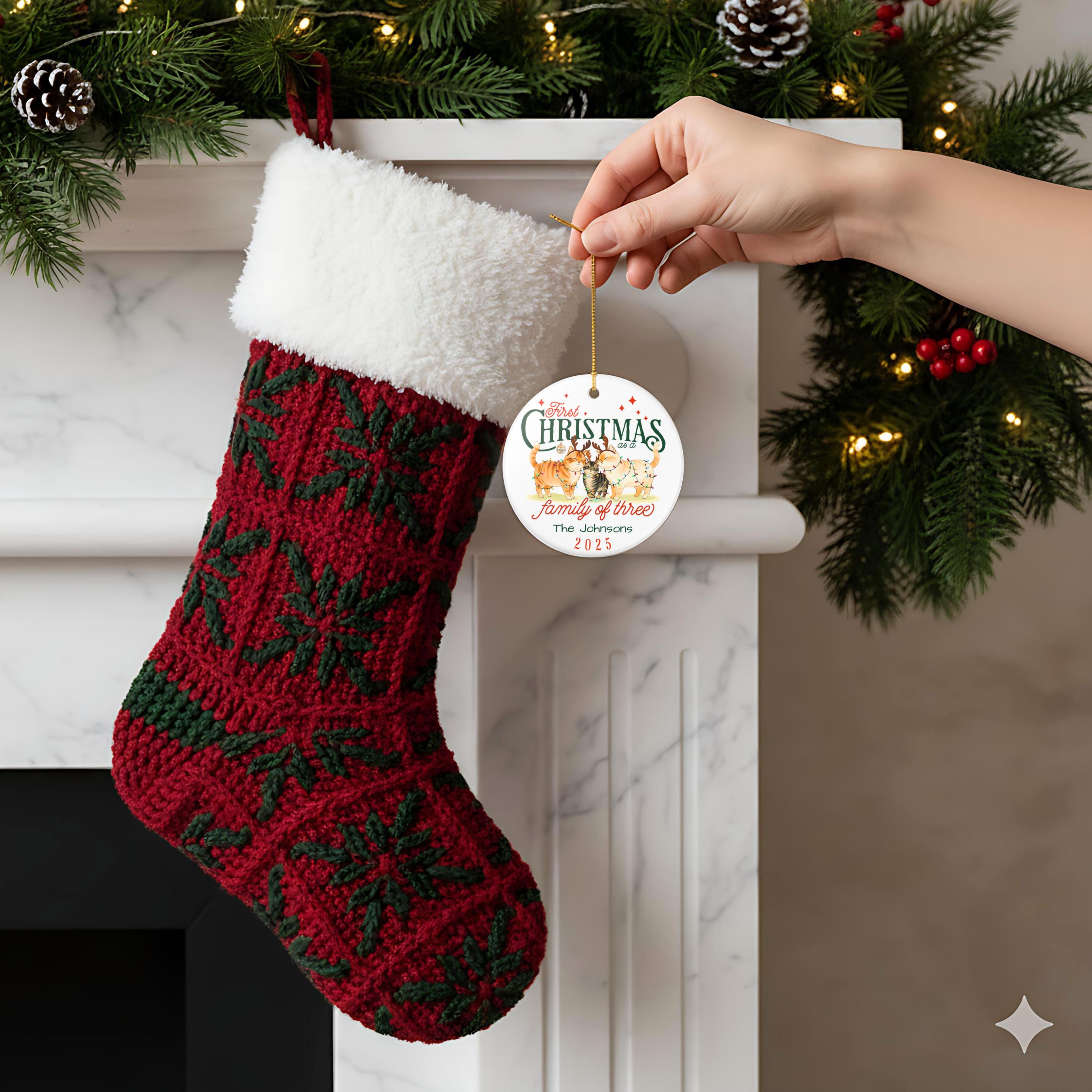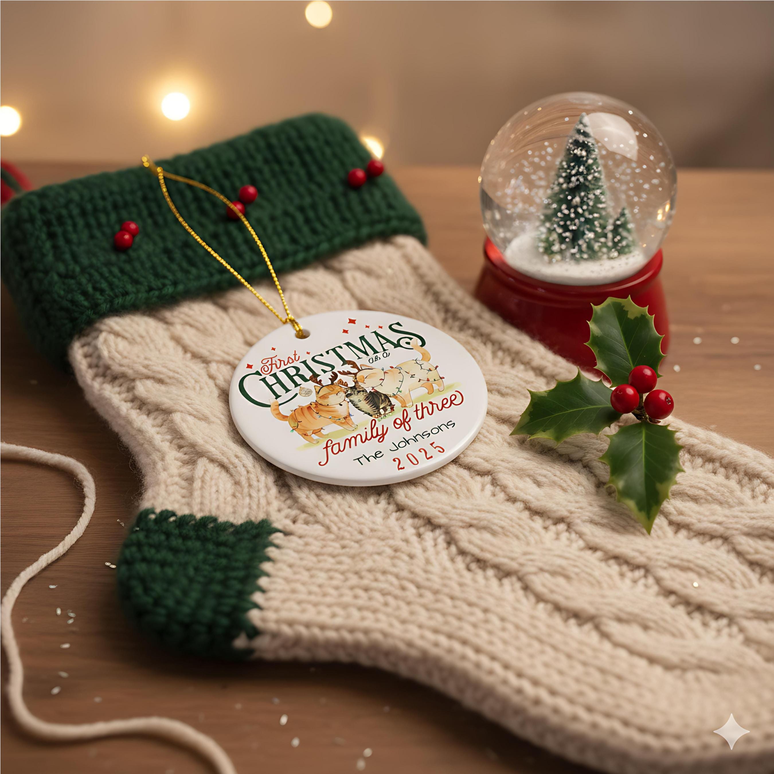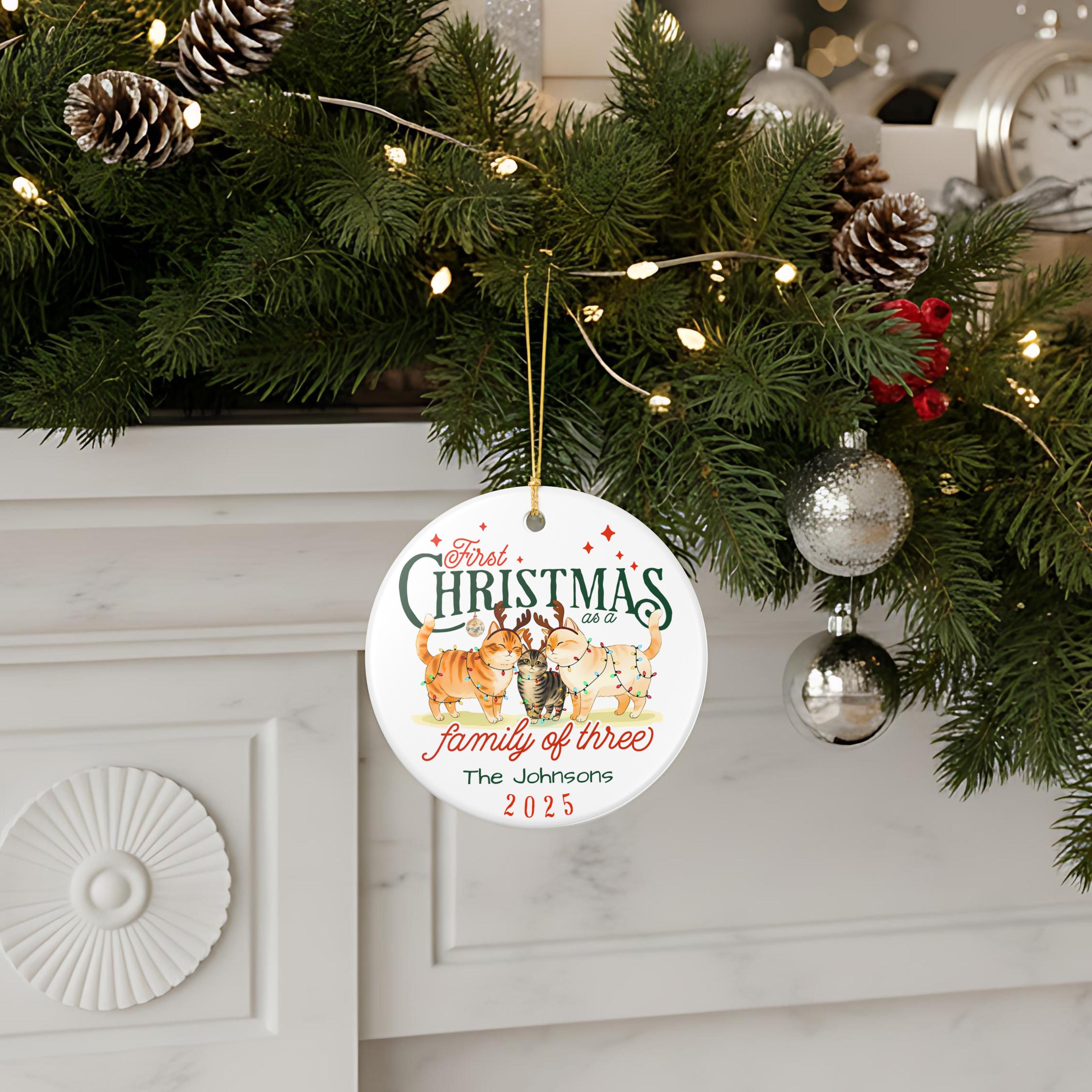 Personalized Cat Family First Christmas Ornament: Family of Three Keepsake