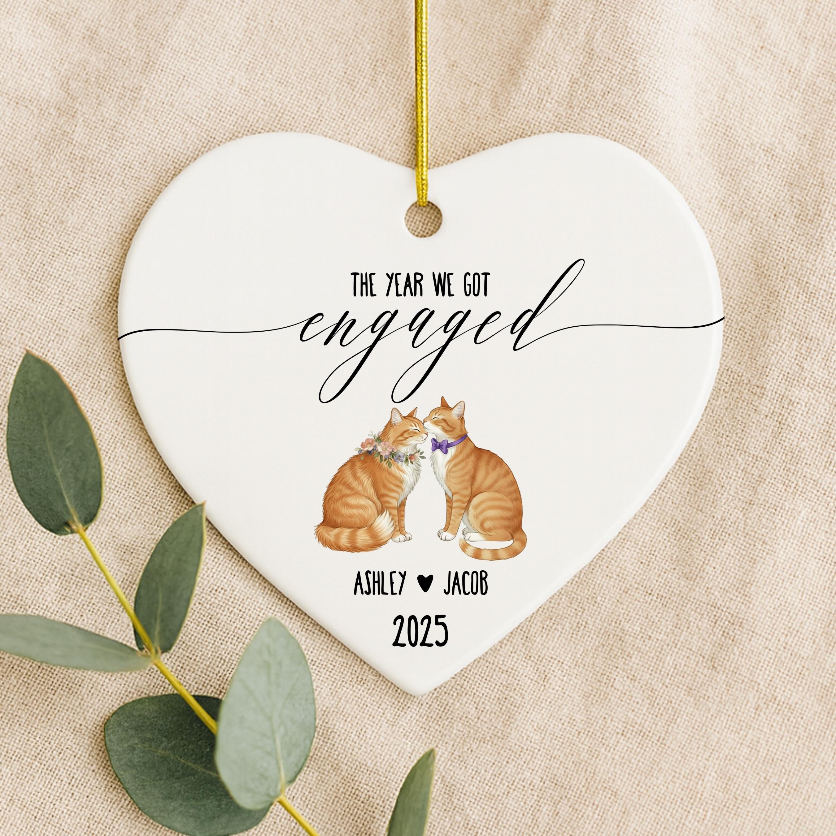 Personalized Cat Couple Engagement Ornament: Orange Tabby Cat Lover Keepsake