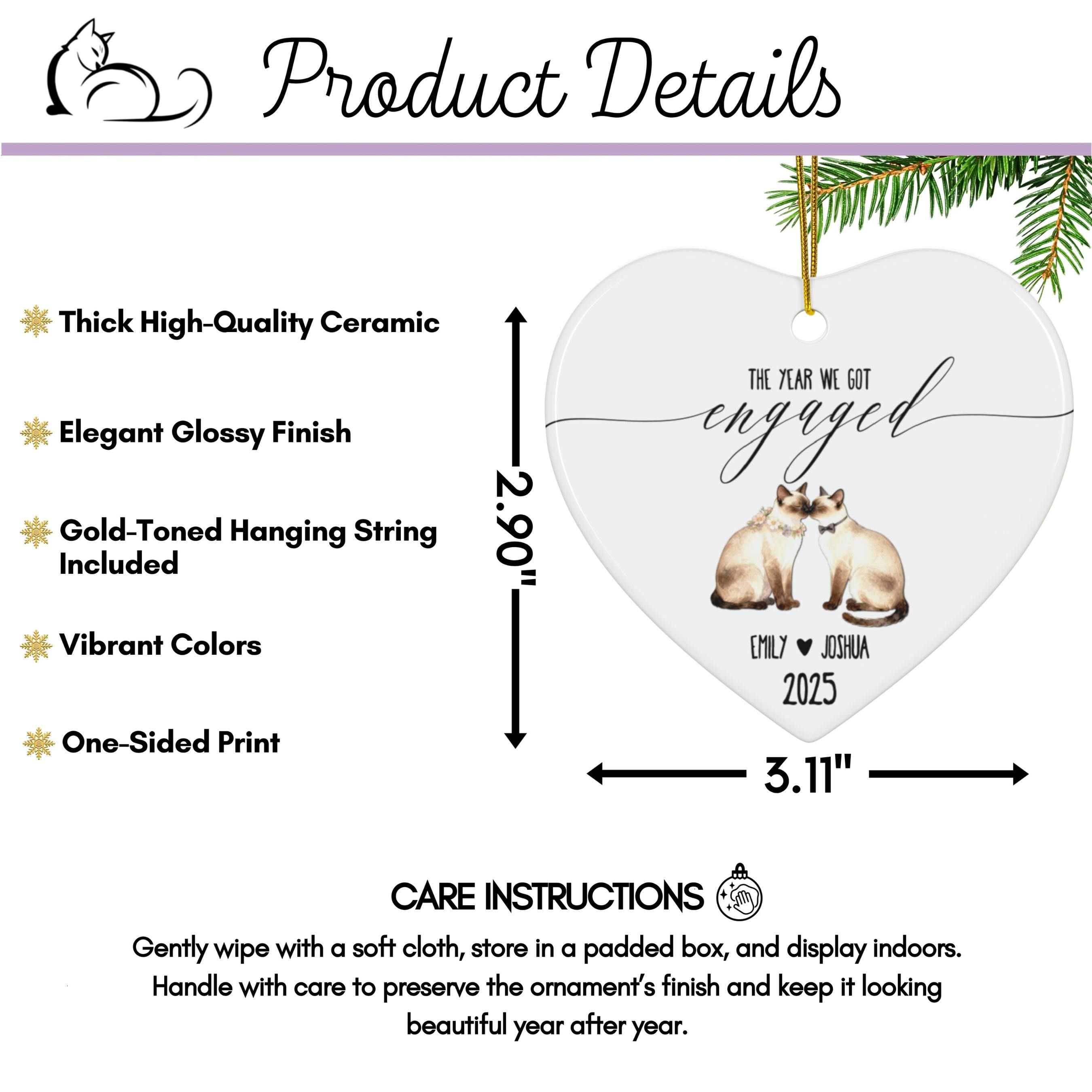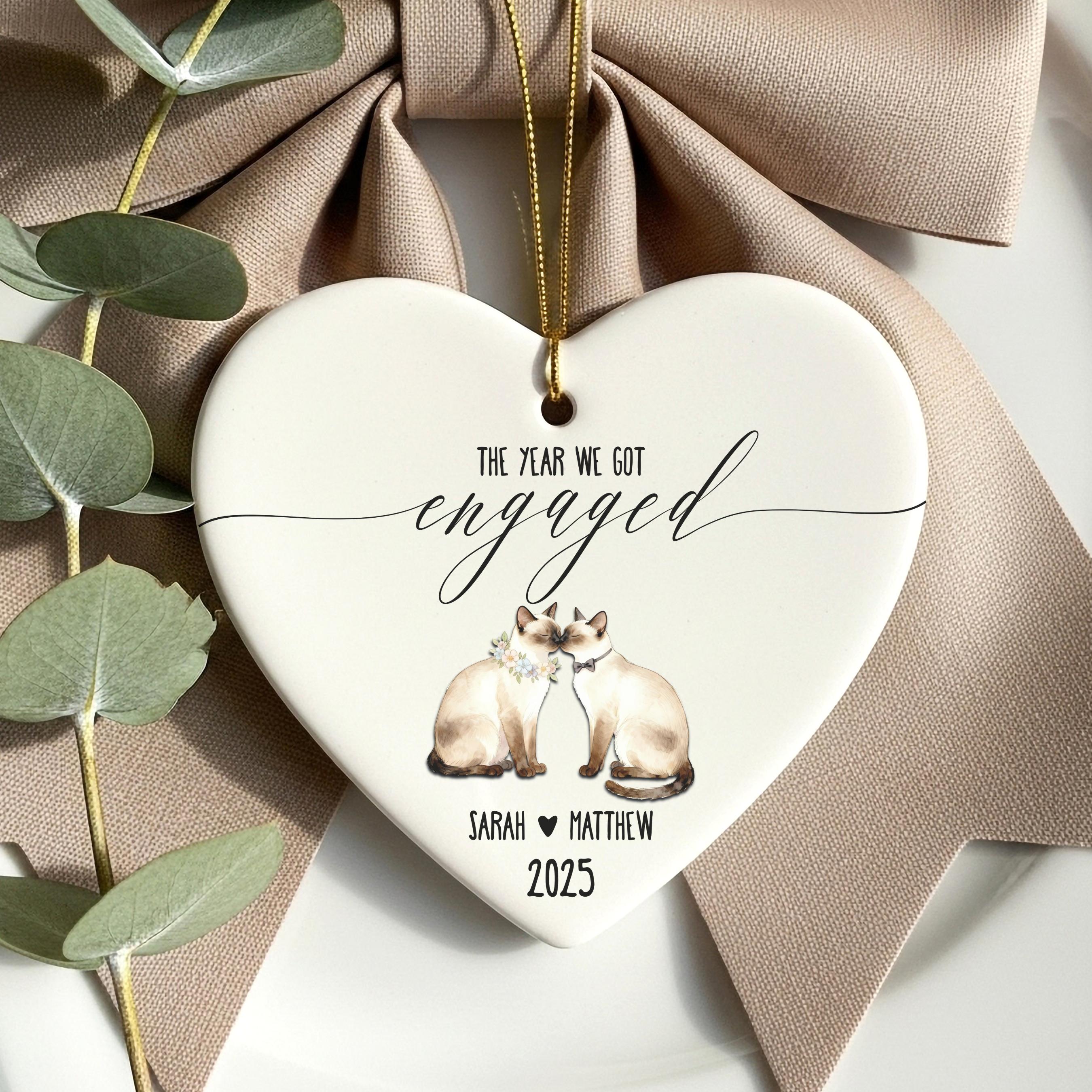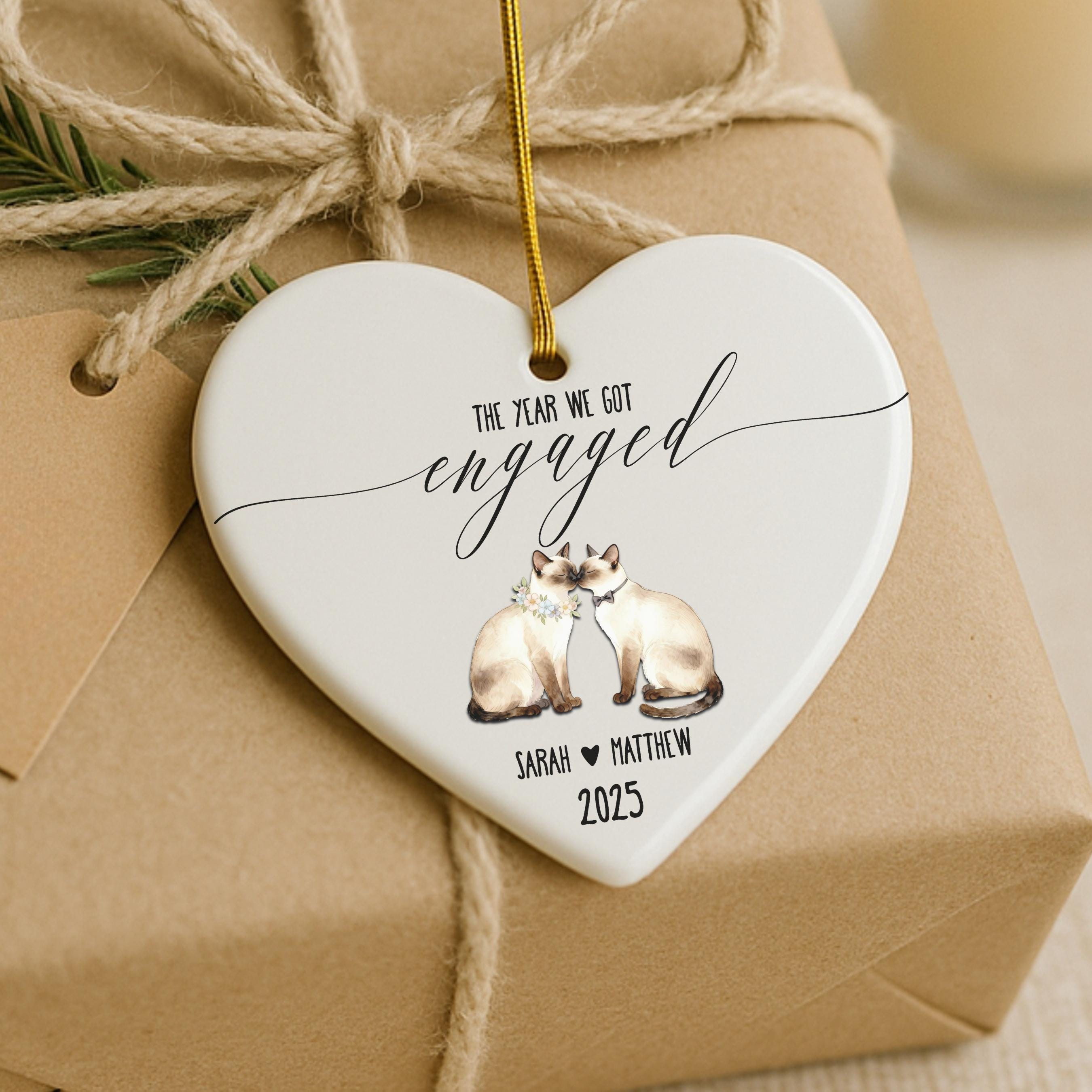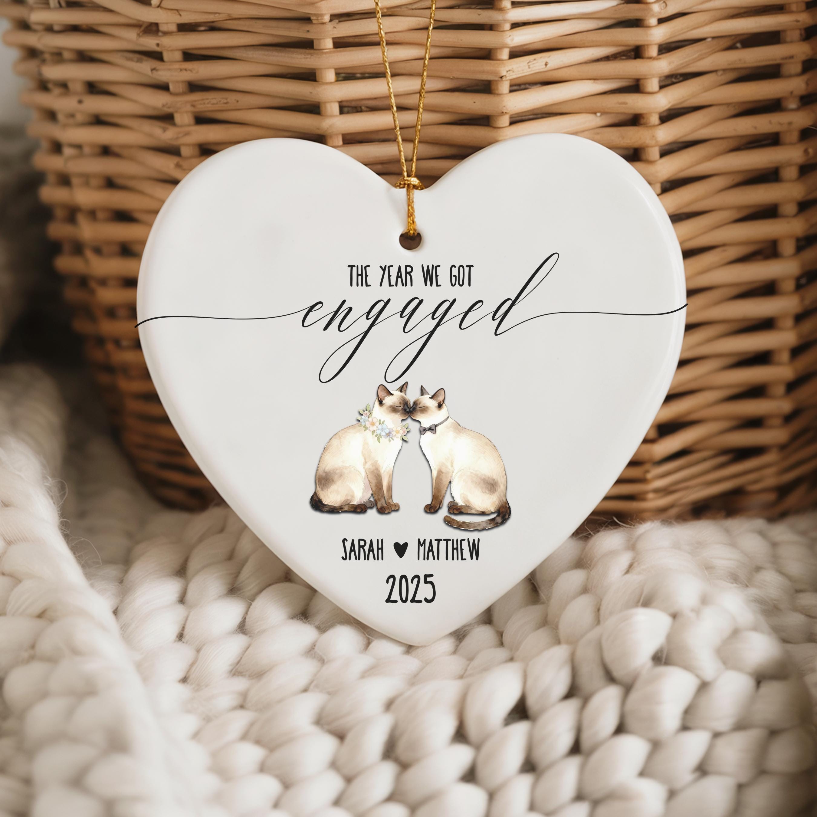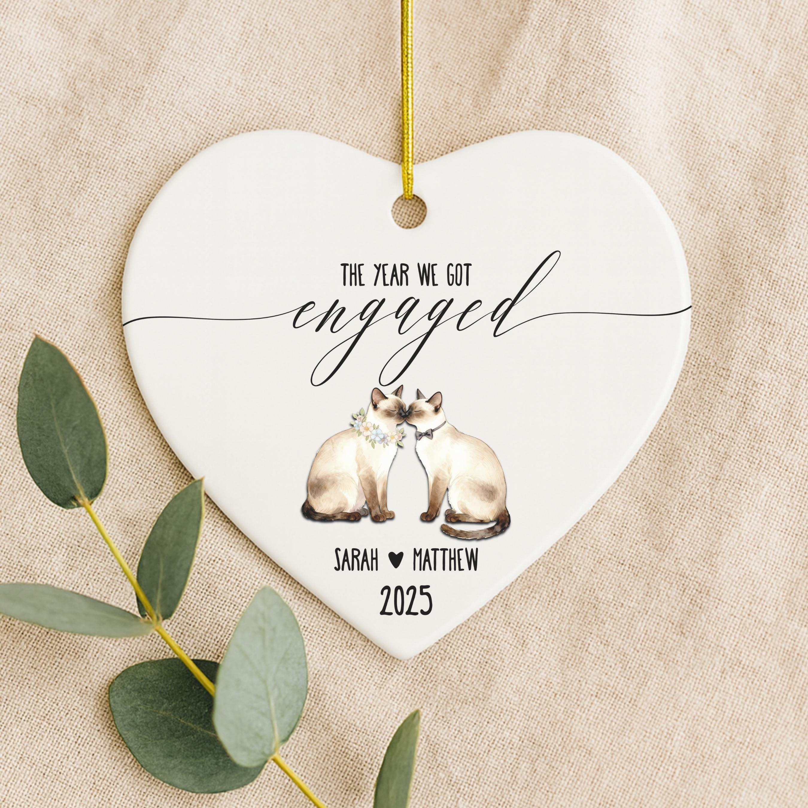 Personalized Cat Couple Engagement Ornament: Siamese Cat Lover Keepsake