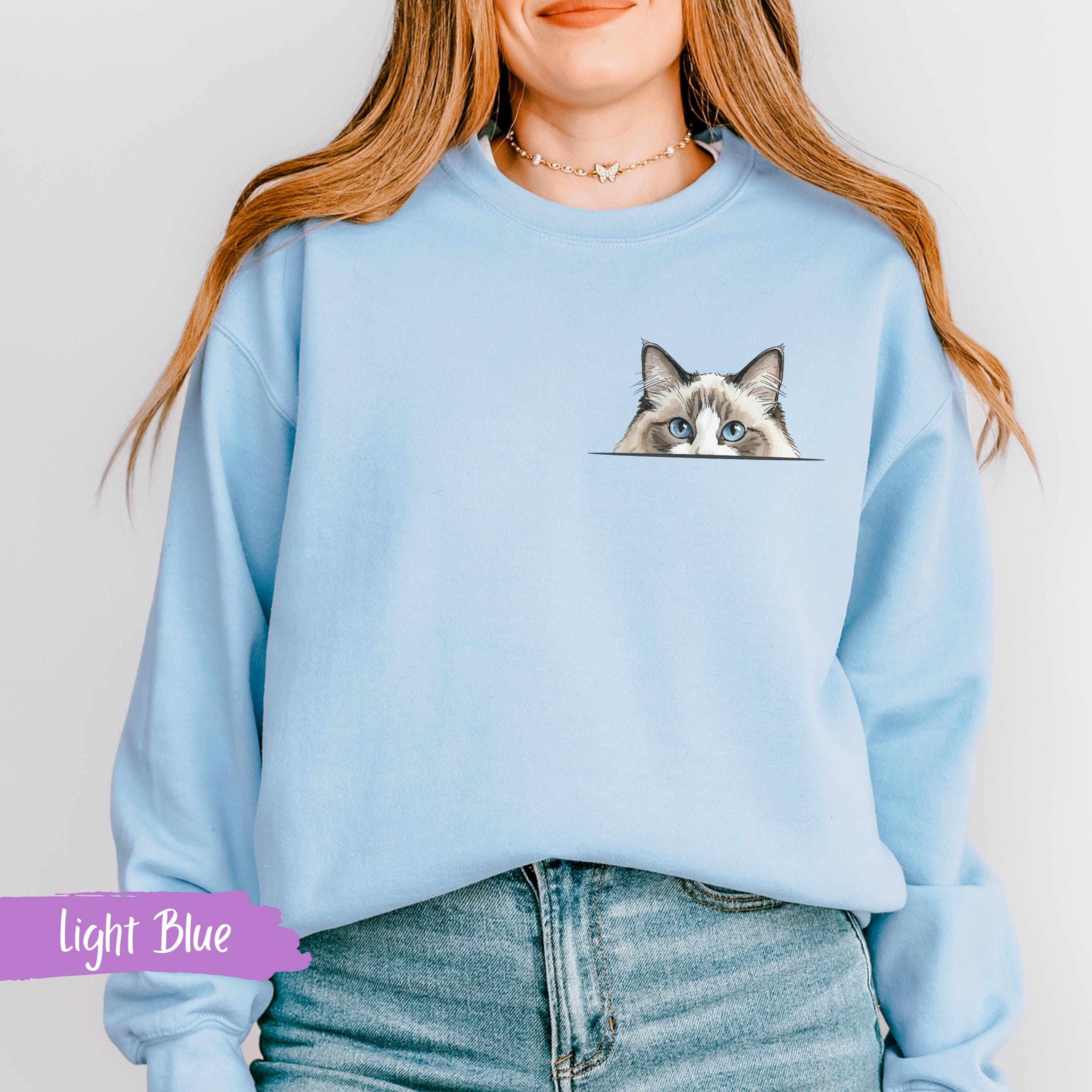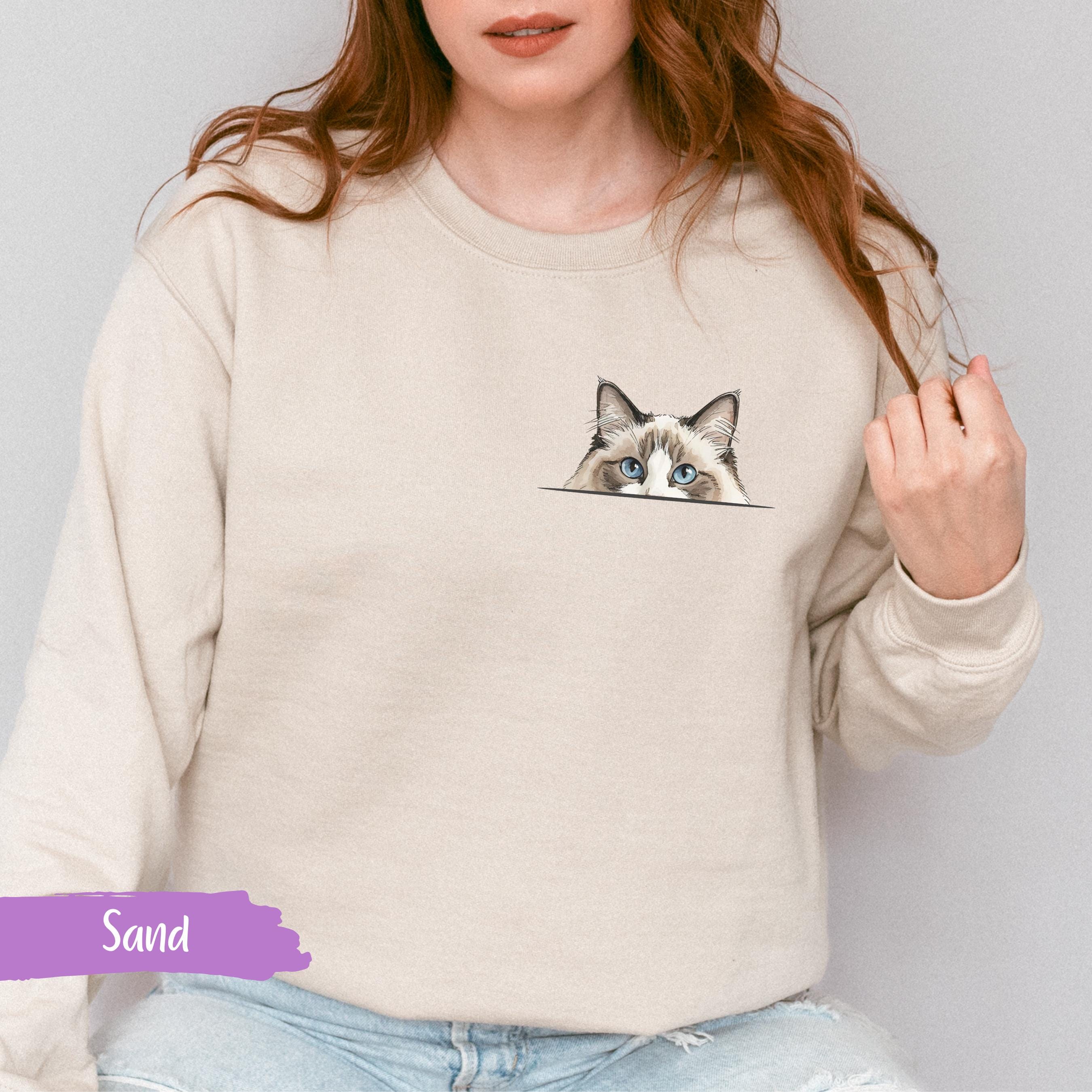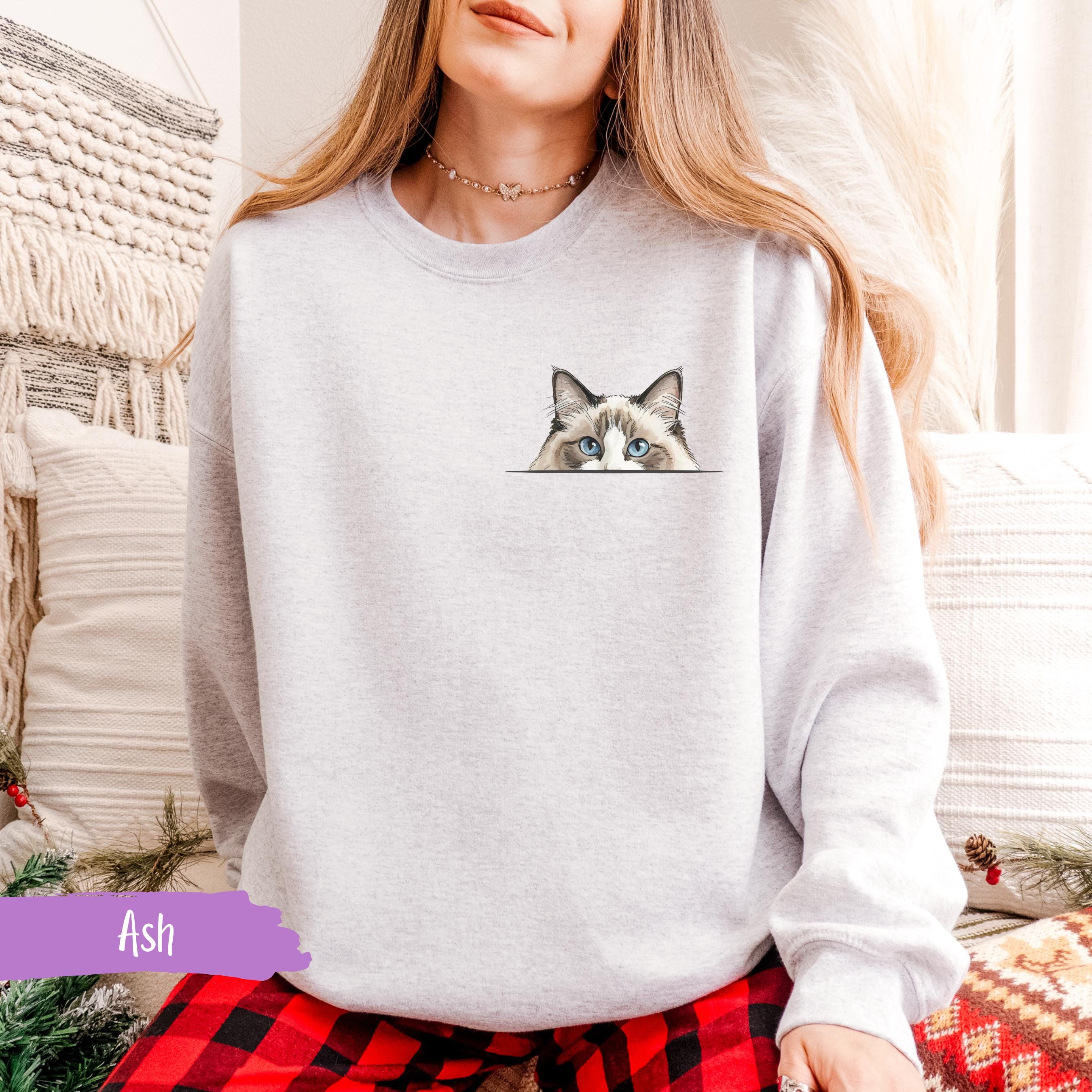 Peeking Ragdoll Cat Sweatshirt: Cute Kitty Pocket Design