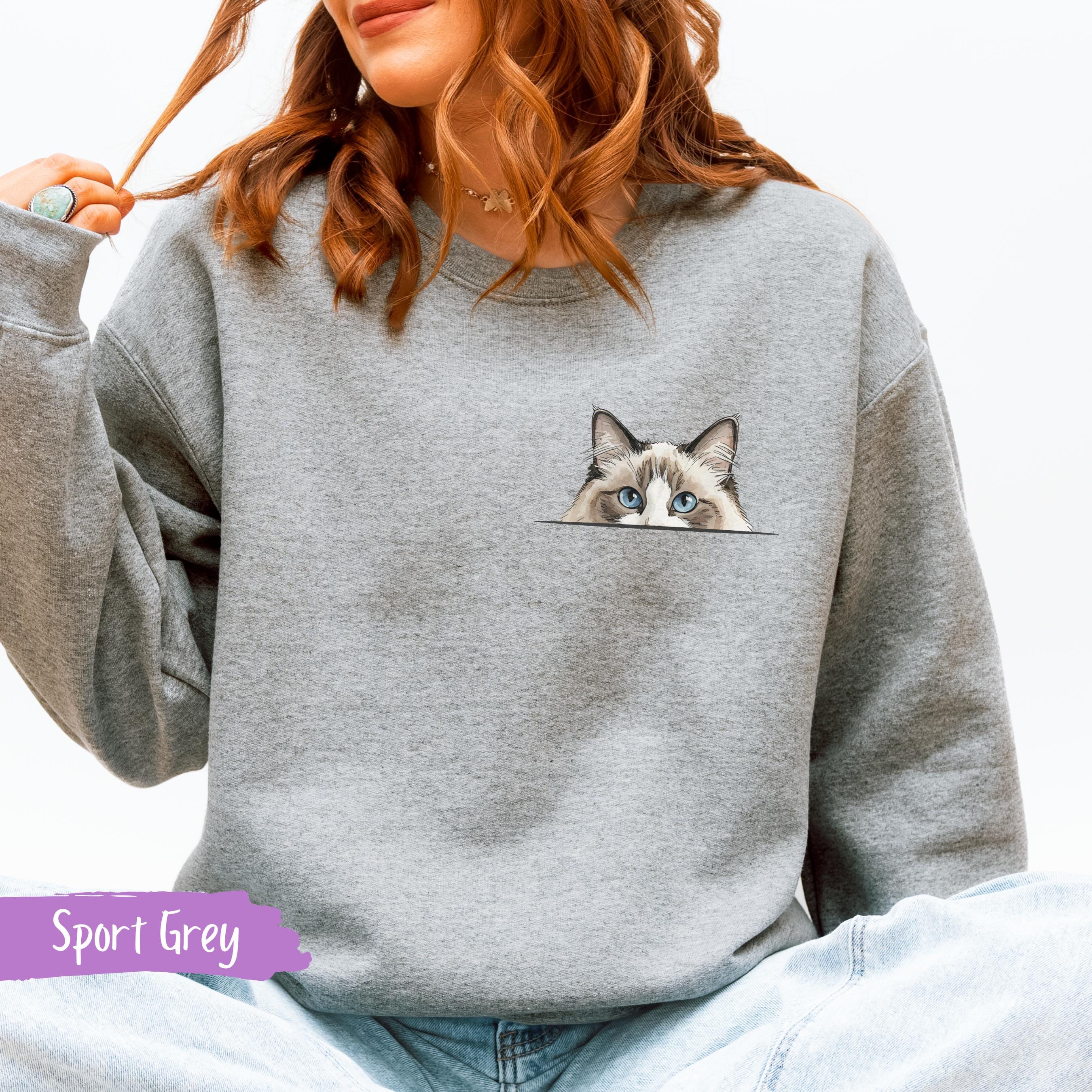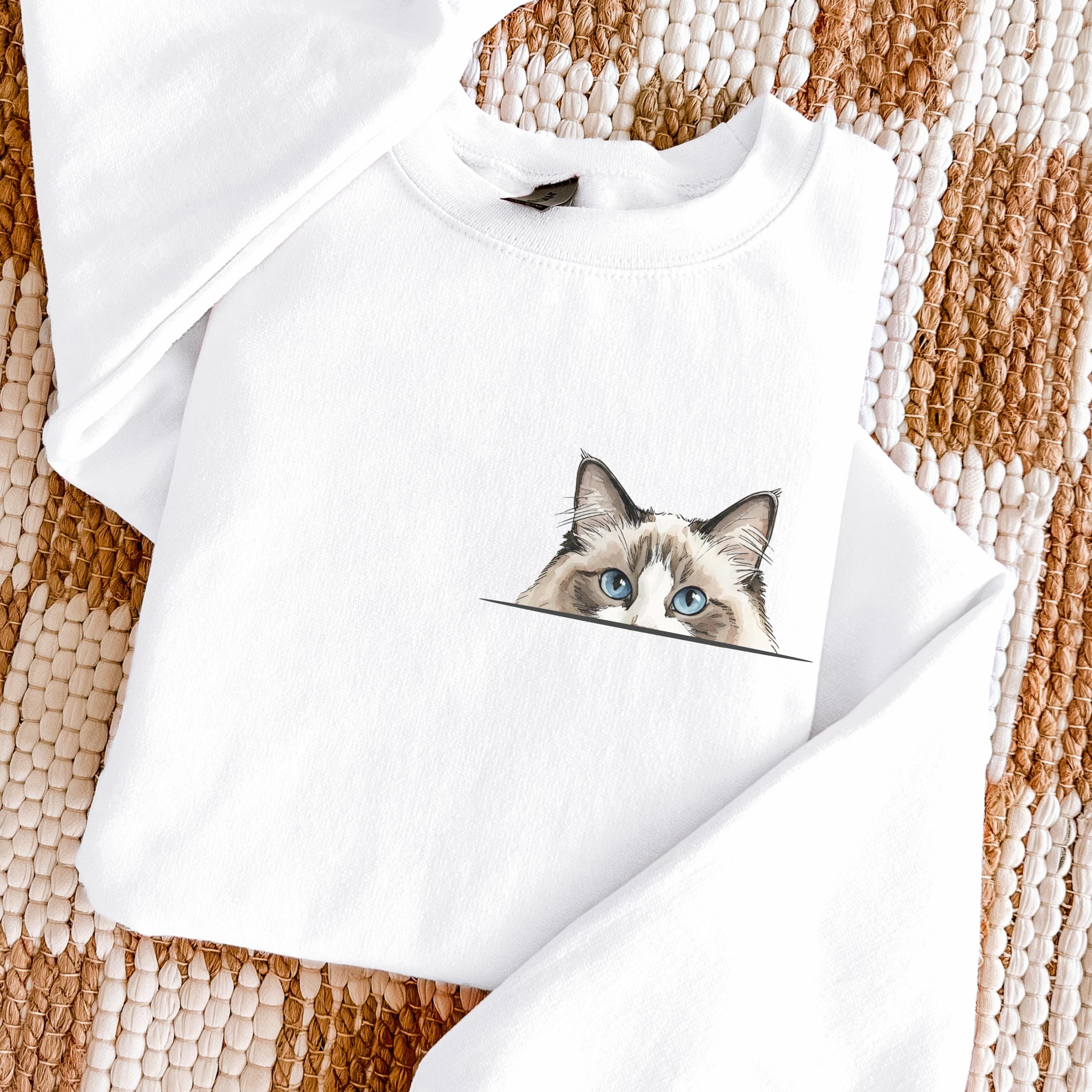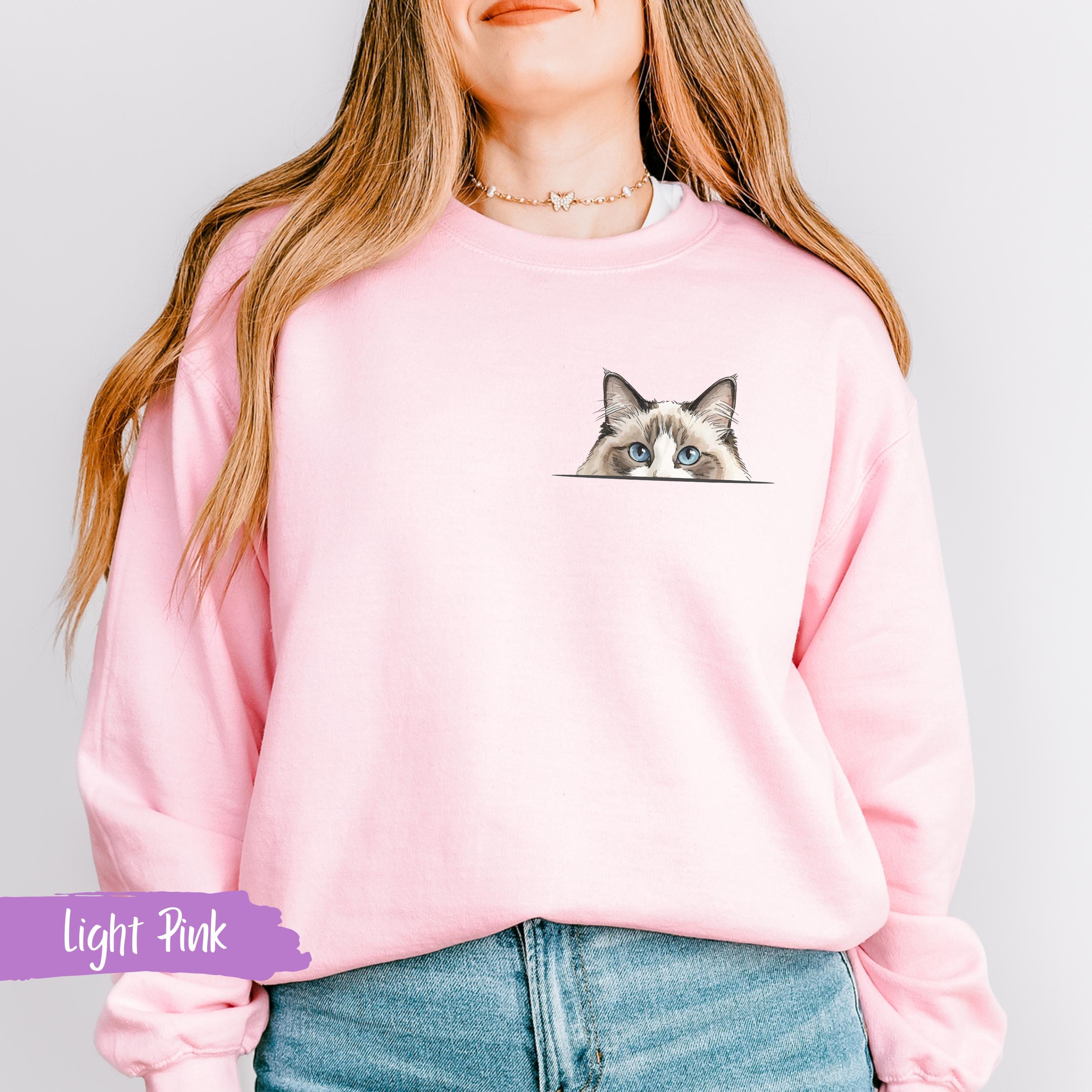 Peeking Ragdoll Cat Sweatshirt: Cute Kitty Pocket Design