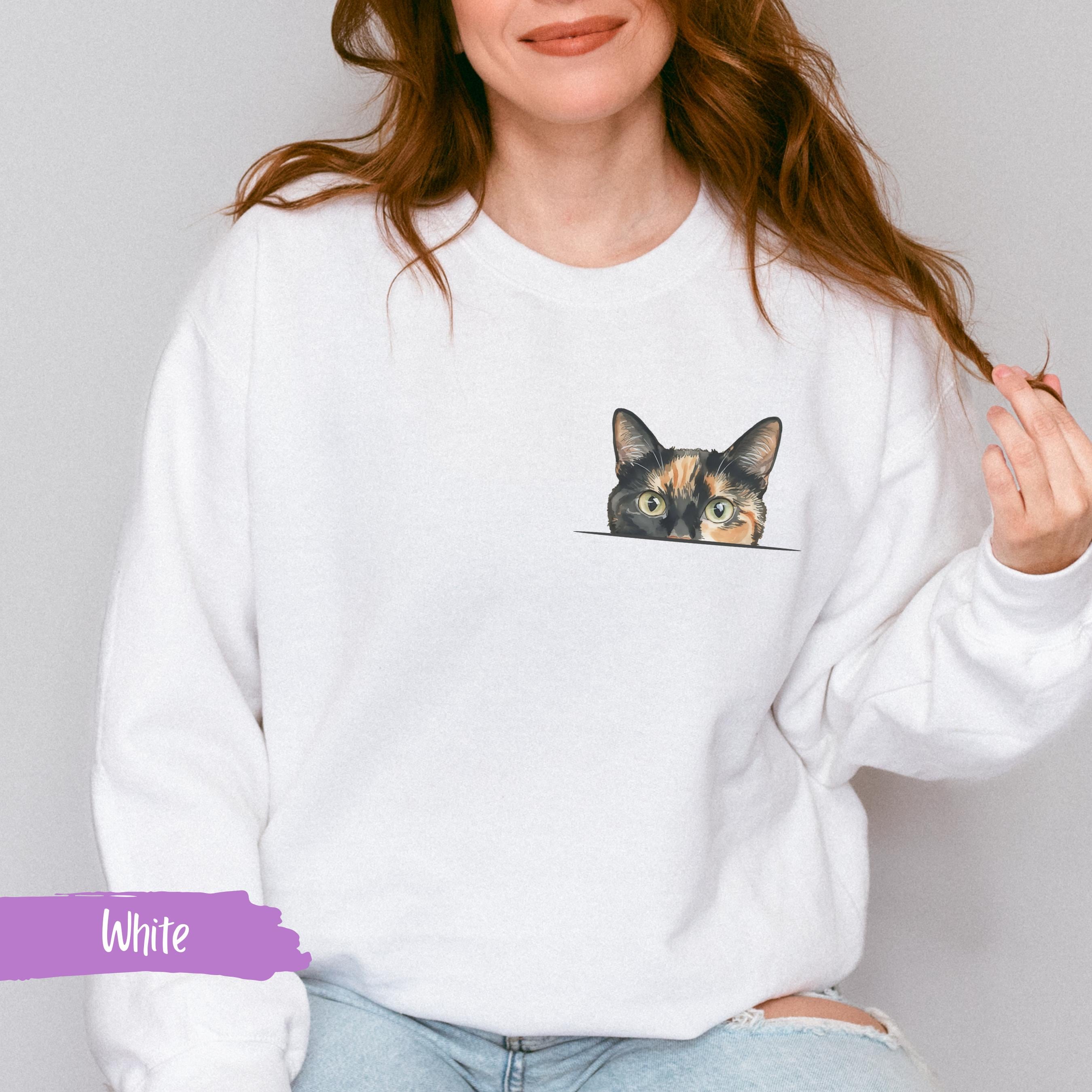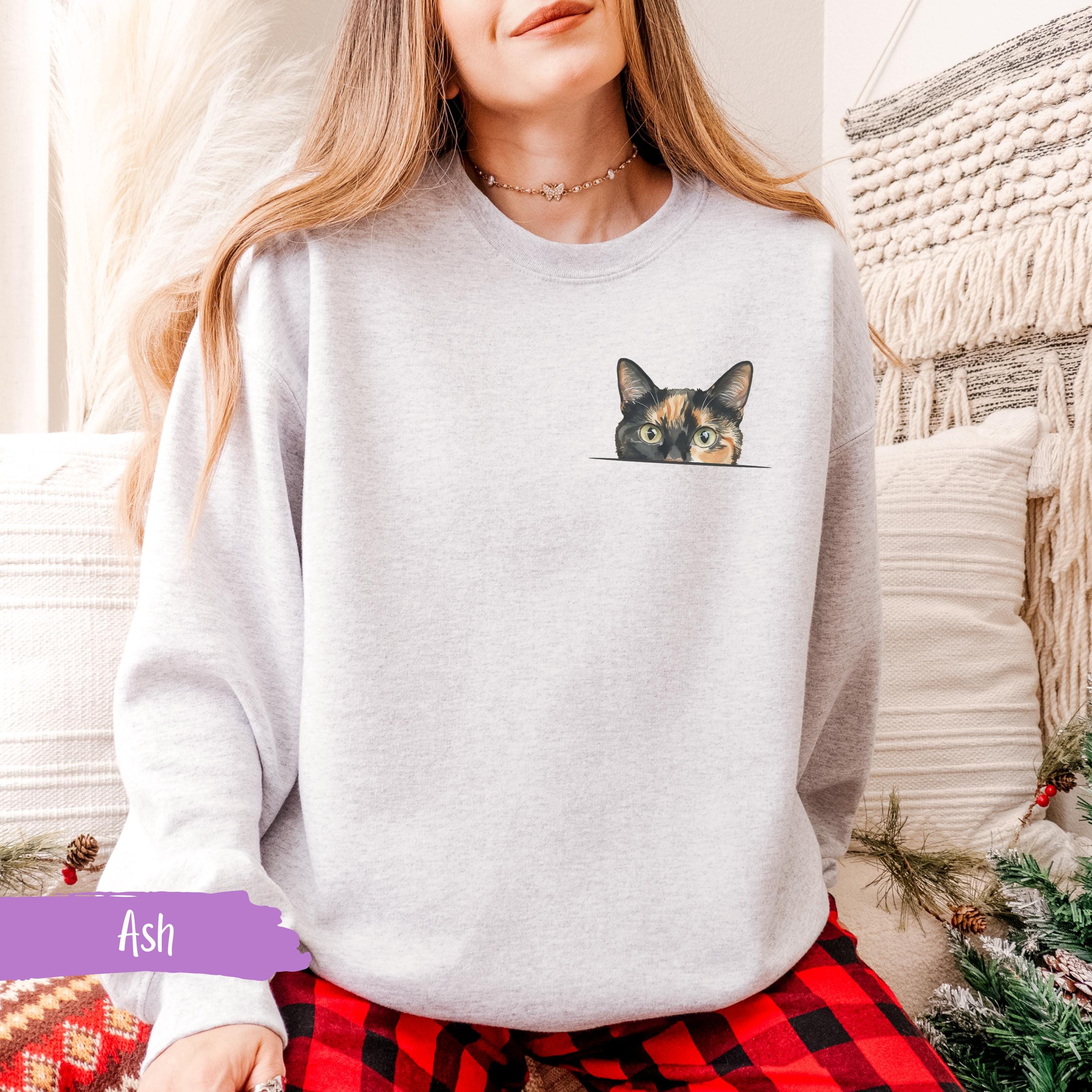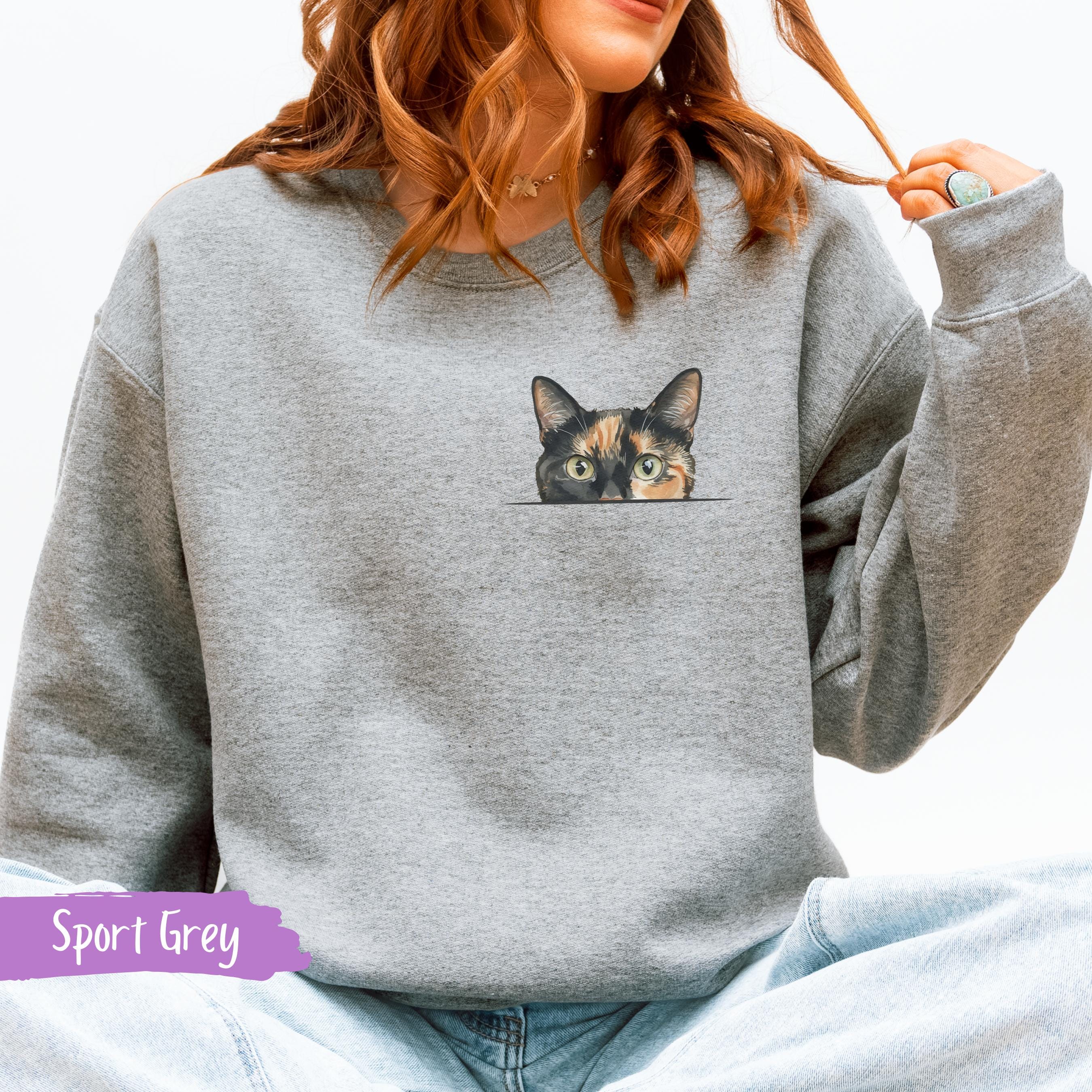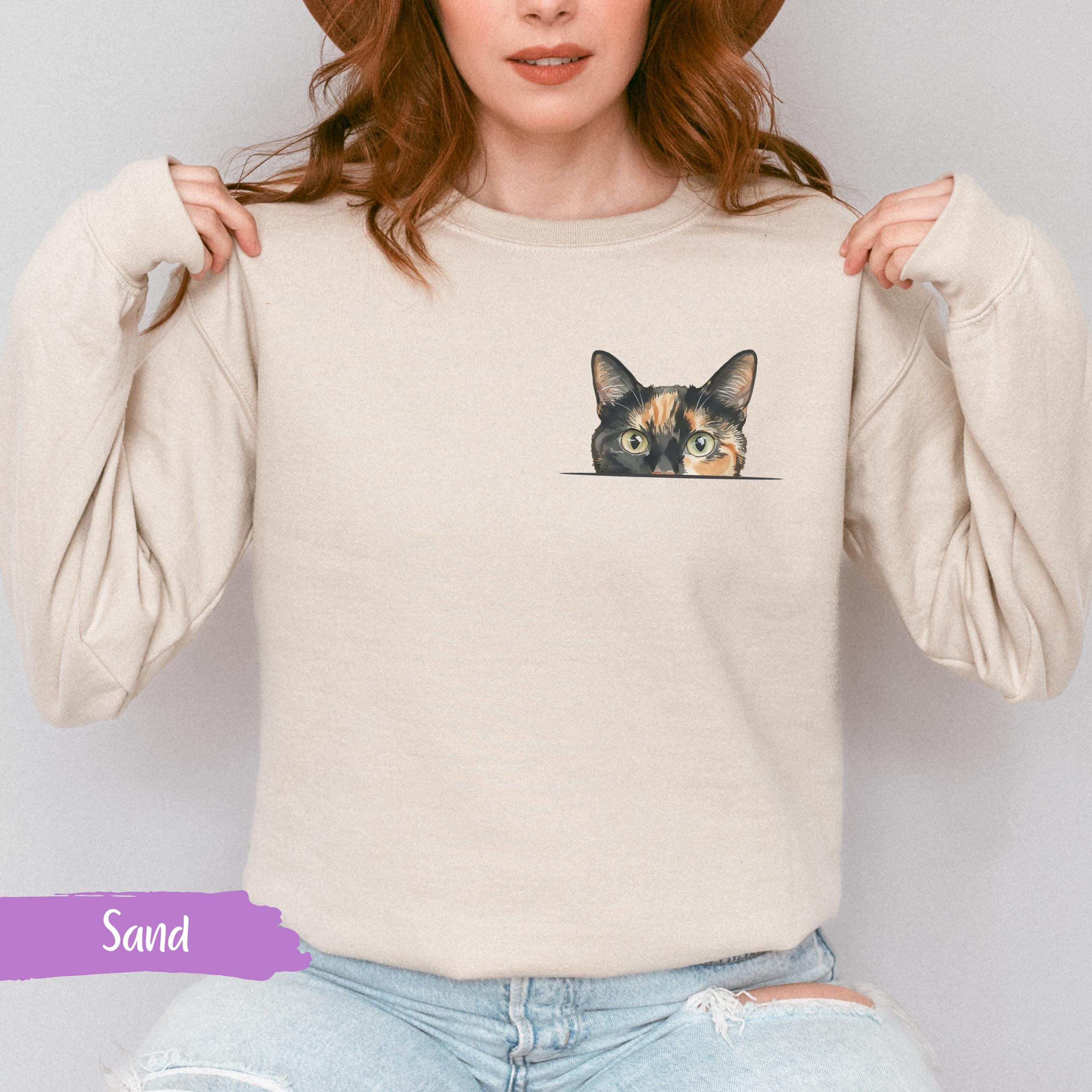Peeking Tortoiseshell Cat Sweatshirt: Cute Tortie Kitty Pocket Design