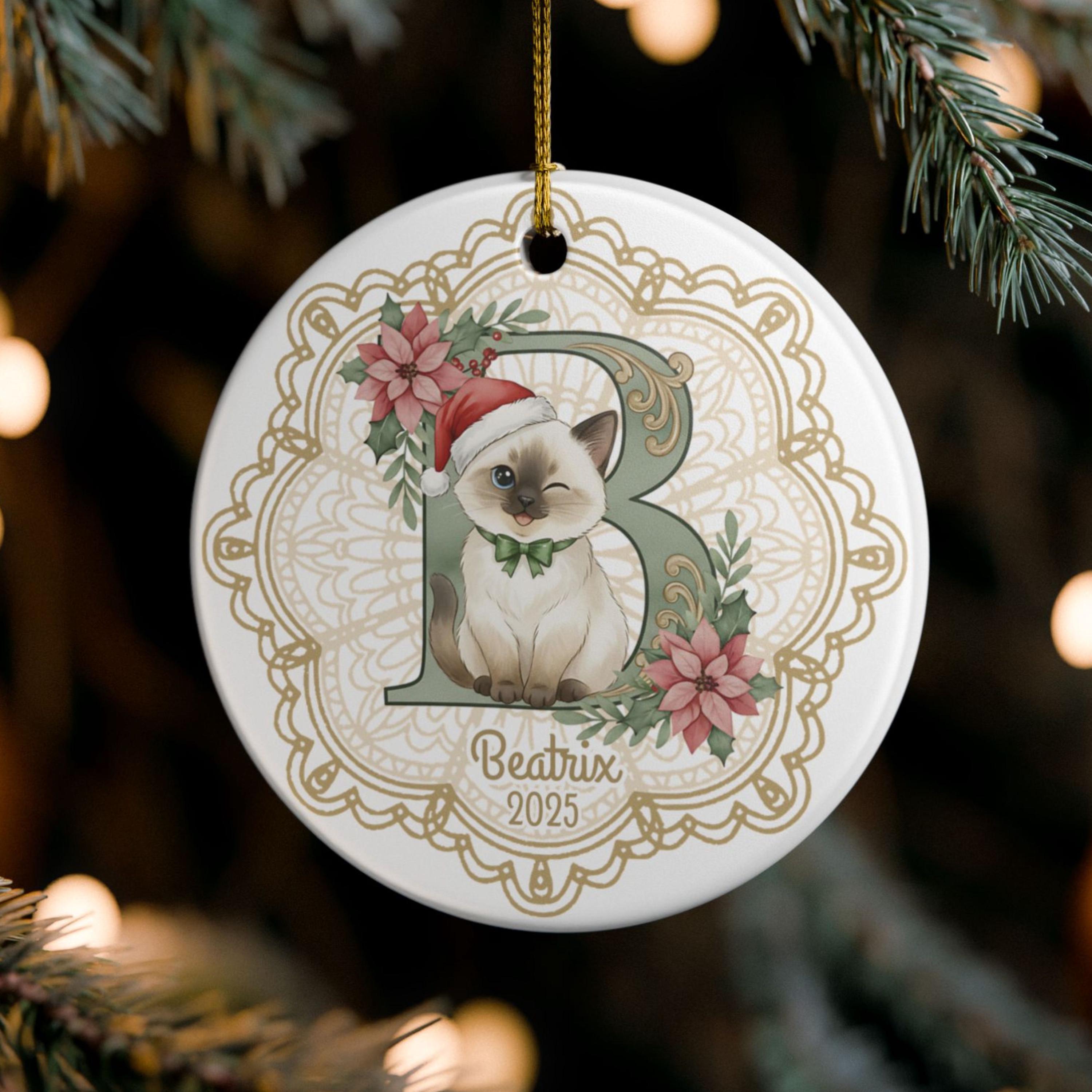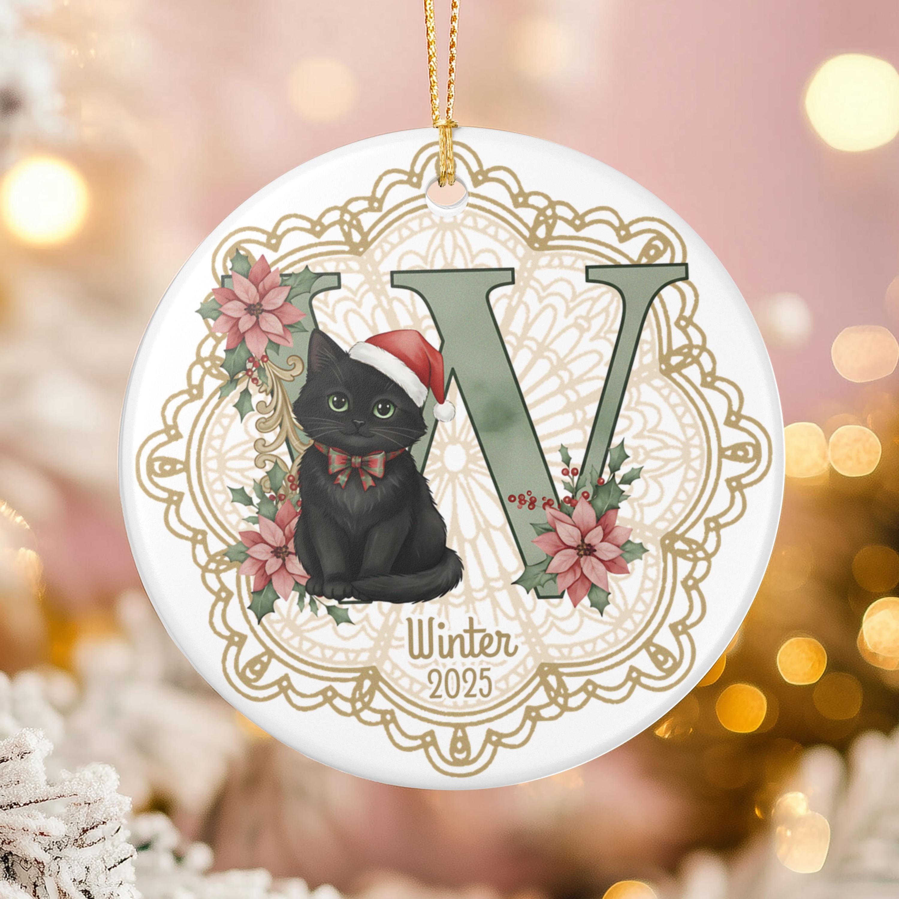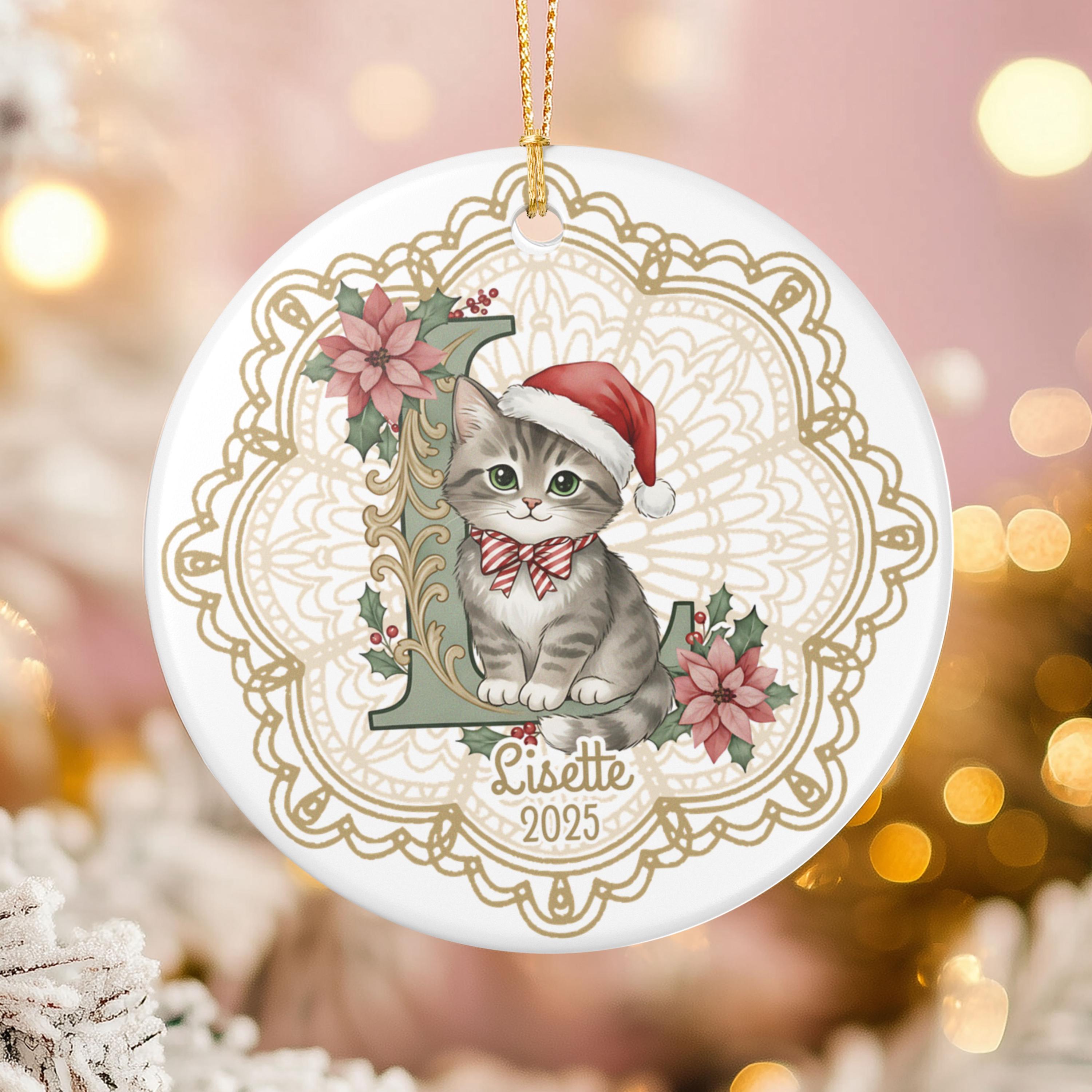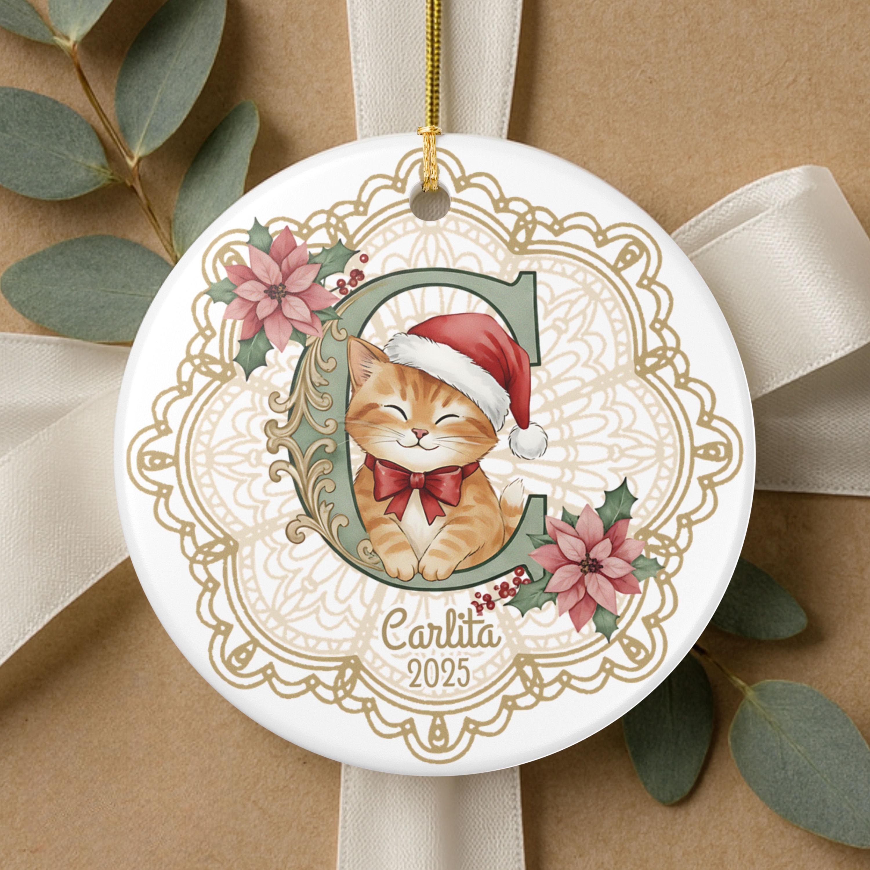 Looking for the purr-fect holiday keepsake for the cat lover in your life? This custom ceramic ornament features your chosen initial and name accompanied by a vintage-inspired Christmas kitty — all set against an elegant lace doily background that brings timeless holiday charm. Whether you’re celebrating your own feline friend or gifting to a fellow cat mom, this one’s a heart-melter. 🎄🐱