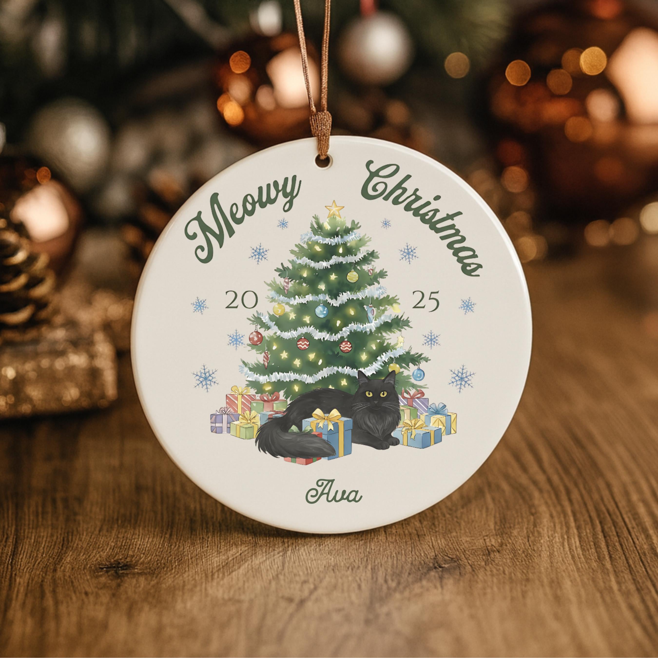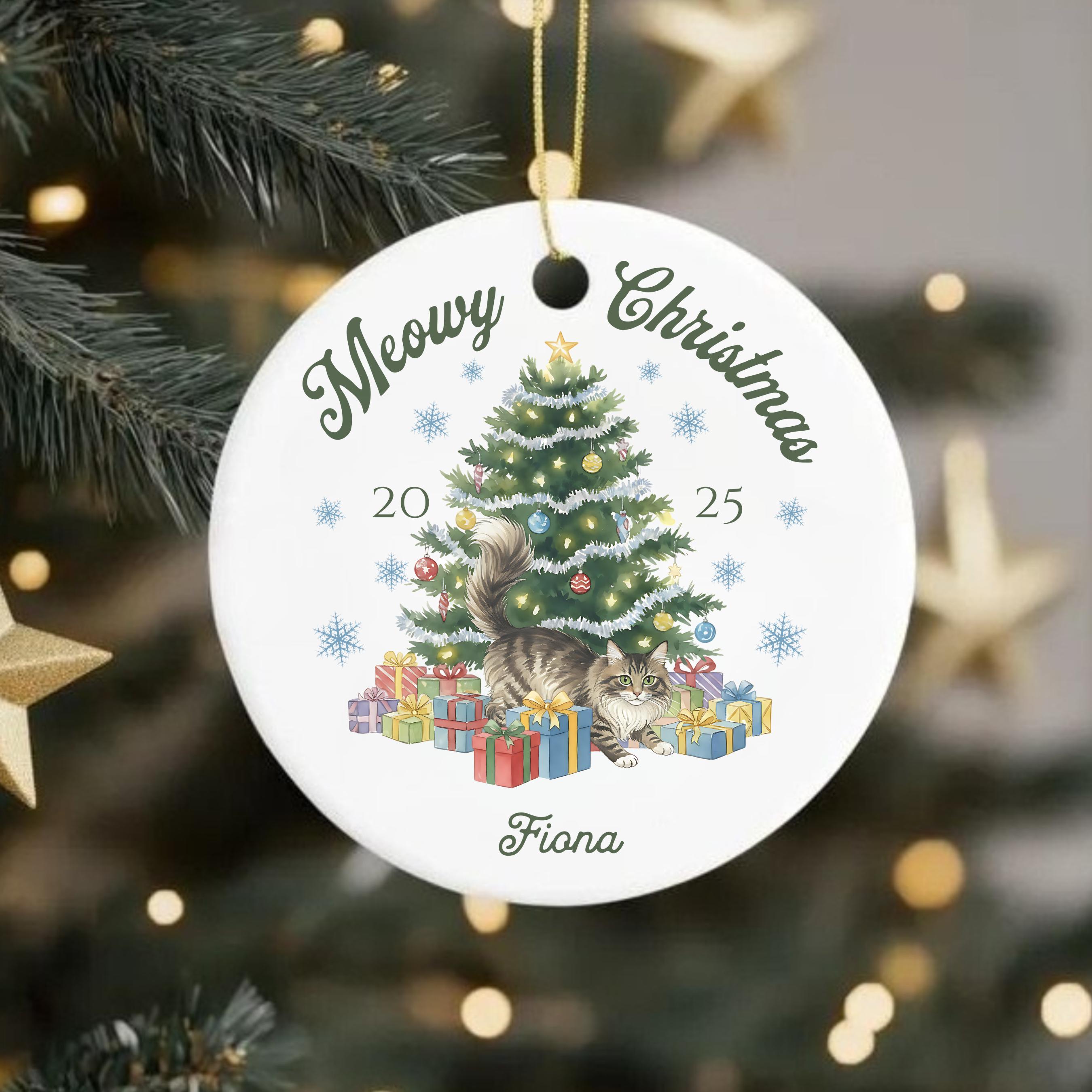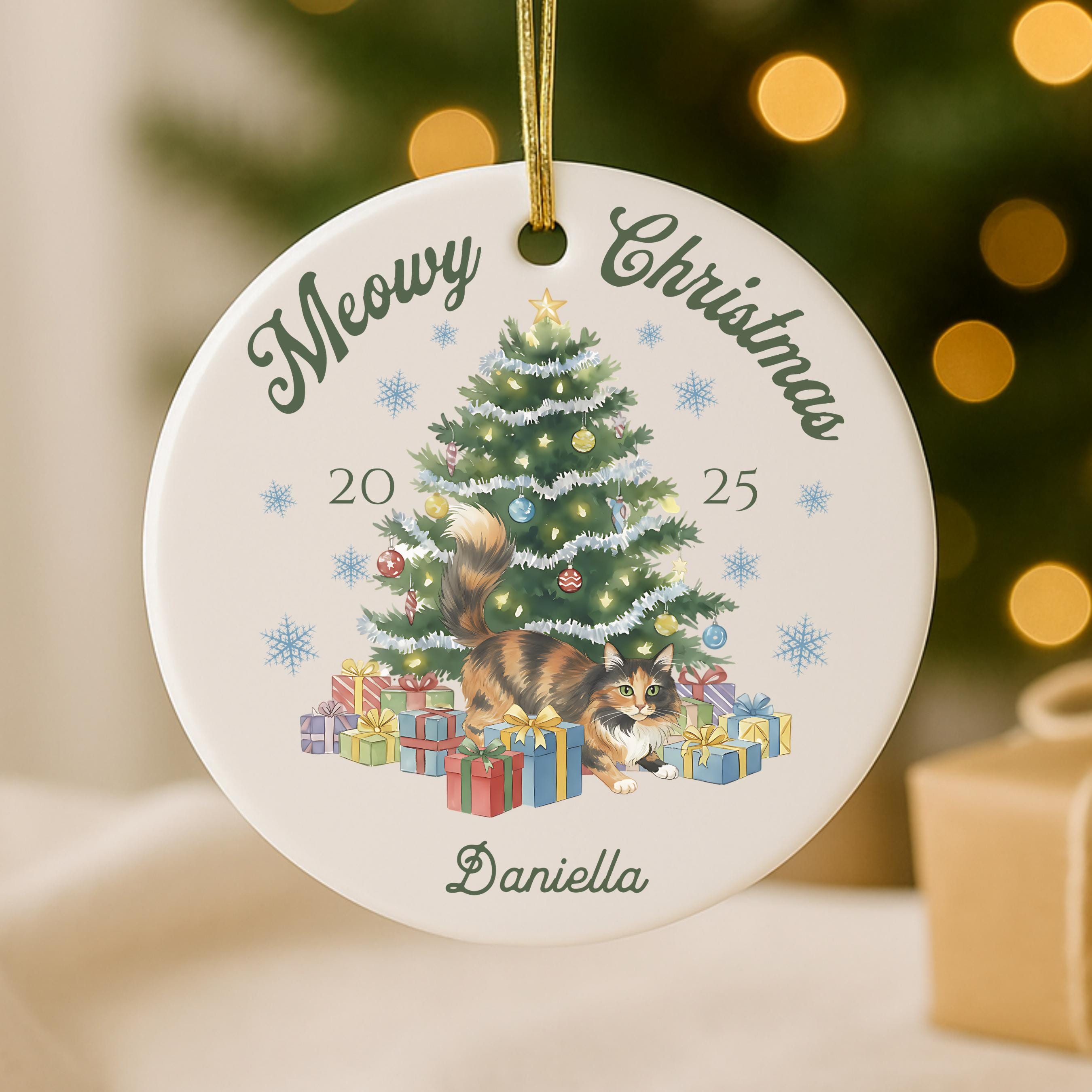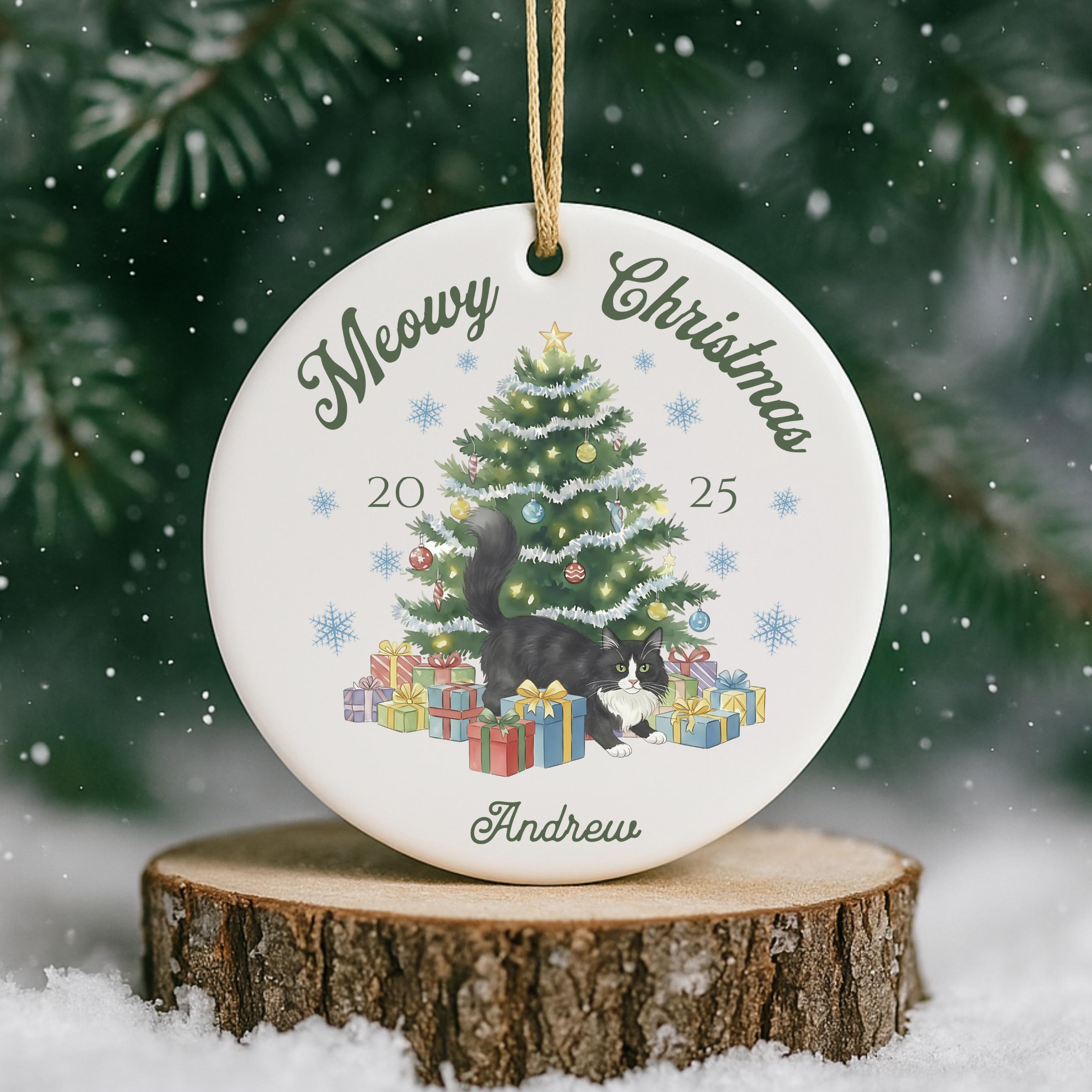 Celebrate your furry friend in festive style with our personalized Meowy Christmas ceramic ornament! Choose your cat type and add a name for the purr-fect holiday keepsake.