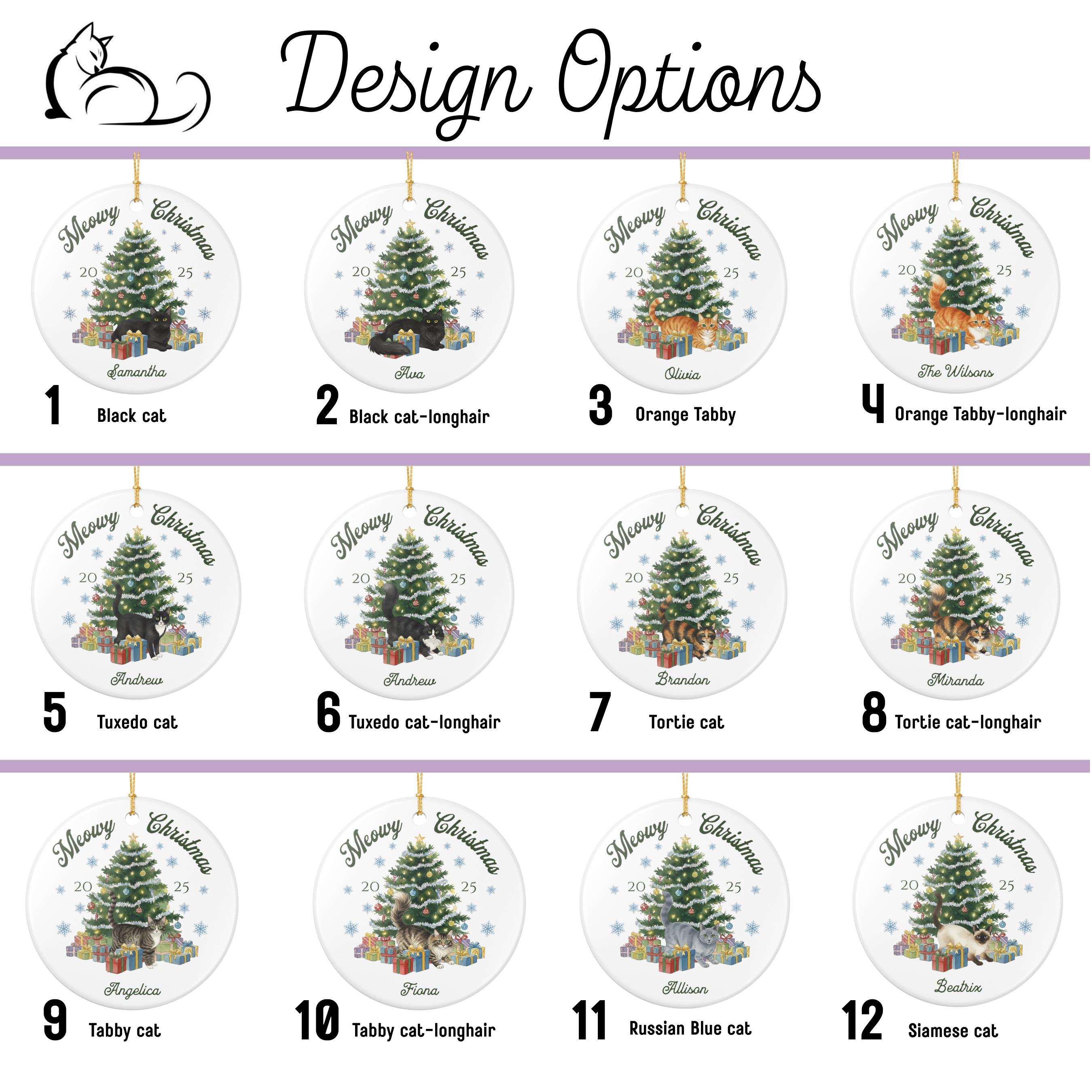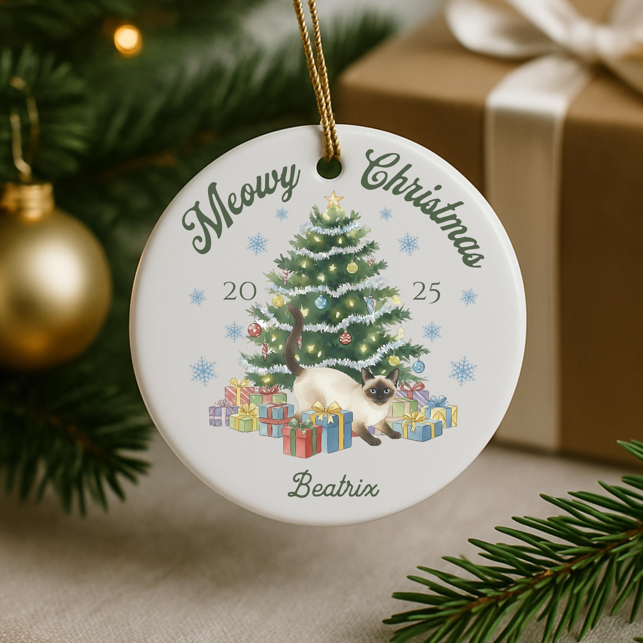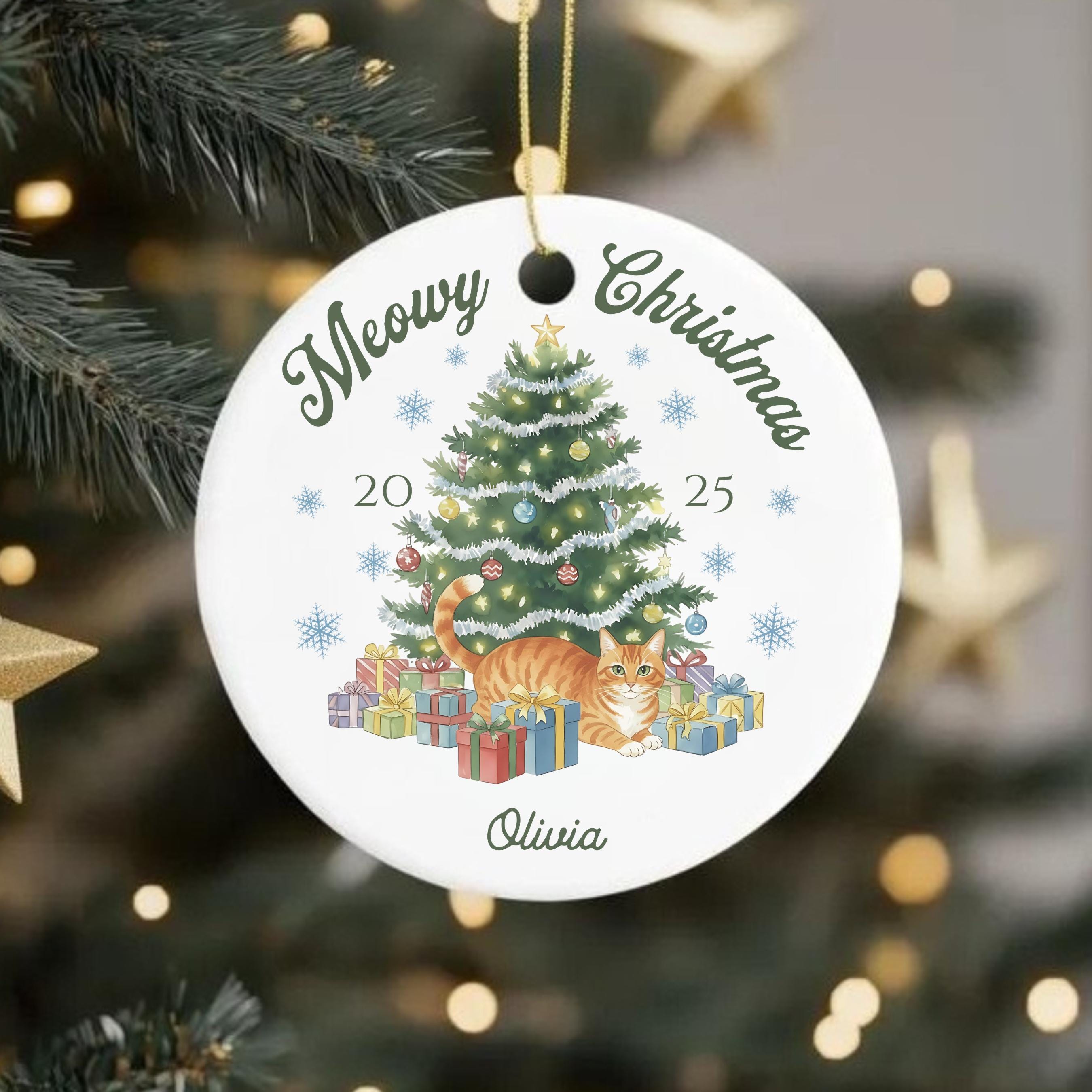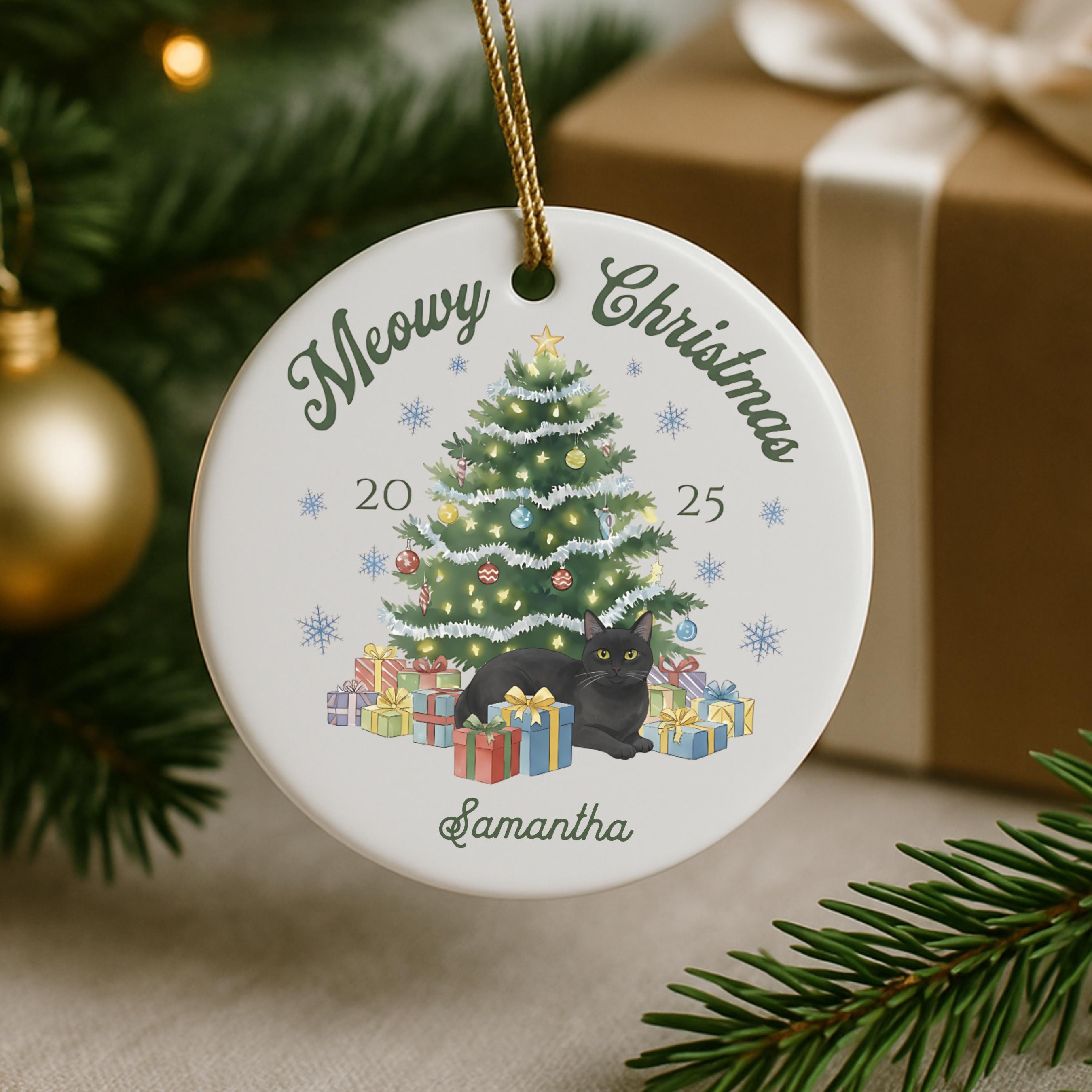 Celebrate your furry friend in festive style with our personalized Meowy Christmas ceramic ornament! Choose your cat type and add a name for the purr-fect holiday keepsake.
