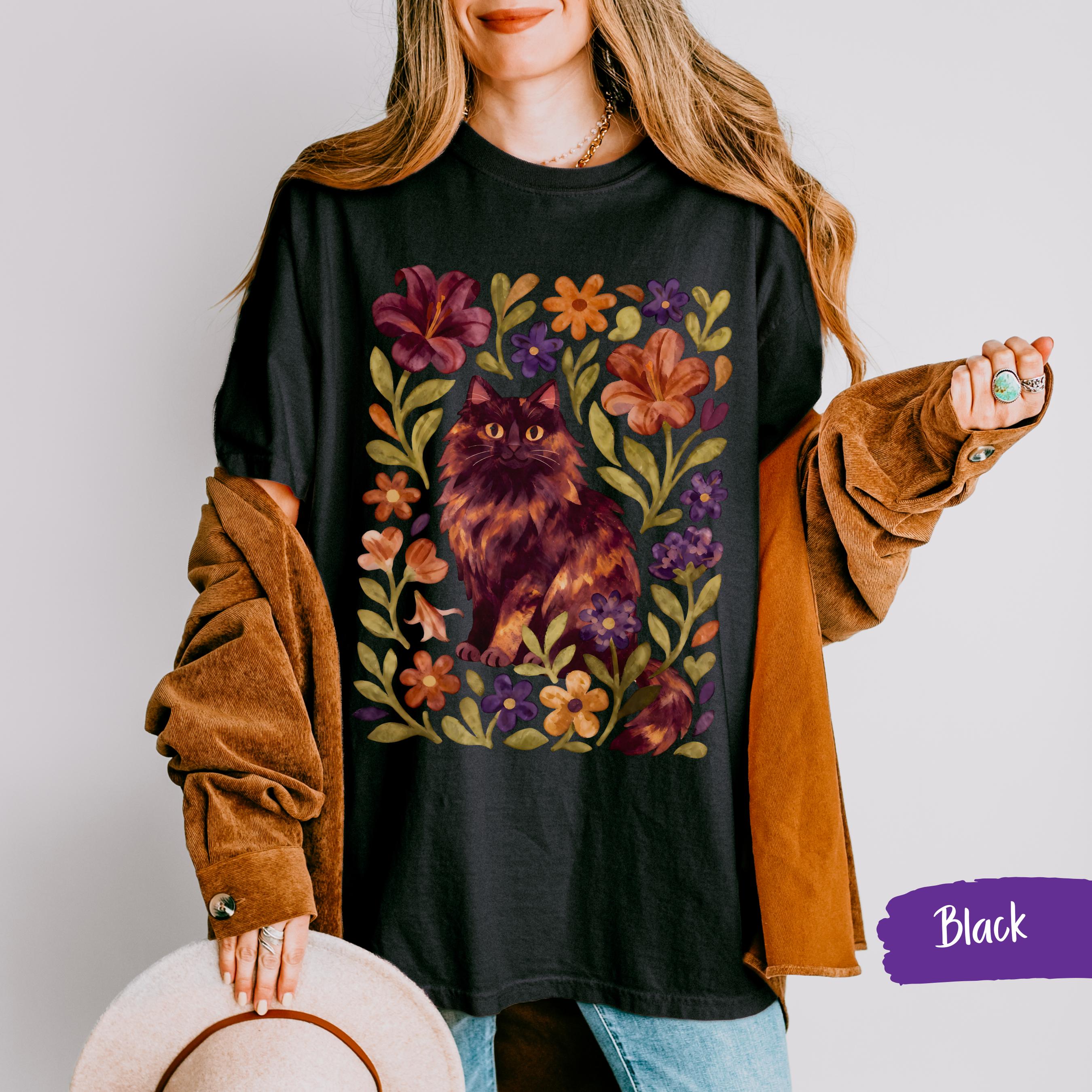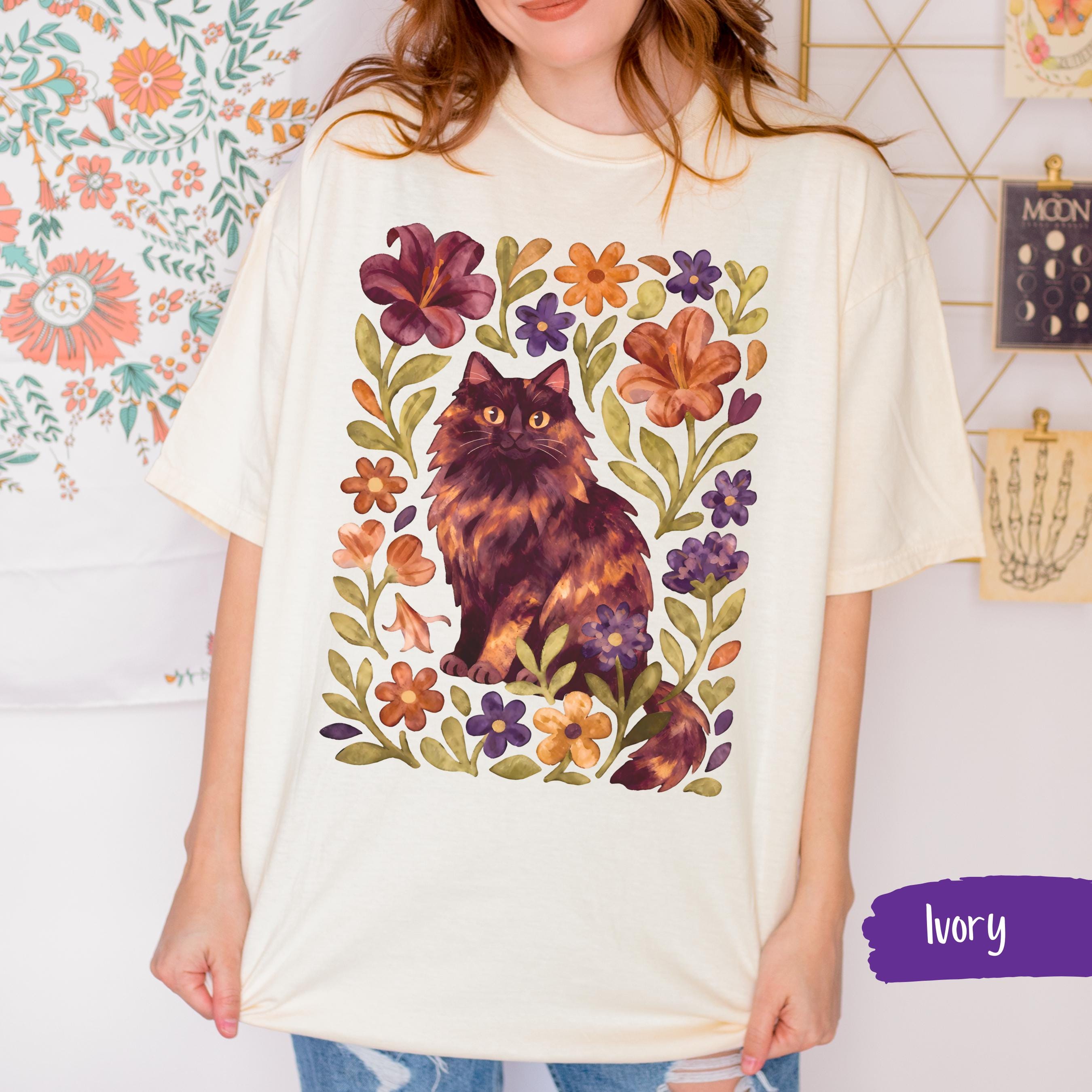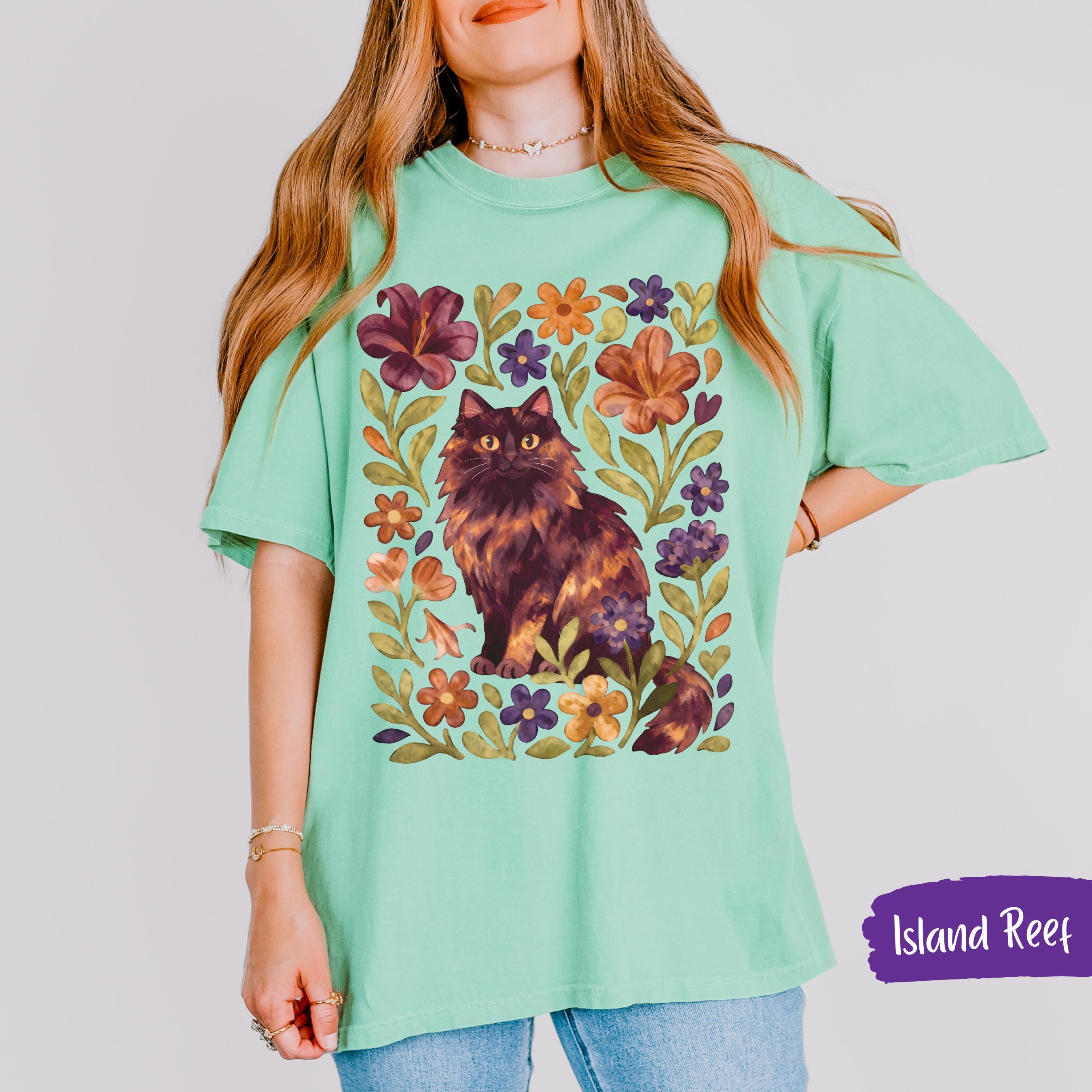 Floral Tortie Kitty Shirt, Comfort Colors Tee, Boho Tortoiseshell Cat Lover Gift