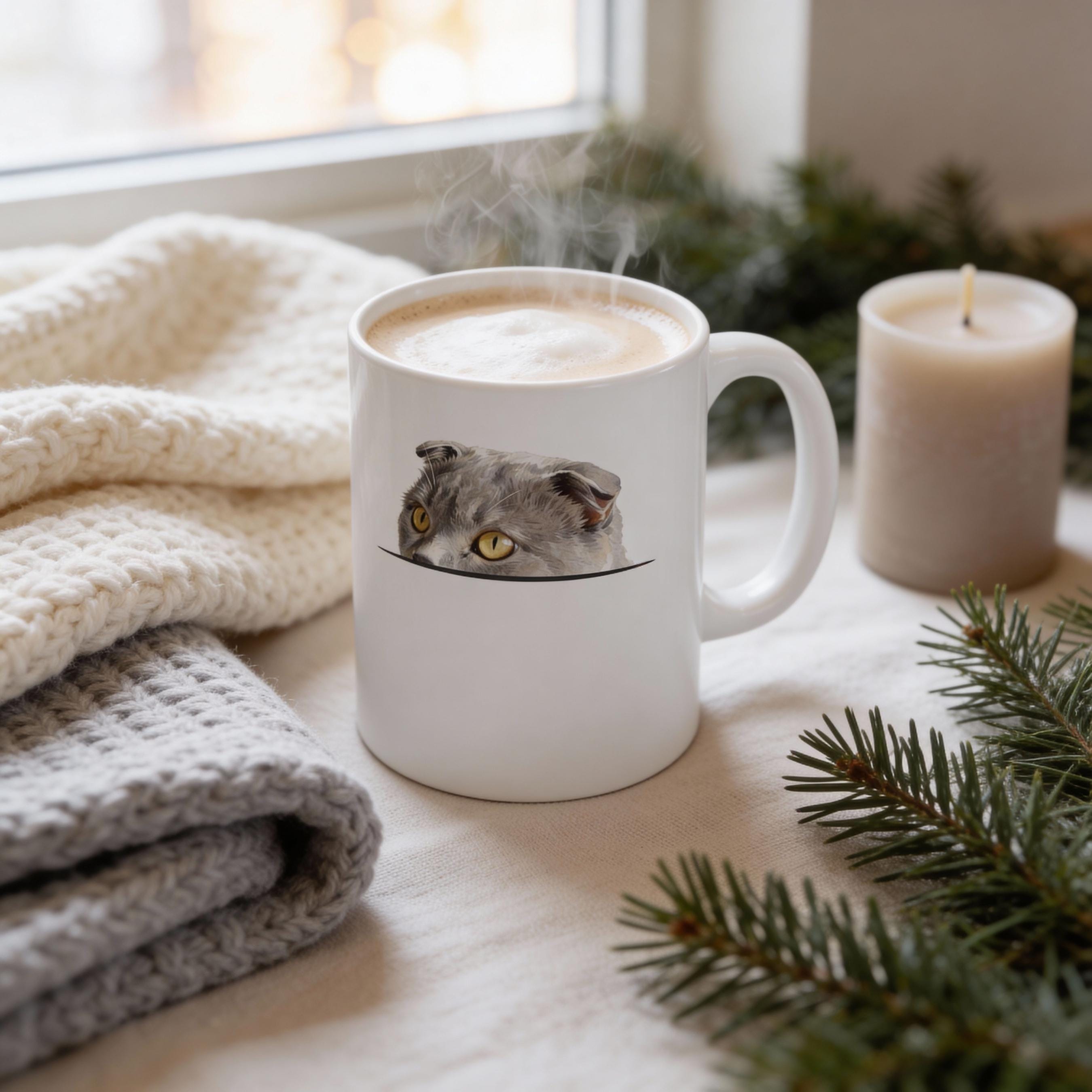 Peeking Scottish Fold Cat Mug: Cat Lover Coffee Gift