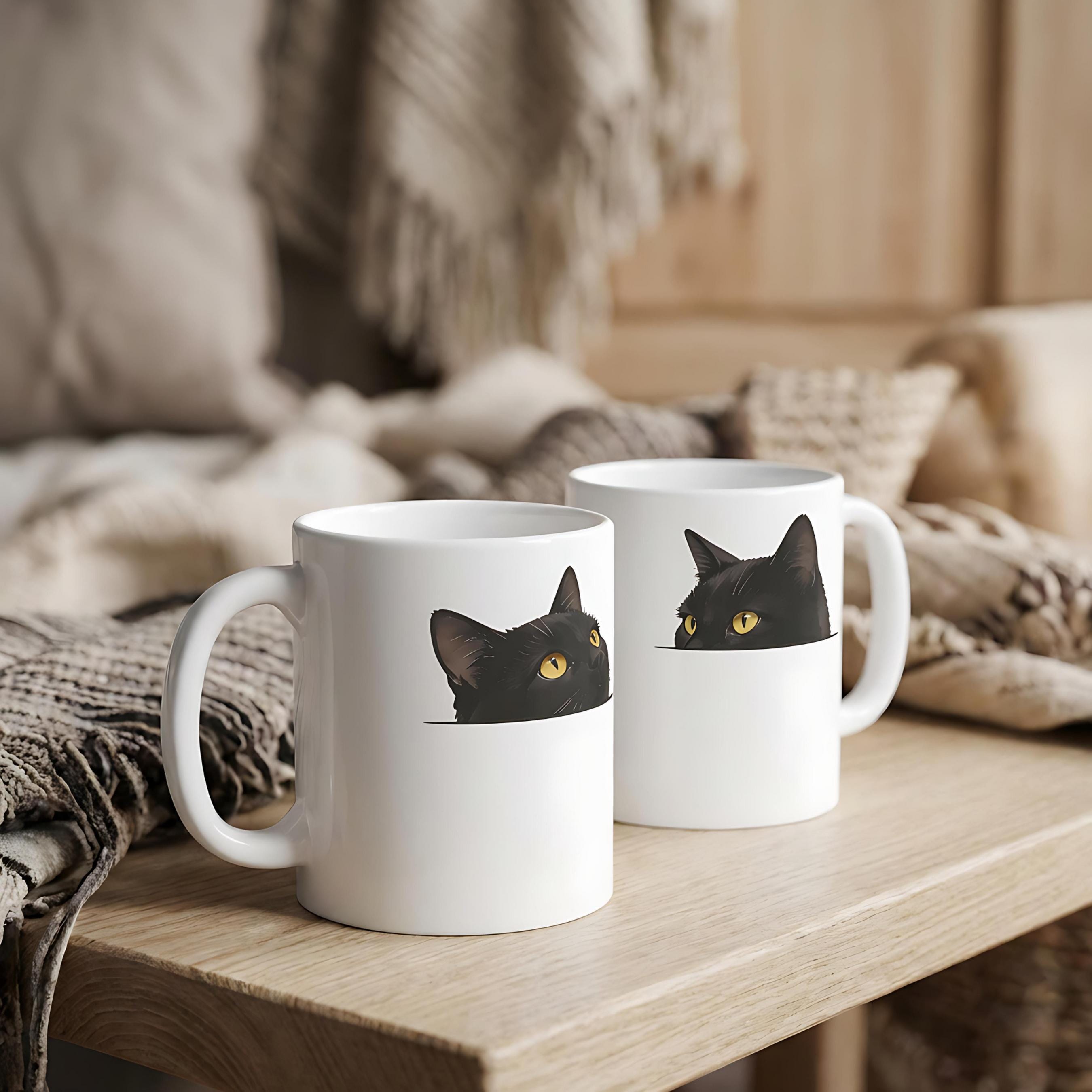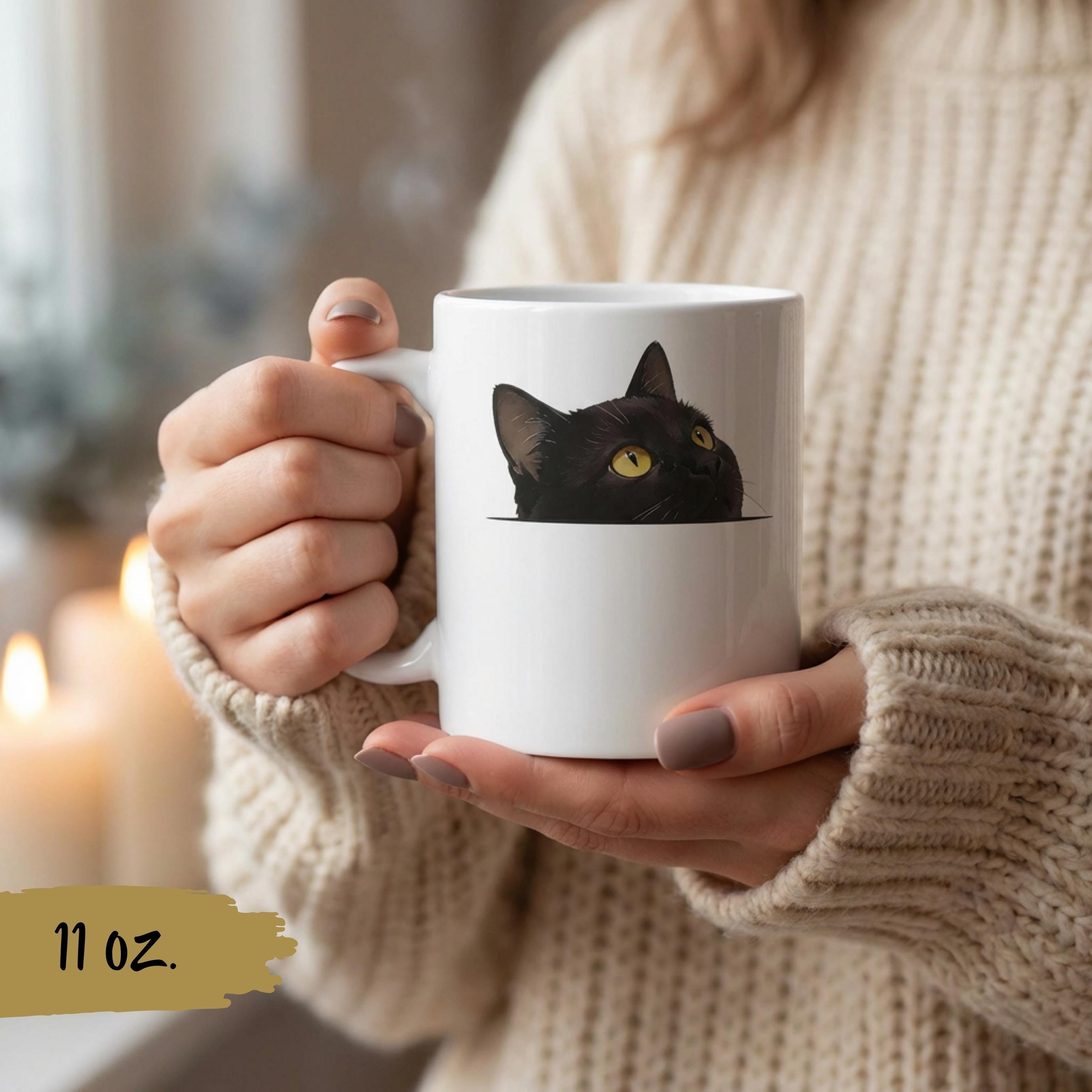 This peeking cat ceramic mug features a cute, minimalist design full of personality, making it the perfect coffee mug for cat lovers who appreciate subtle humor.
