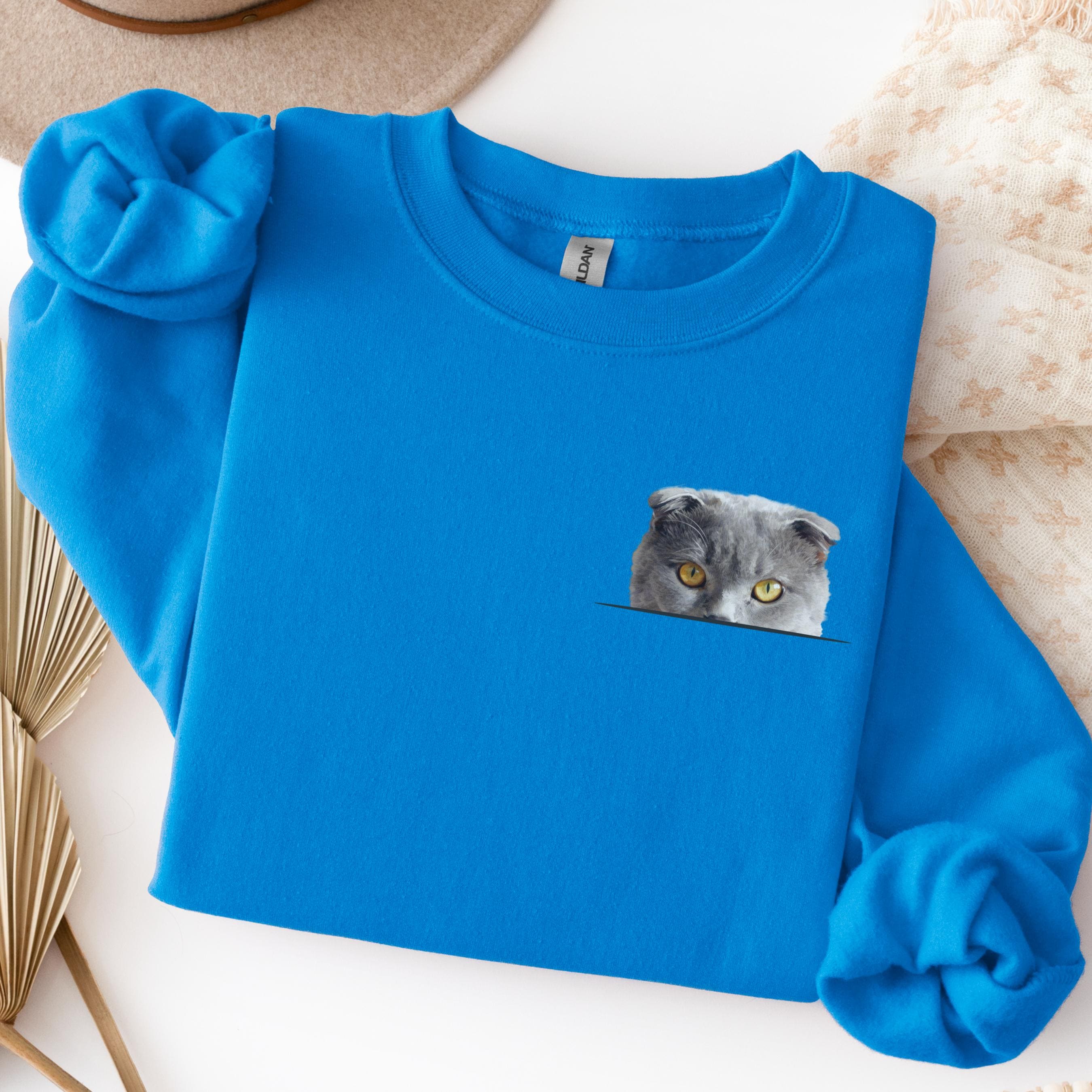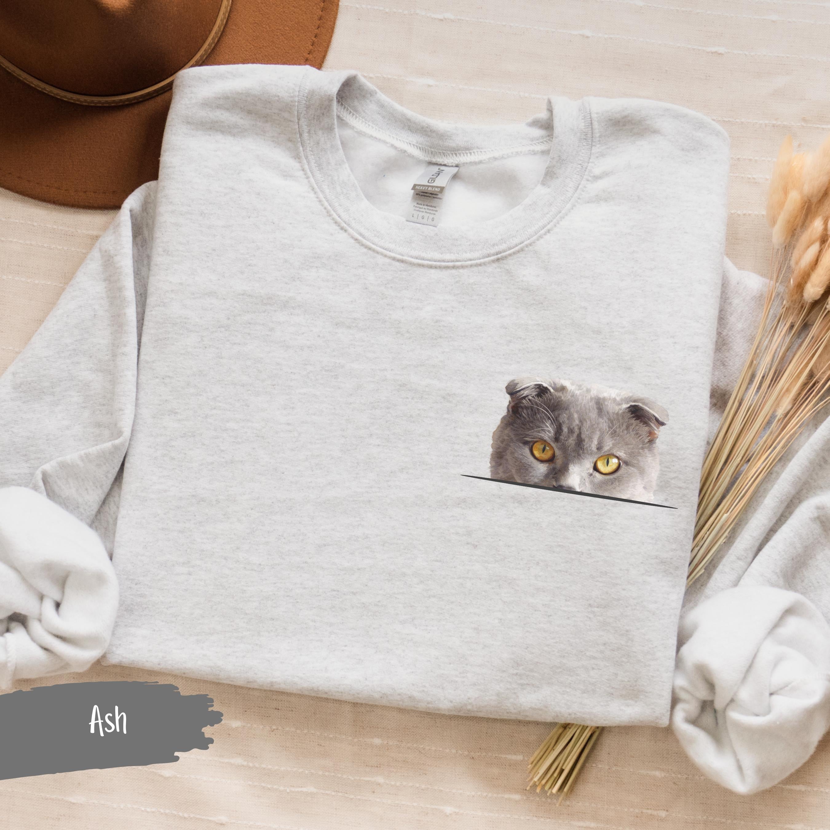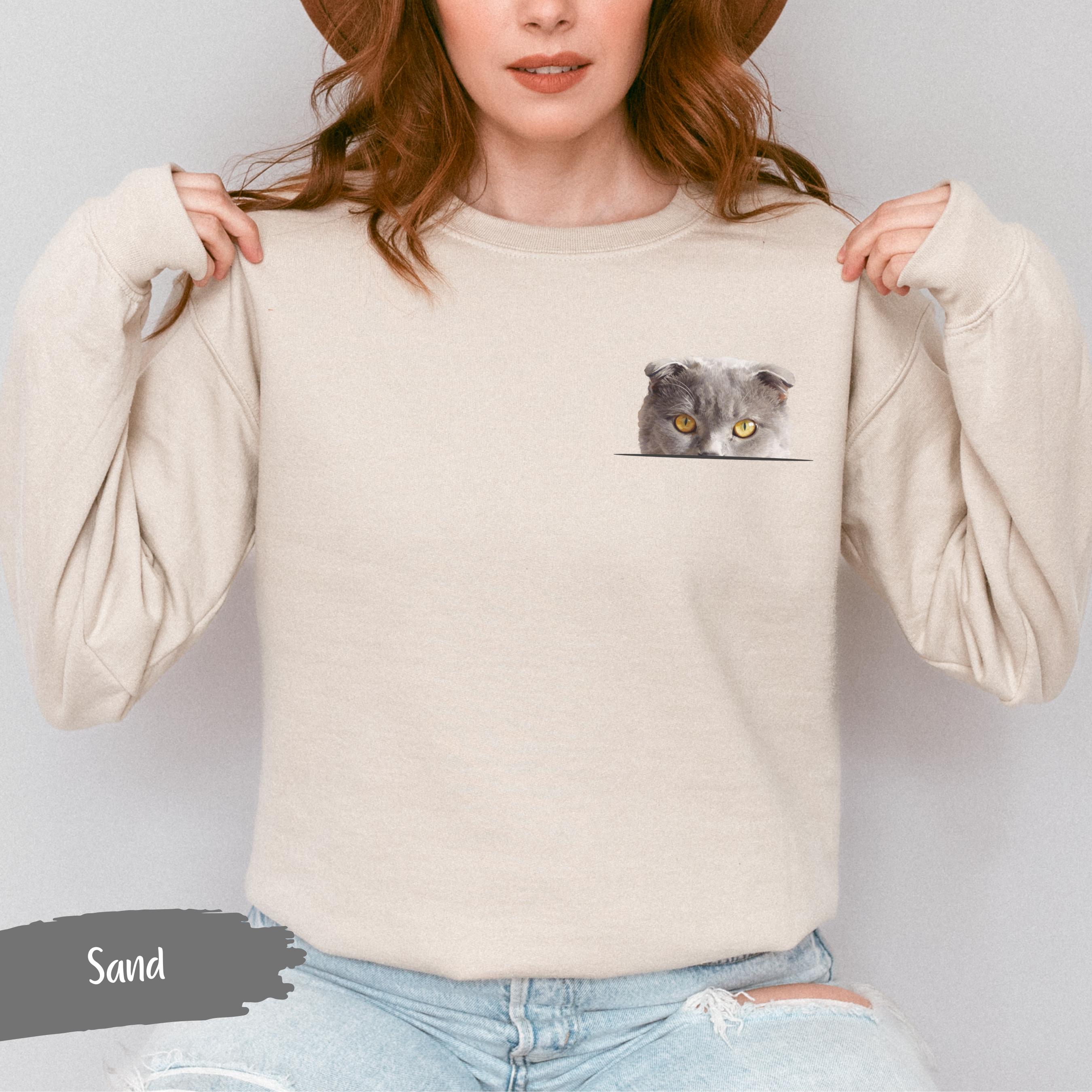 Peeking Scottish Fold Cat Sweatshirt, Pocket Design, Cat Lover Gift