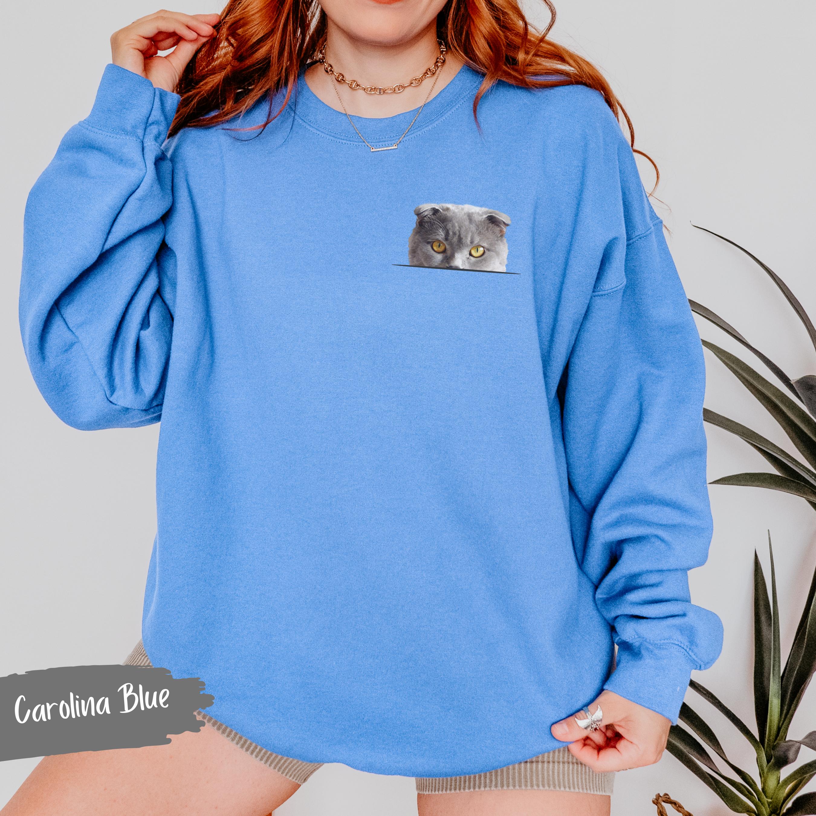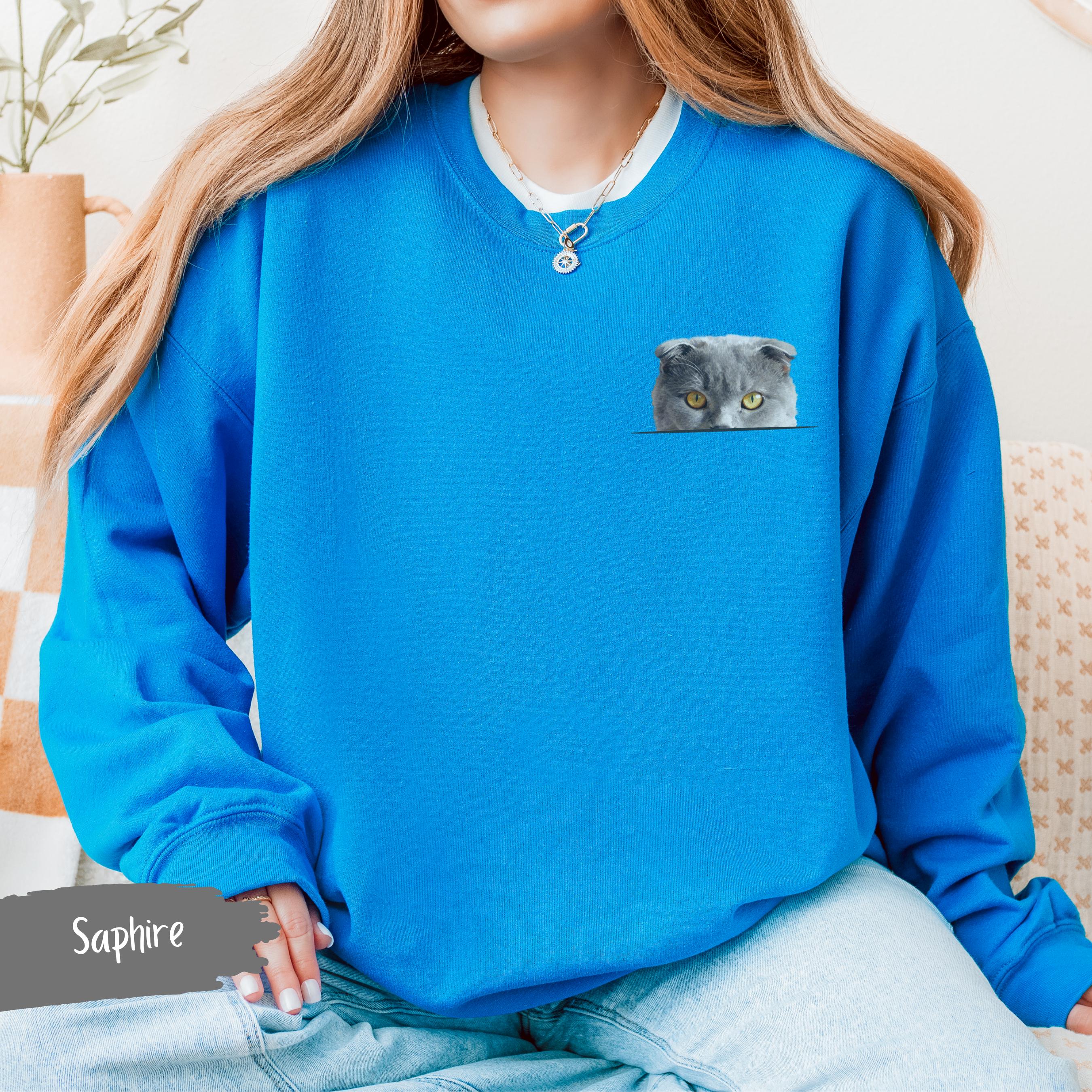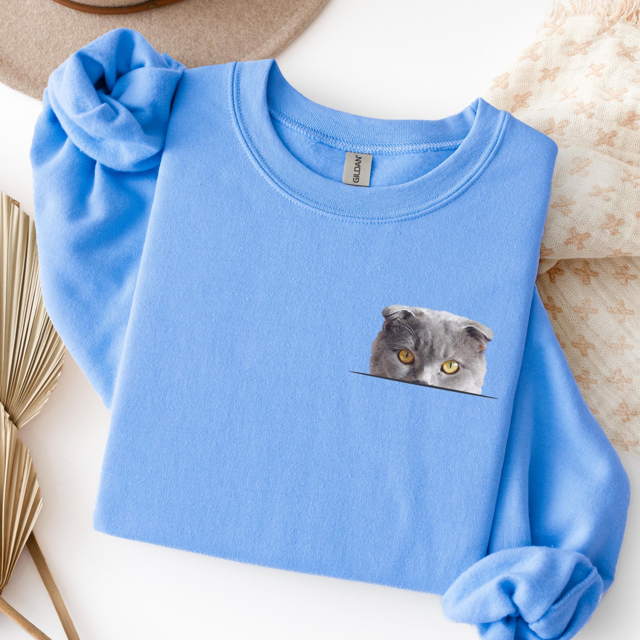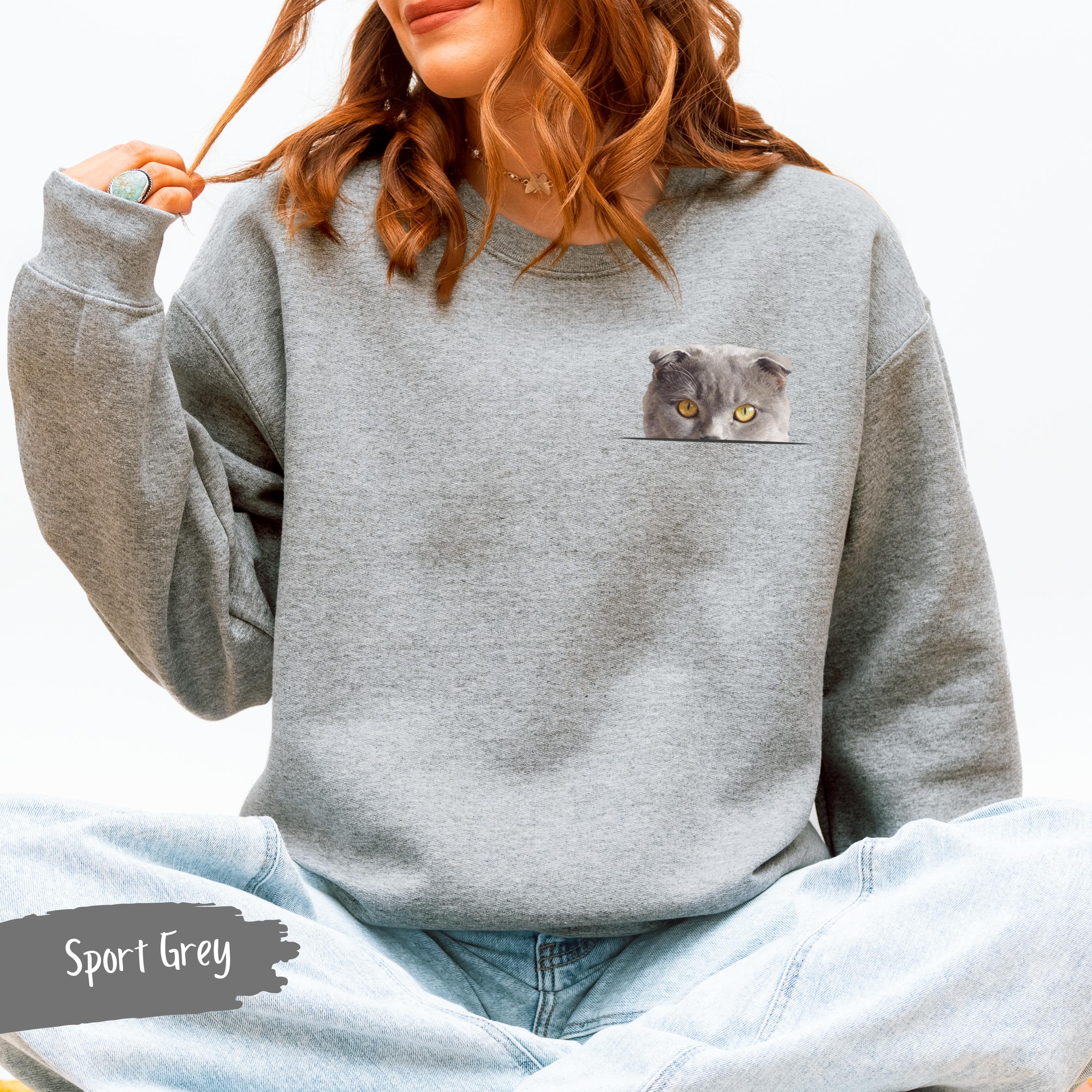 Peeking Scottish Fold Cat Sweatshirt, Pocket Design, Cat Lover Gift