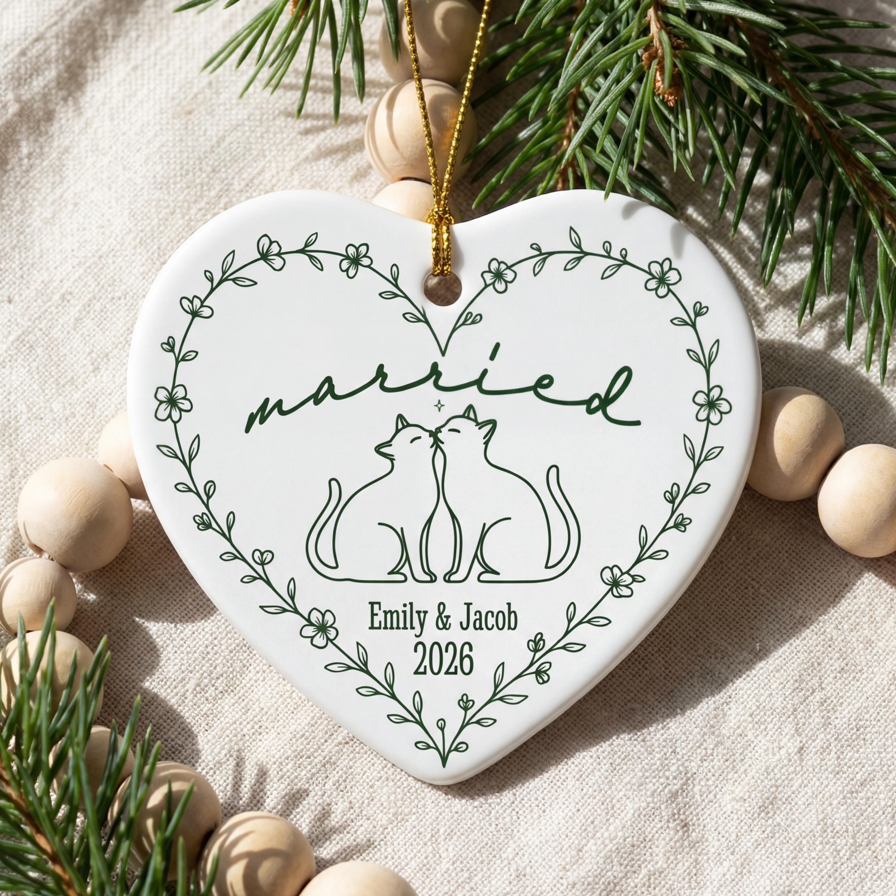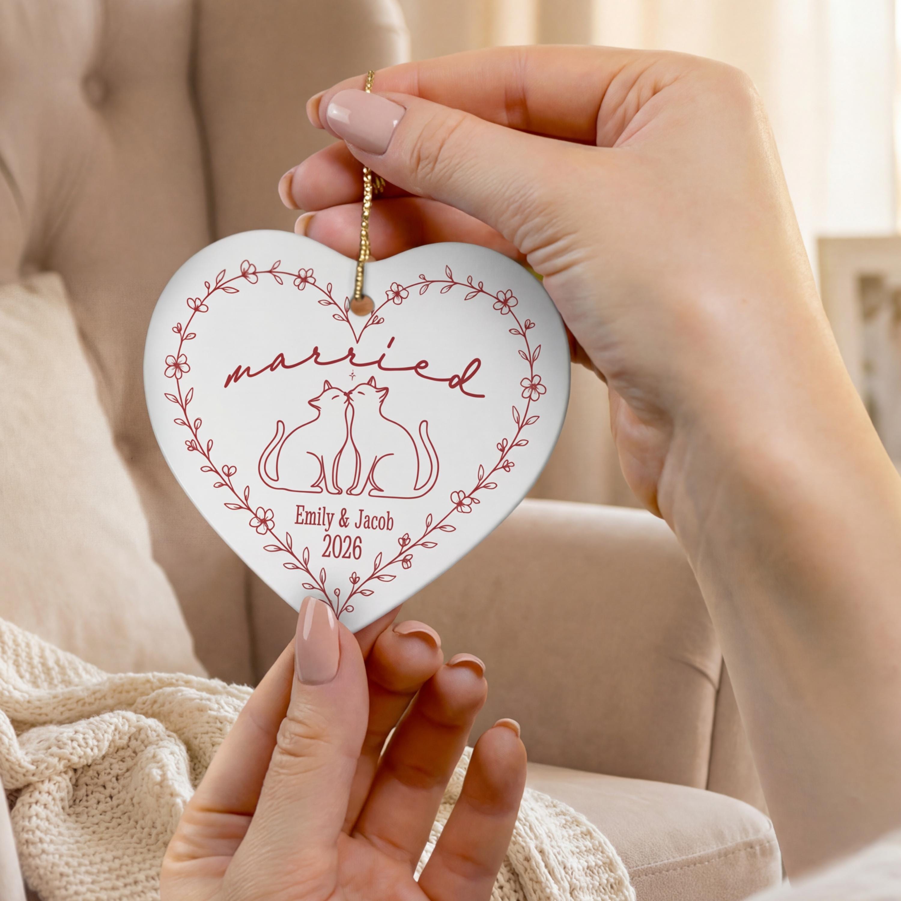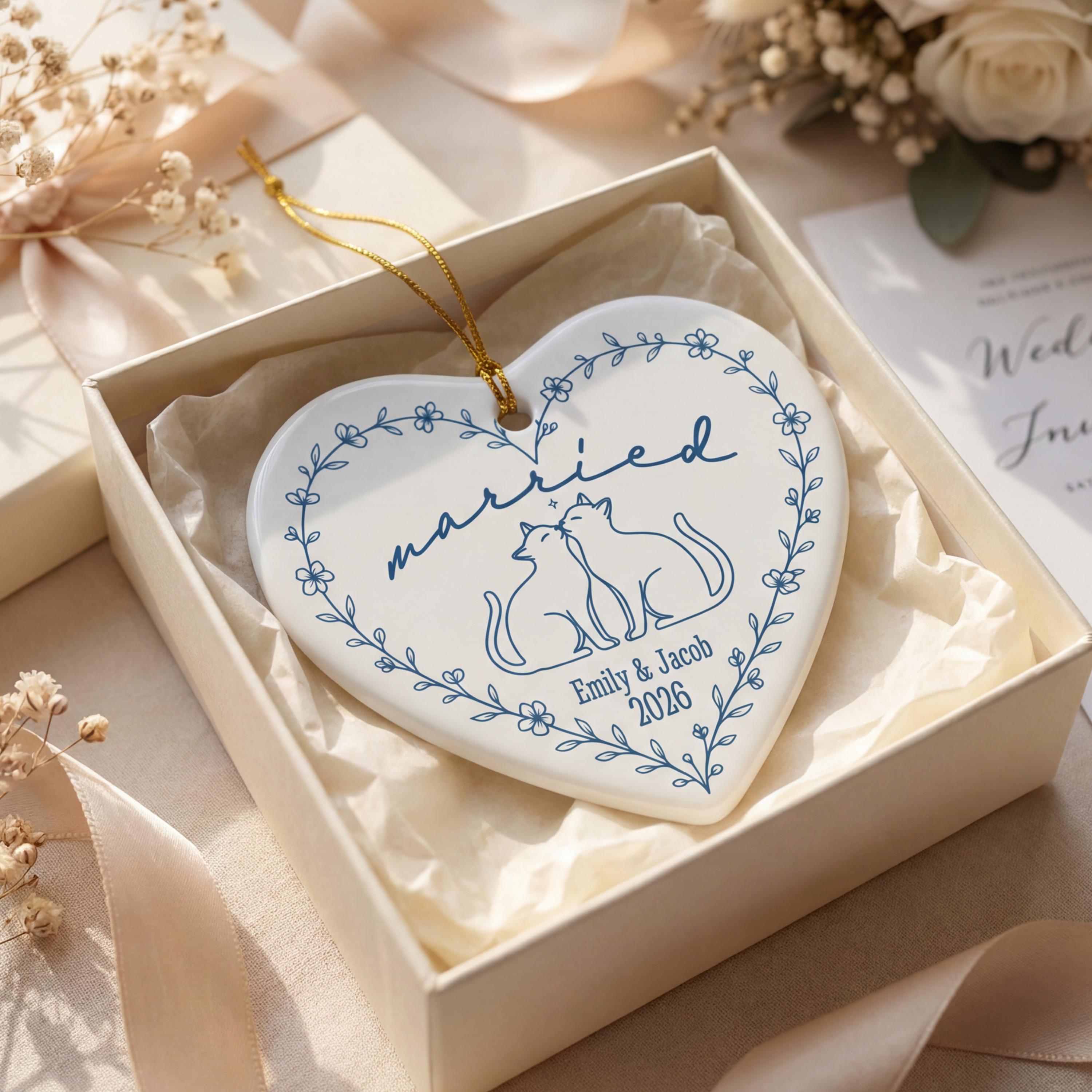 A meaningful wedding keepsake for any cat lover couple, this personalized ceramic ornament celebrates your forever — and your shared love of cats. Sweet, simple, and timeless, it’s the perfect way to honor your marriage in a way that feels uniquely you.