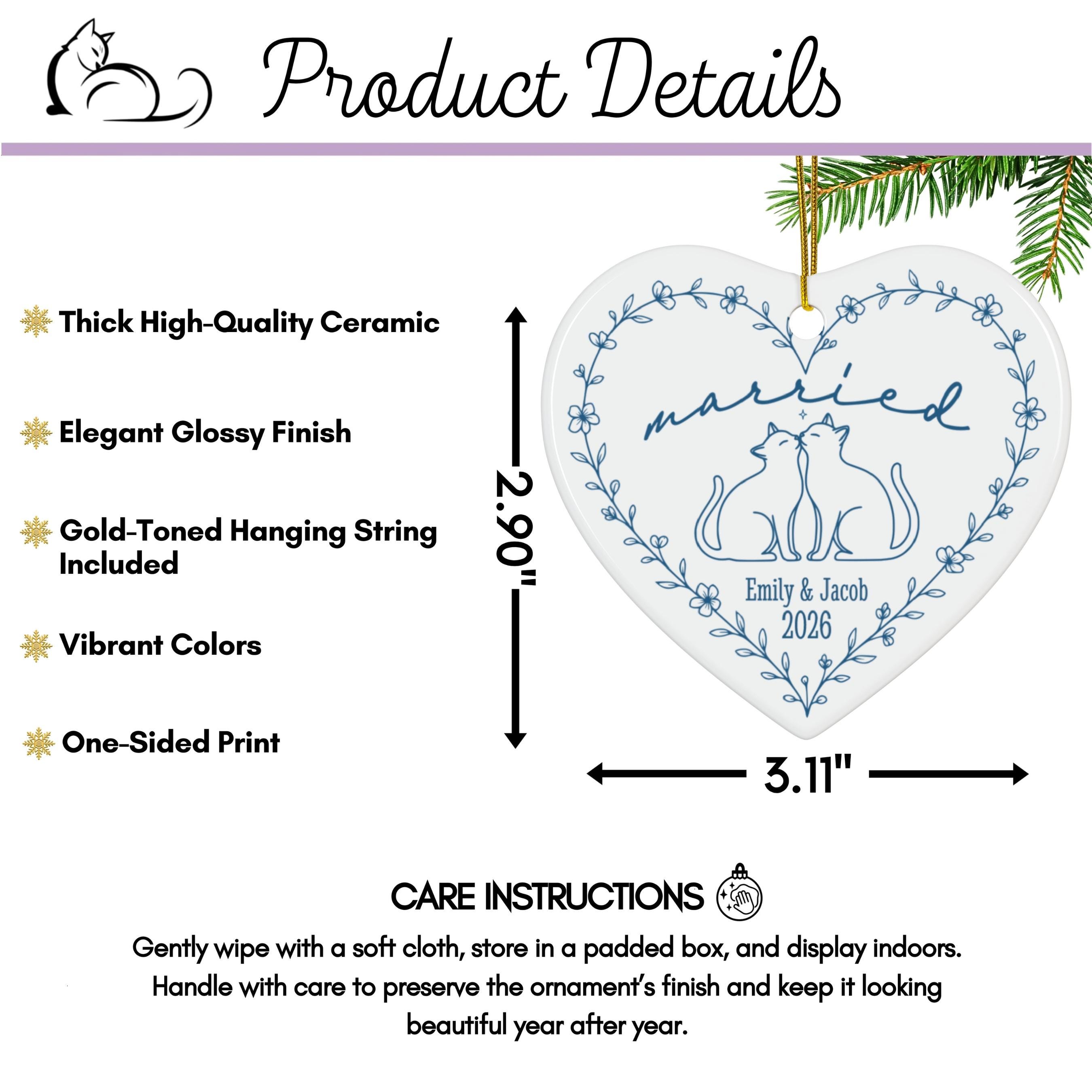 Personalized Cat Couple Wedding Ornament, Cat Lover Keepsake