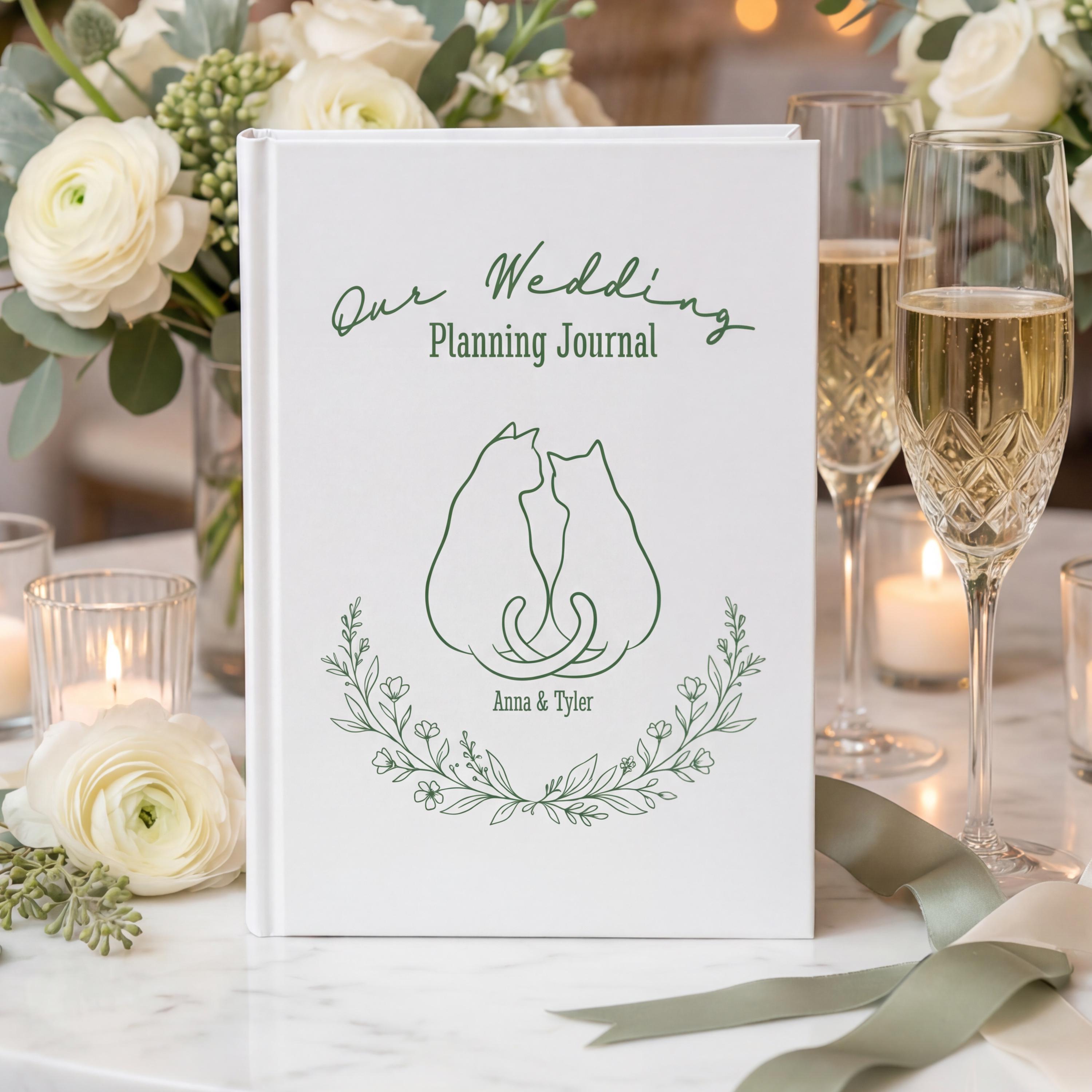 This personalized cat lover wedding planner journal is the perfect place to organize your big day while celebrating the love you share — for each other and your cats.
