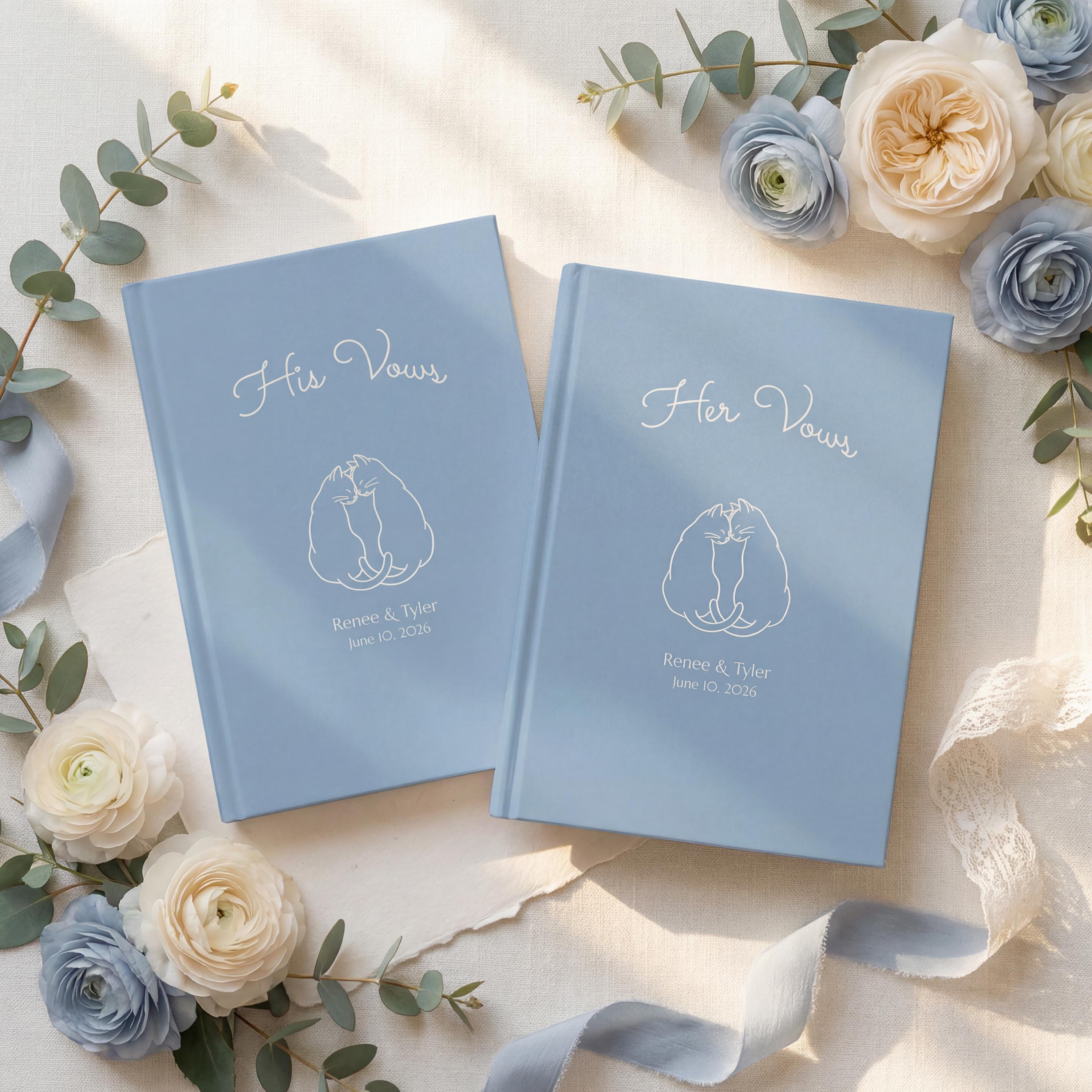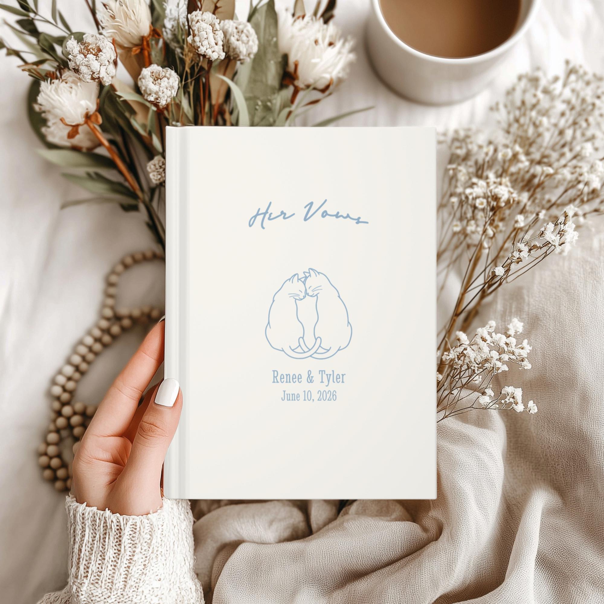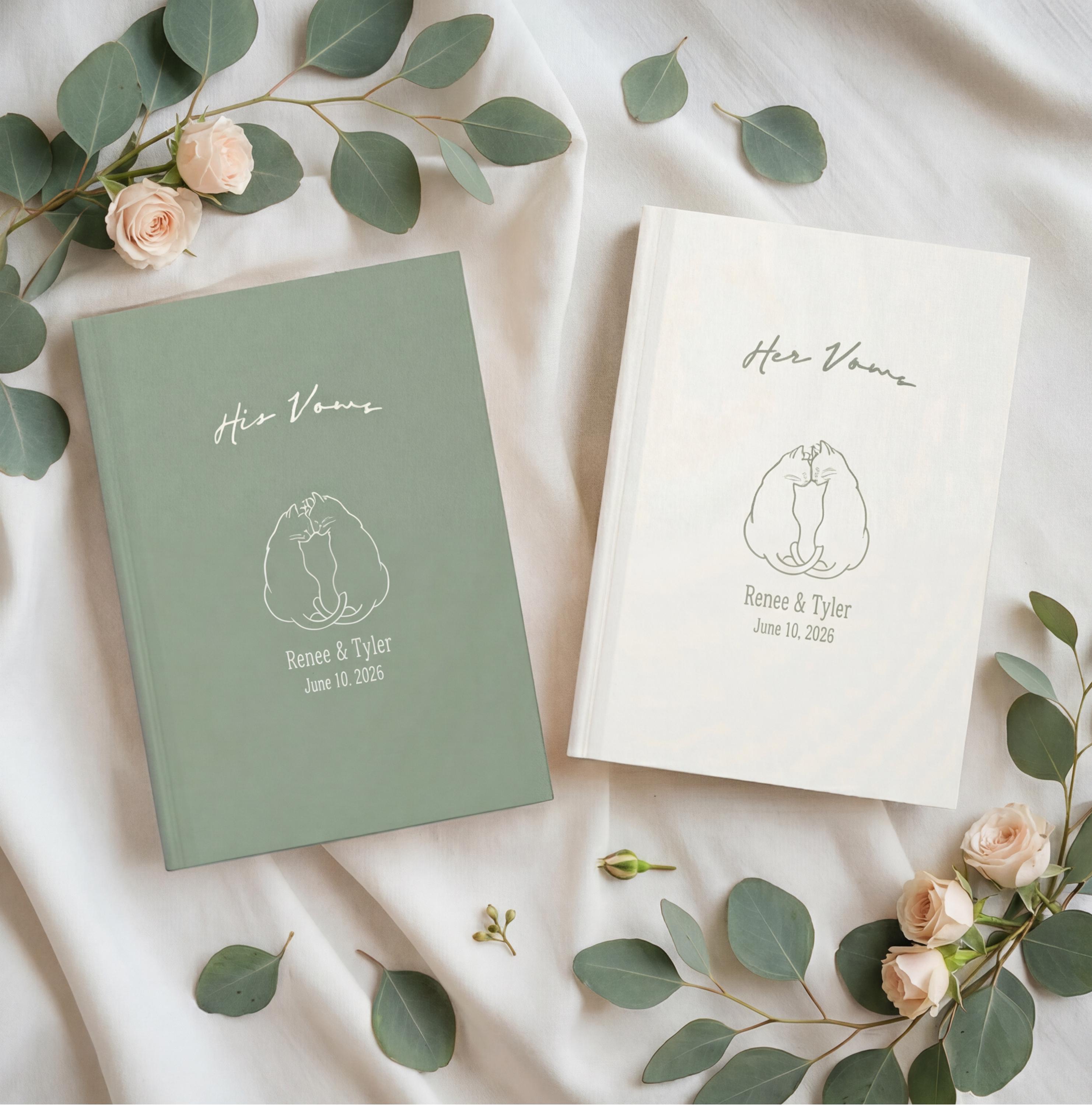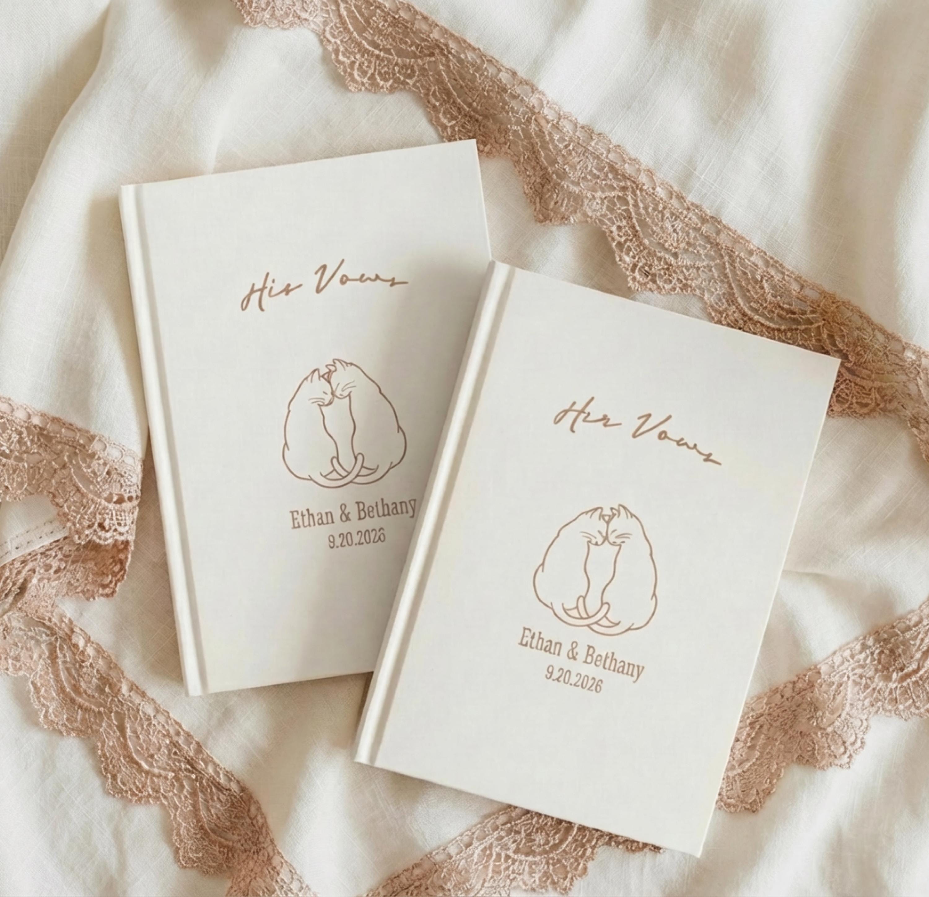 Personalized His and Her Wedding Vow Books, Cat Couple Ceremony Keepsake Journals