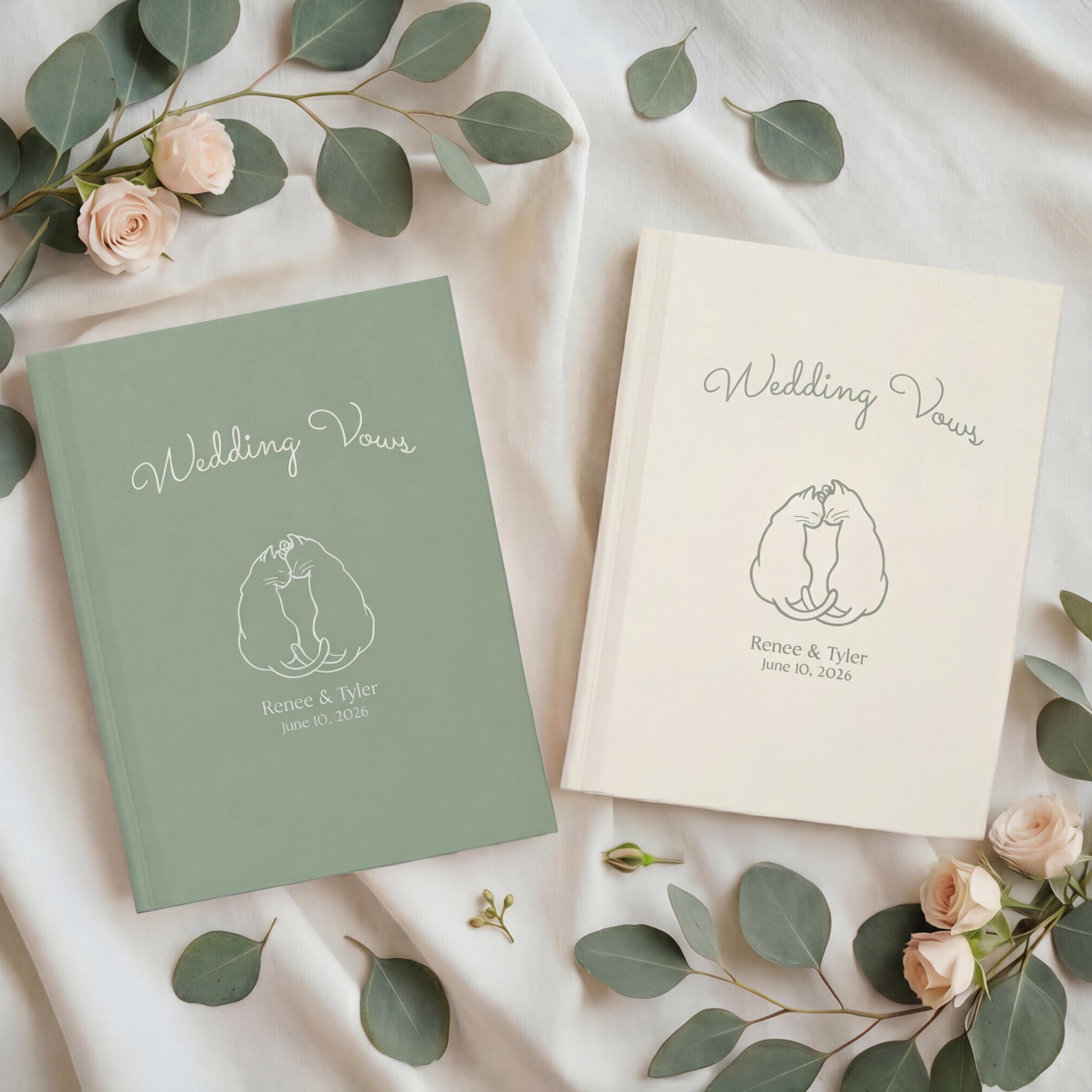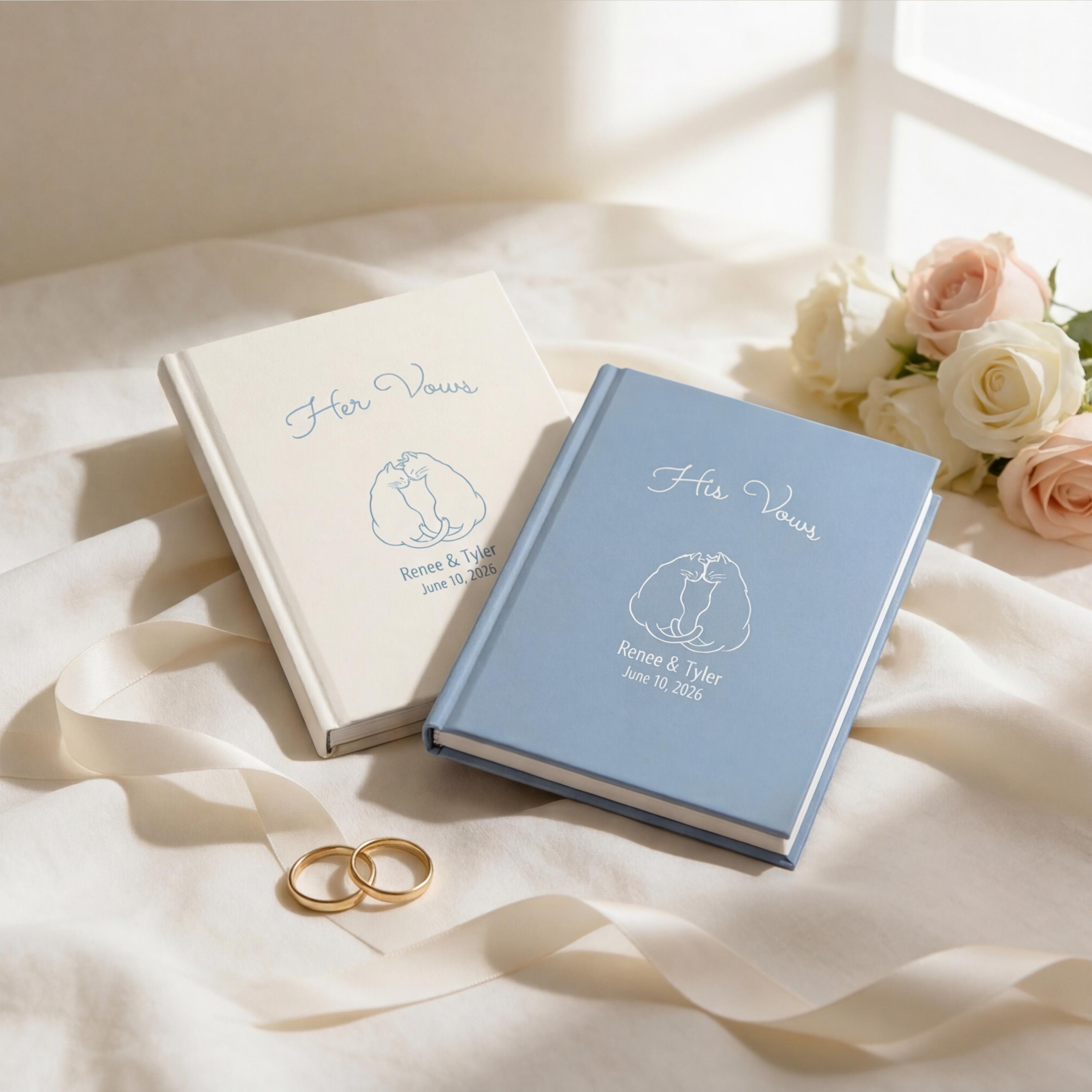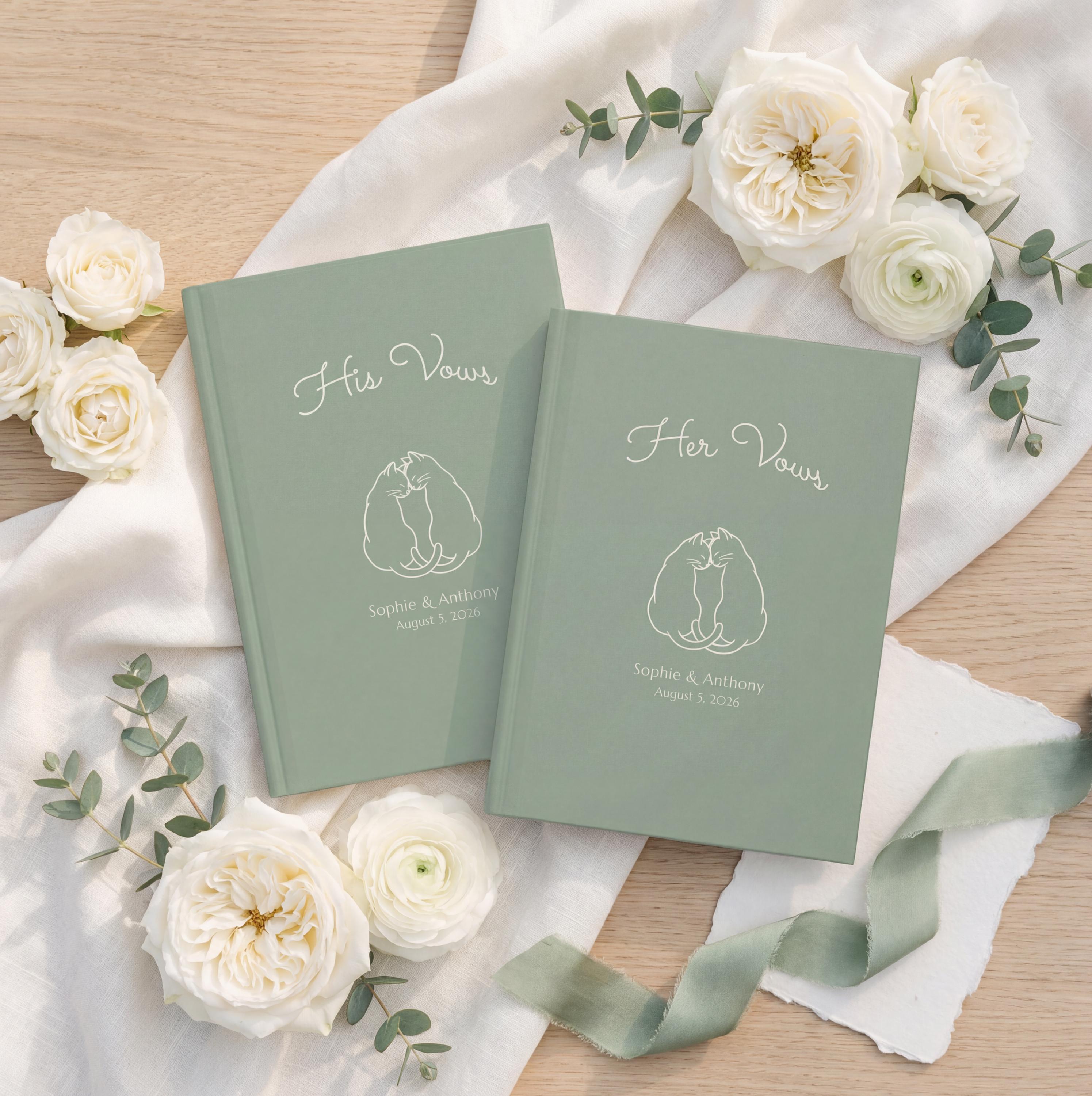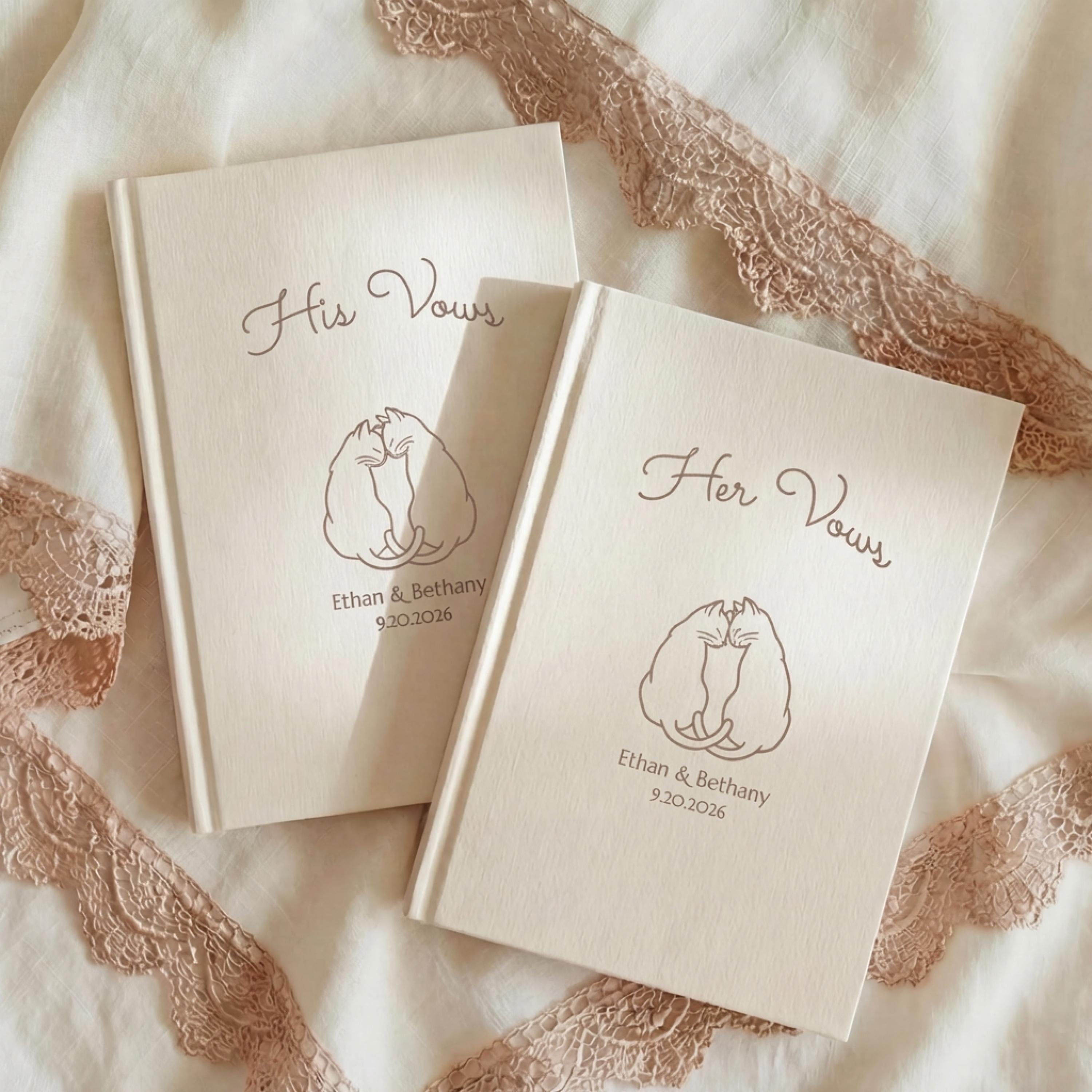 Personalized His and Her Wedding Vow Books, Cat Couple Ceremony Keepsake Journals
