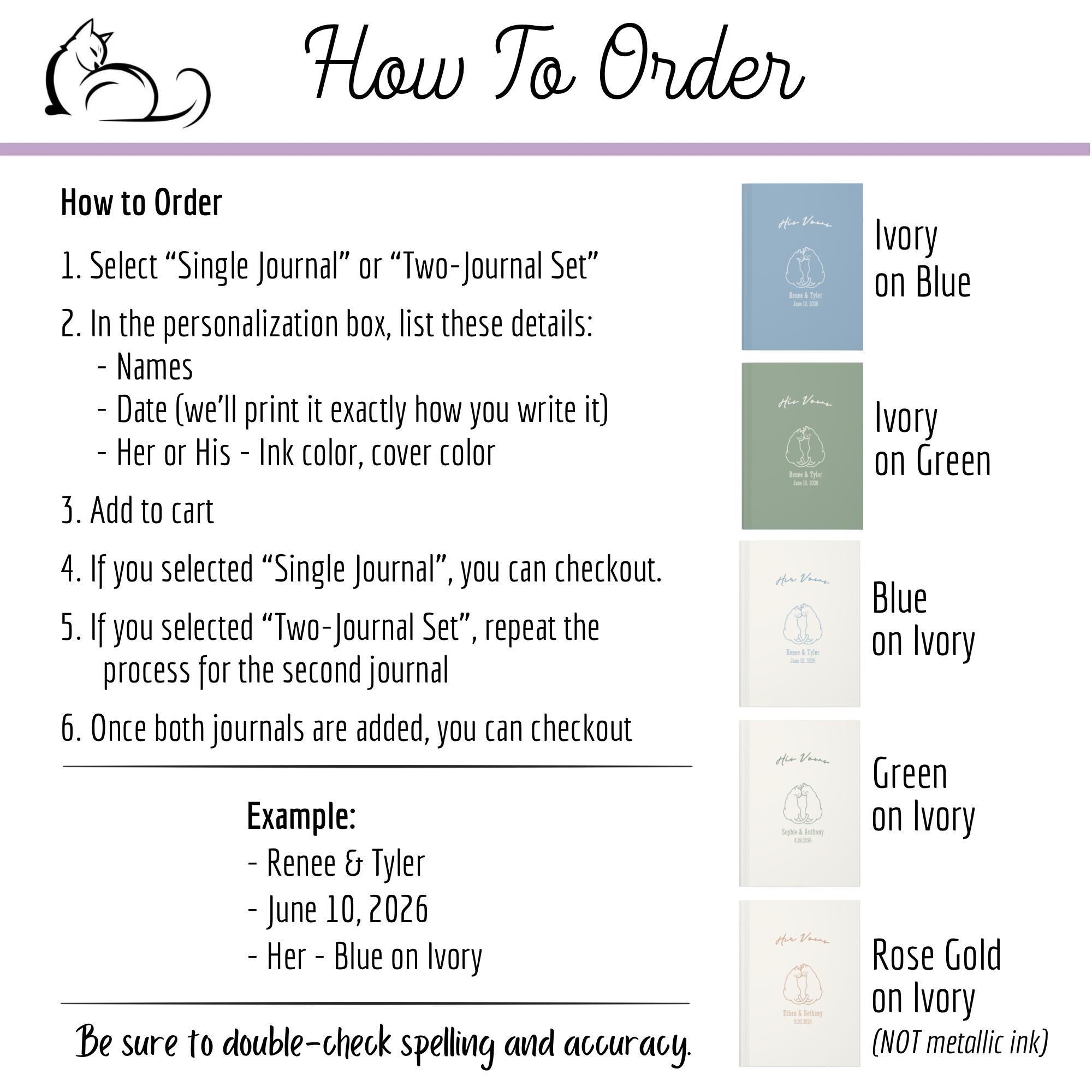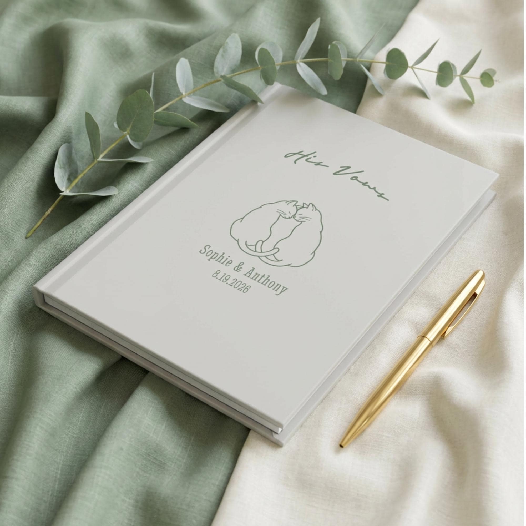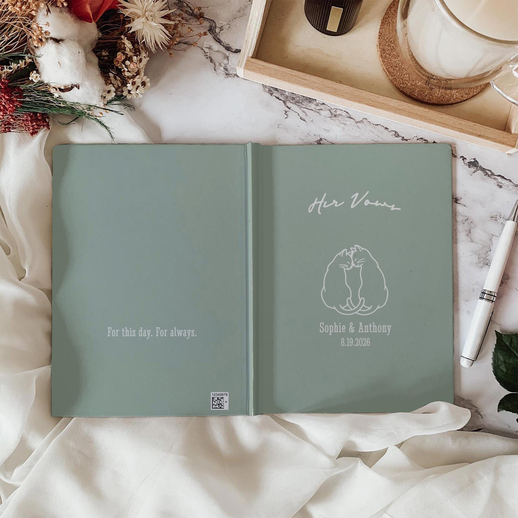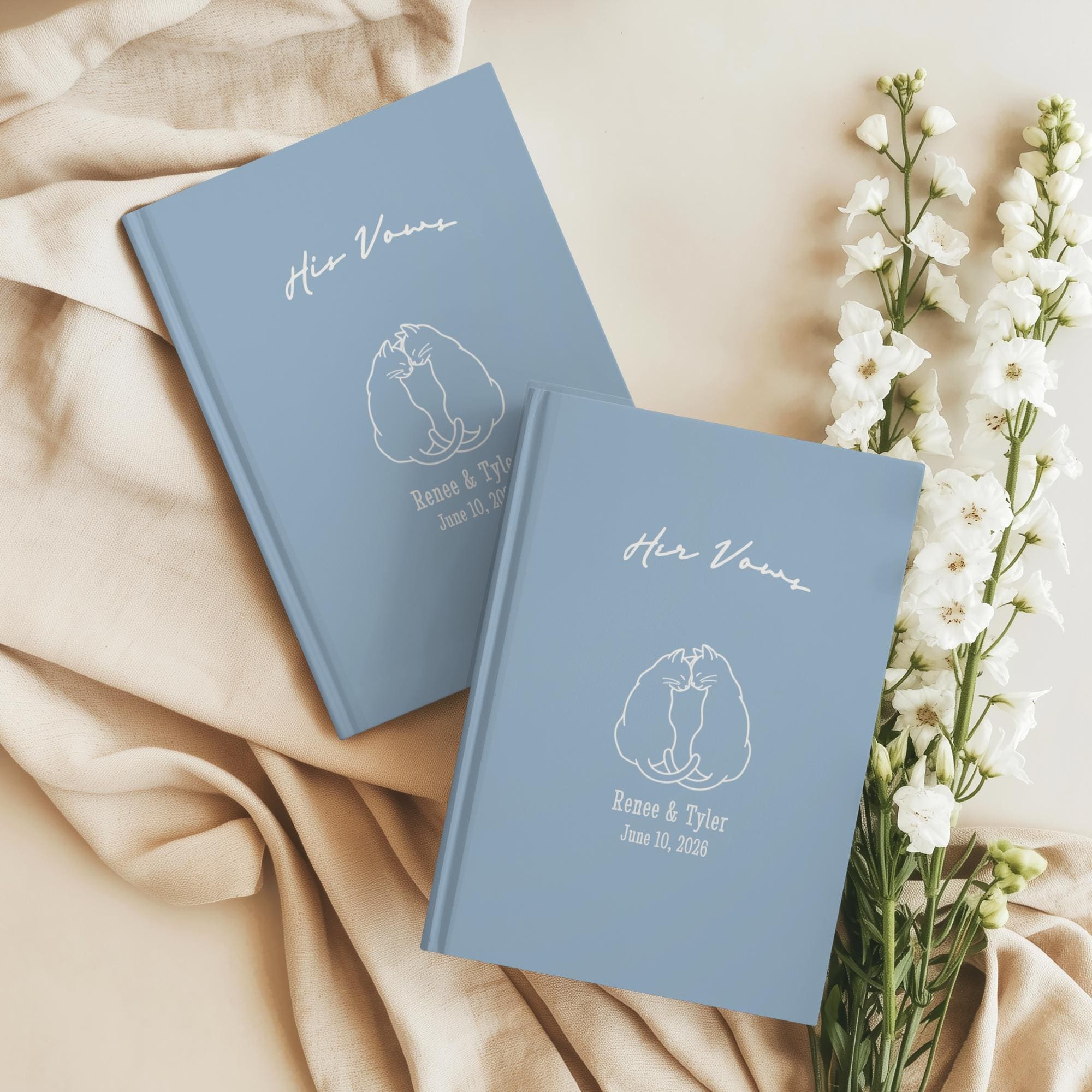 Personalized His and Her Wedding Vow Books, Cat Couple Ceremony Keepsake Journals