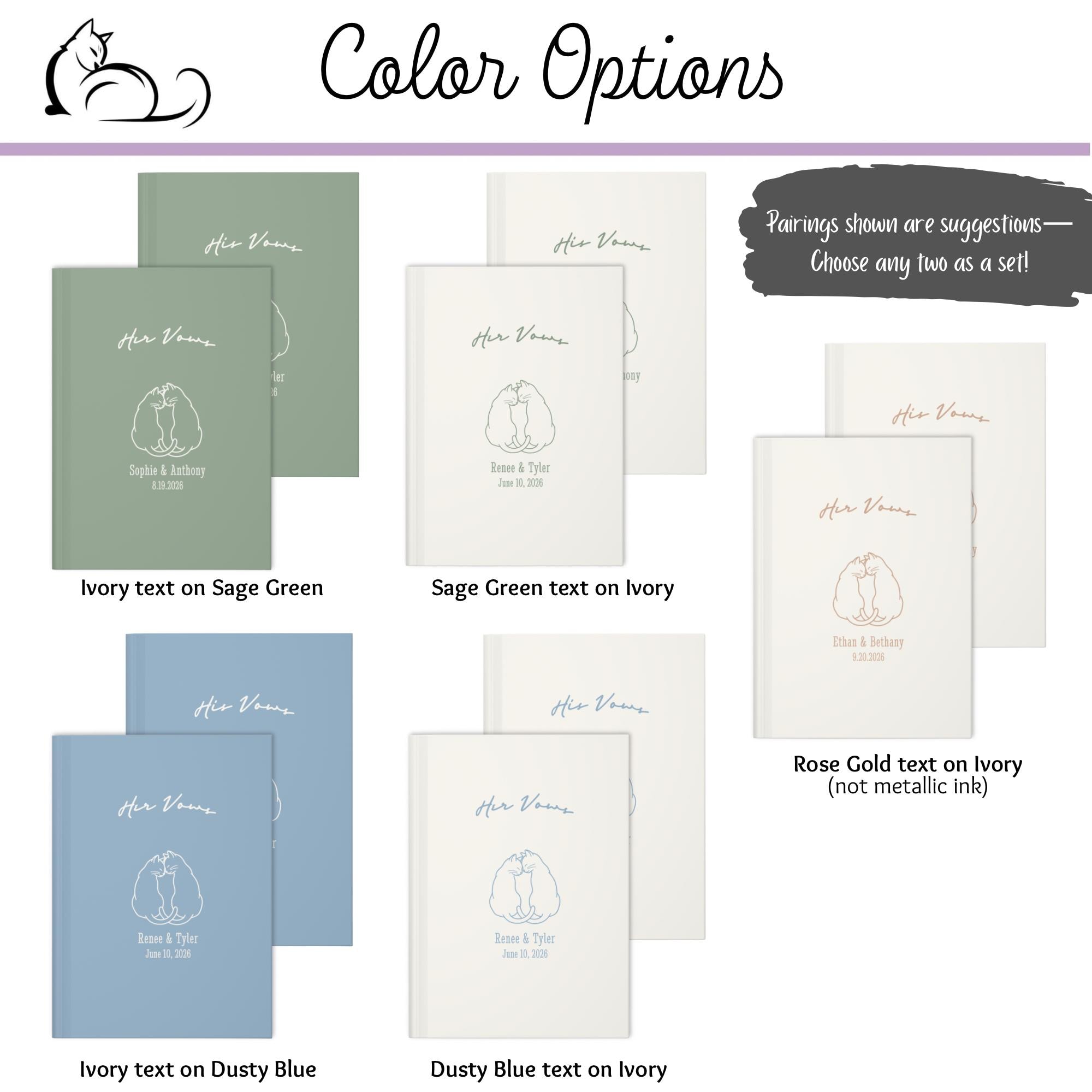 — Ivory cover with Rose Gold text (not metallic ink), Dusty Blue text, or Sage Green text