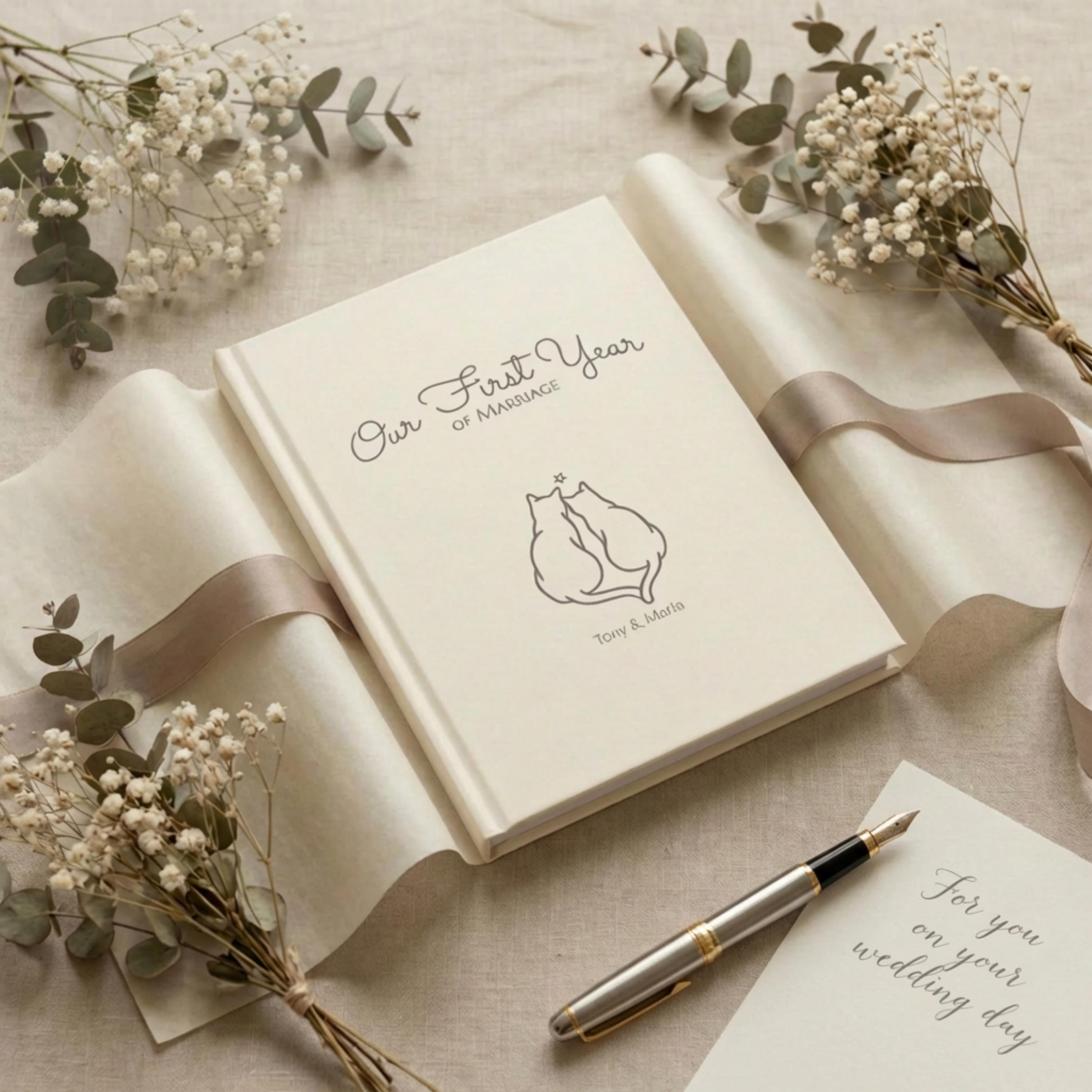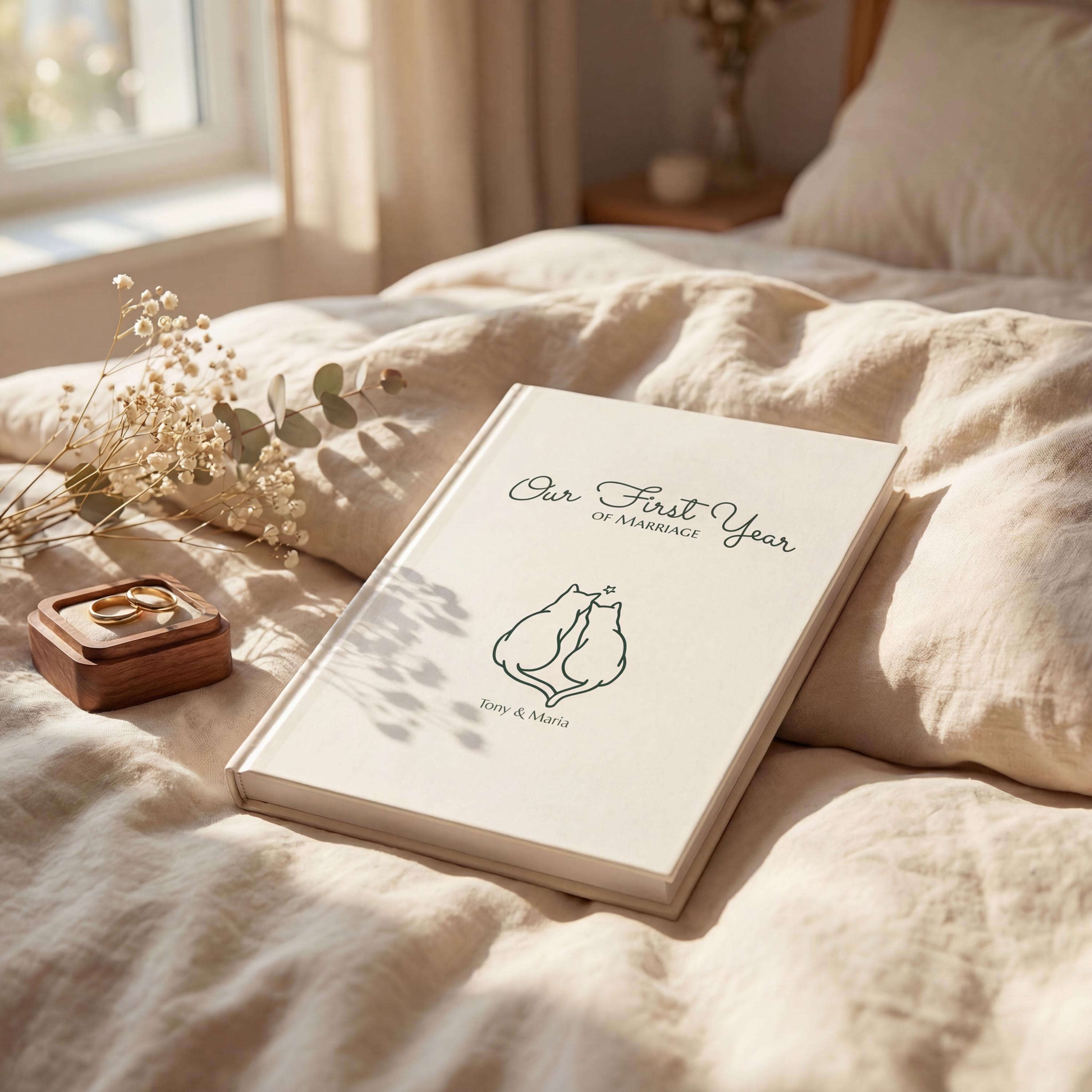 First Year Marriage Journal for Cat Lovers, Newlywed Memory Keepsake