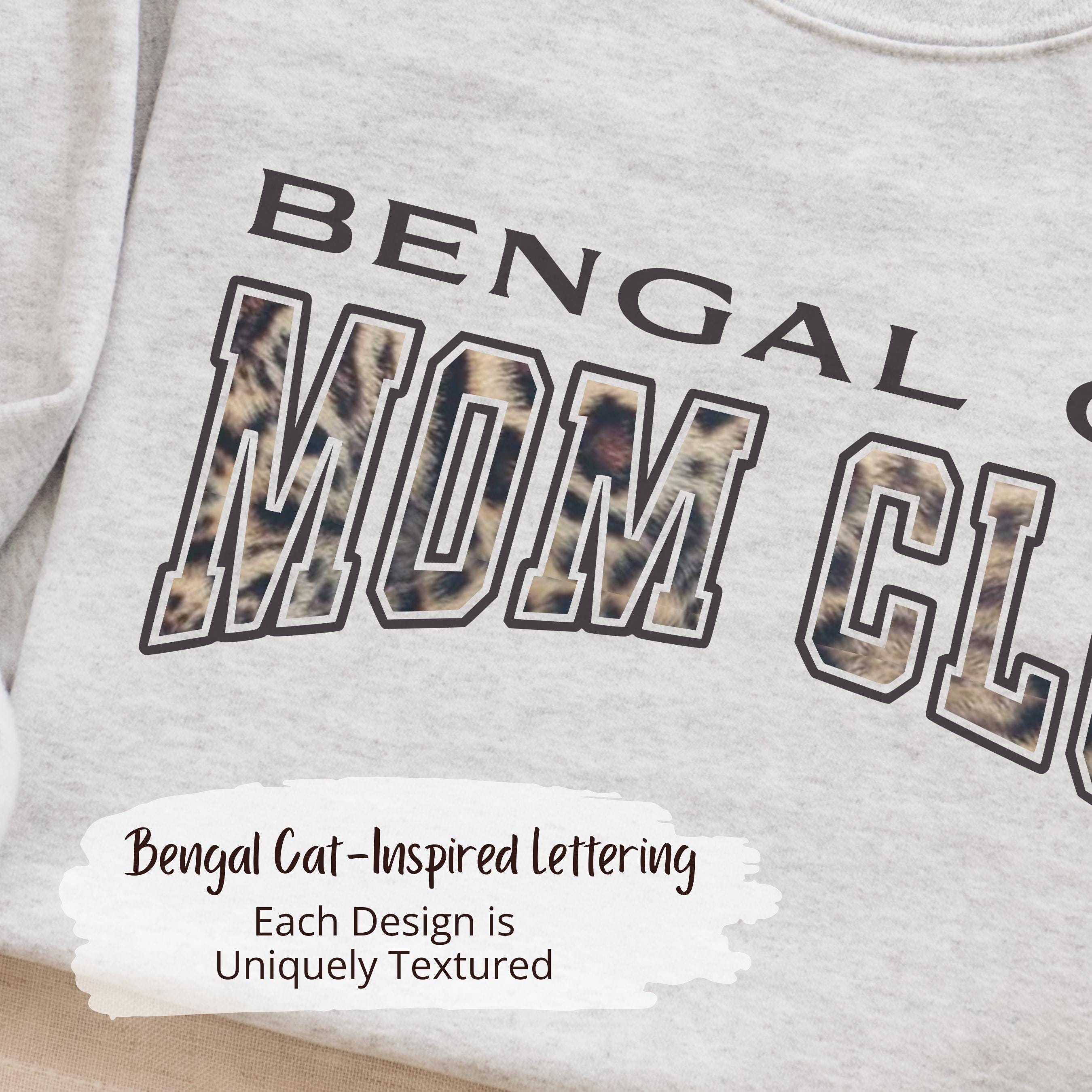 • Features “Bengal Cat Mom Club” with Bengal-inspired patterned lettering